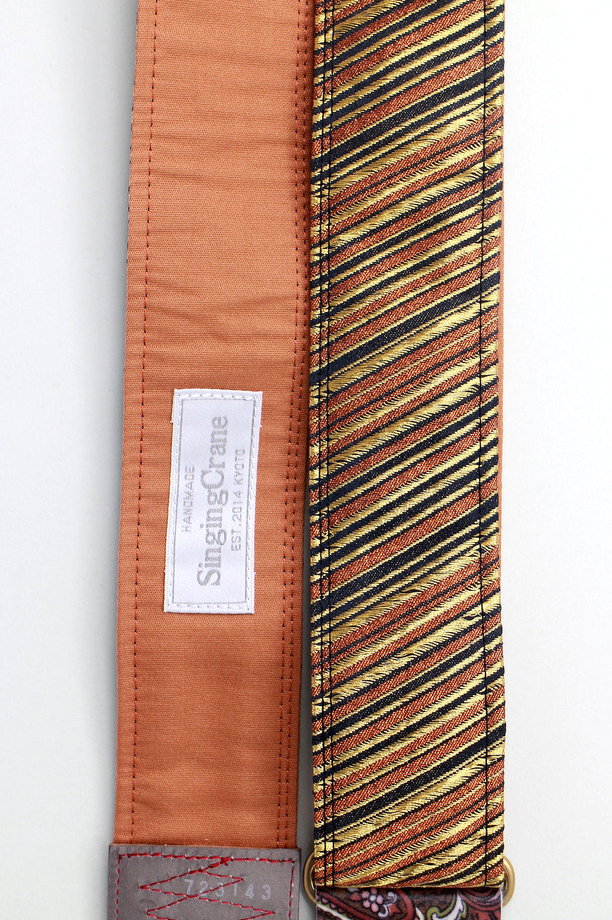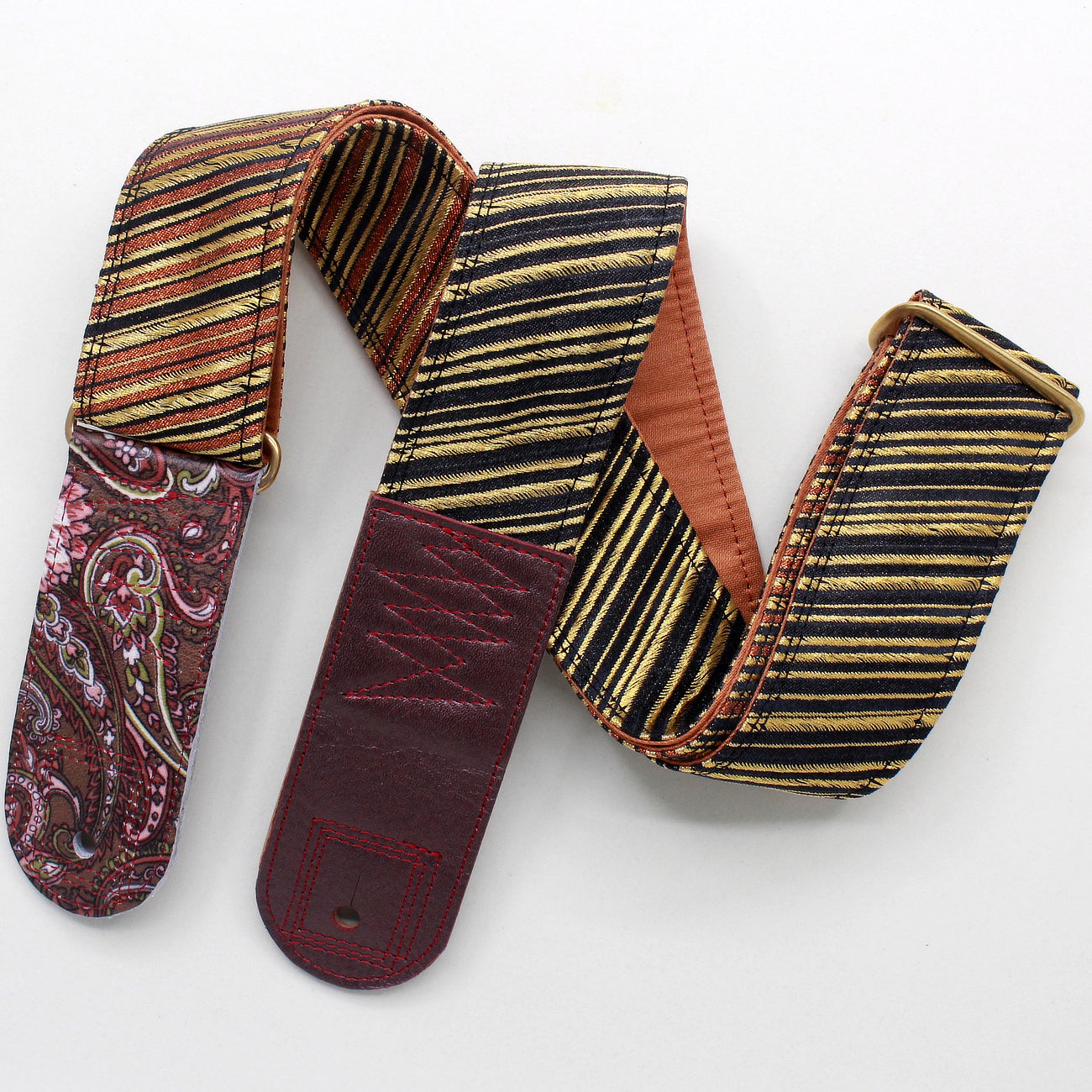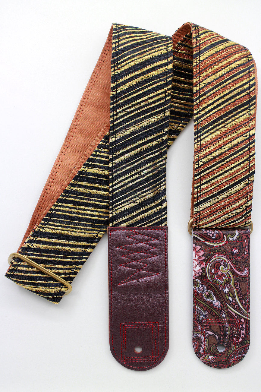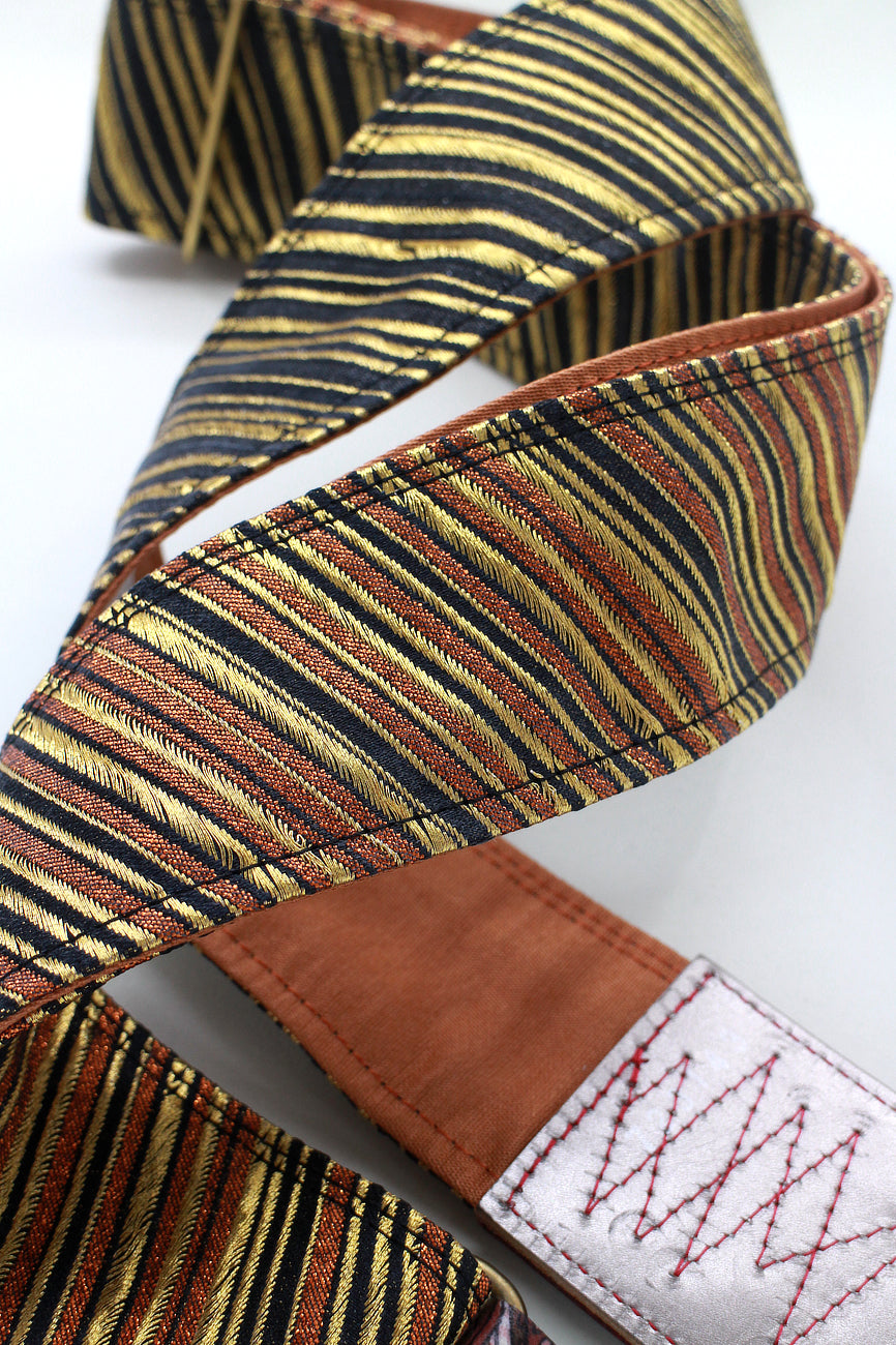 Unique and beautiful guitar strap [SC723143] - hand made in Japan from recycled silk woven kimono obi, leather and brass