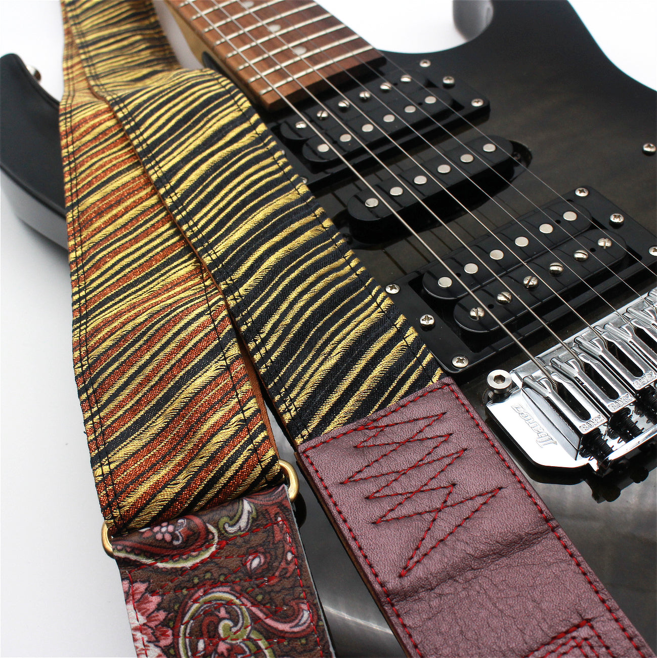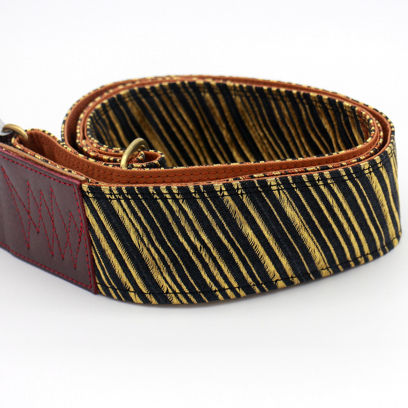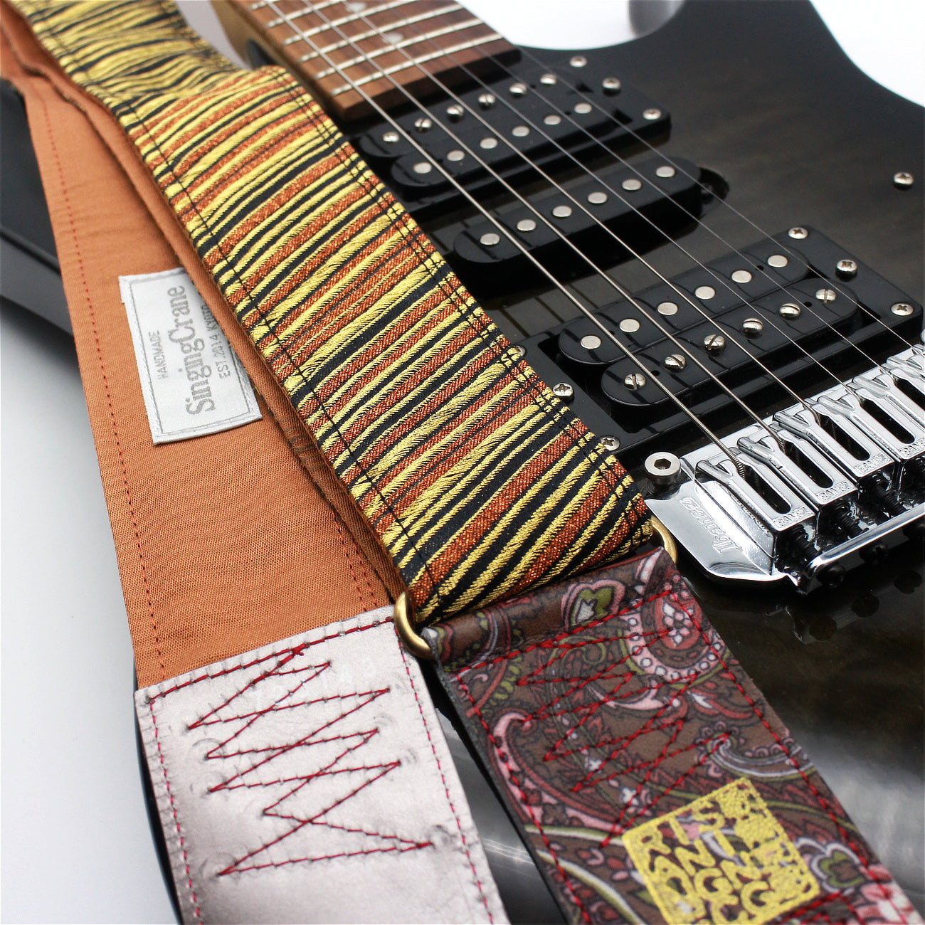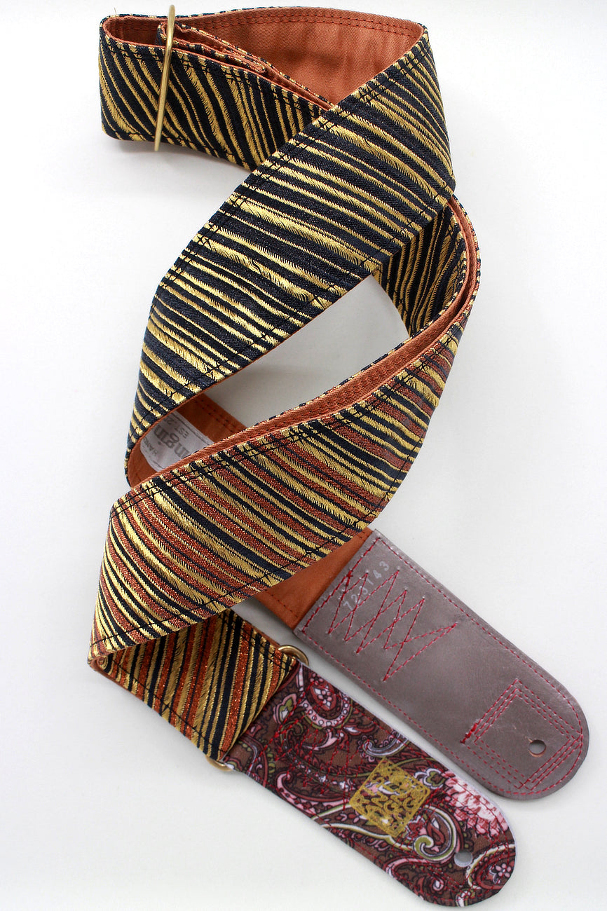 Unique and beautiful guitar strap [SC723143] - hand made in Japan from recycled silk woven kimono obi, leather and brass