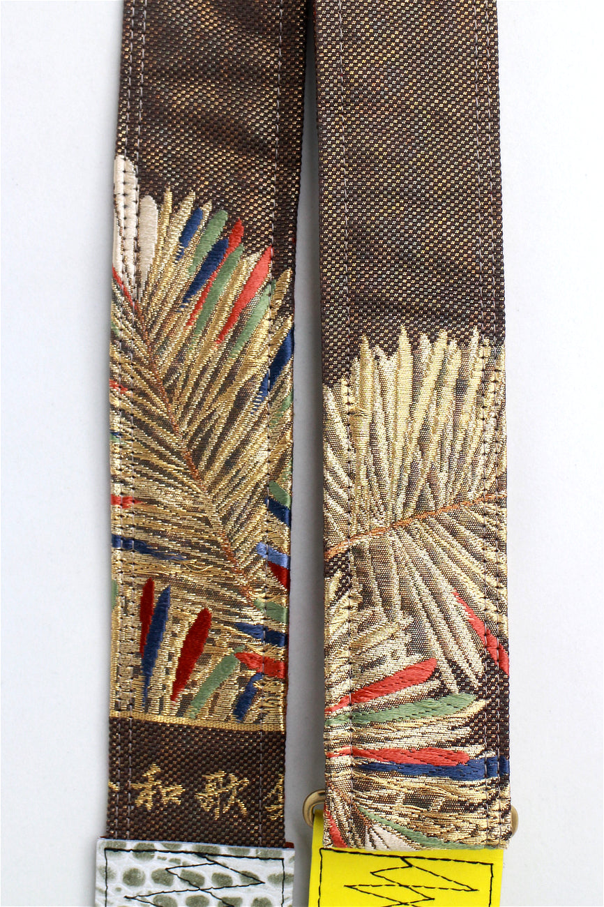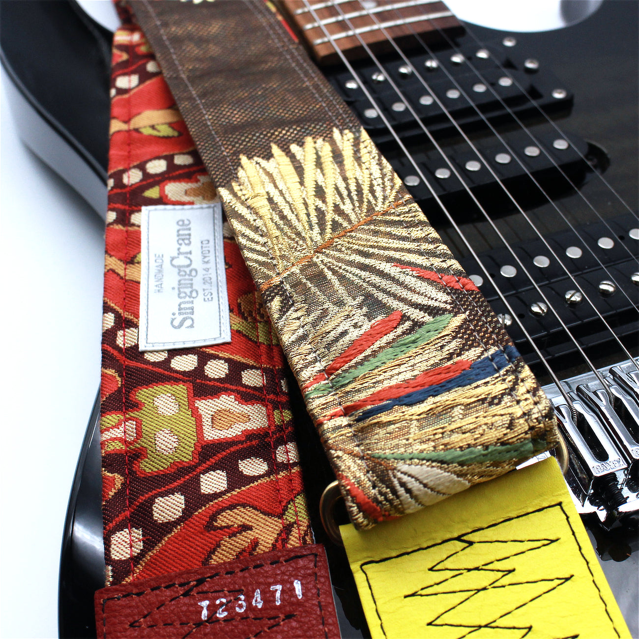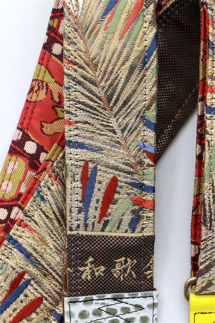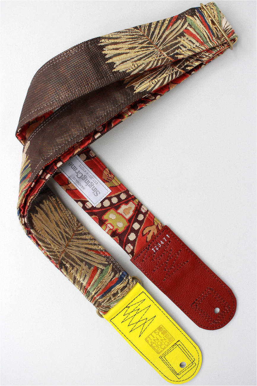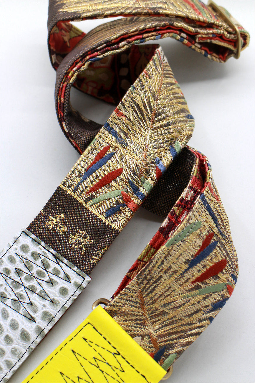 Unique and beautiful guitar strap [SC723471] - hand made in Japan from recycled silk woven kimono obi, leather and brass