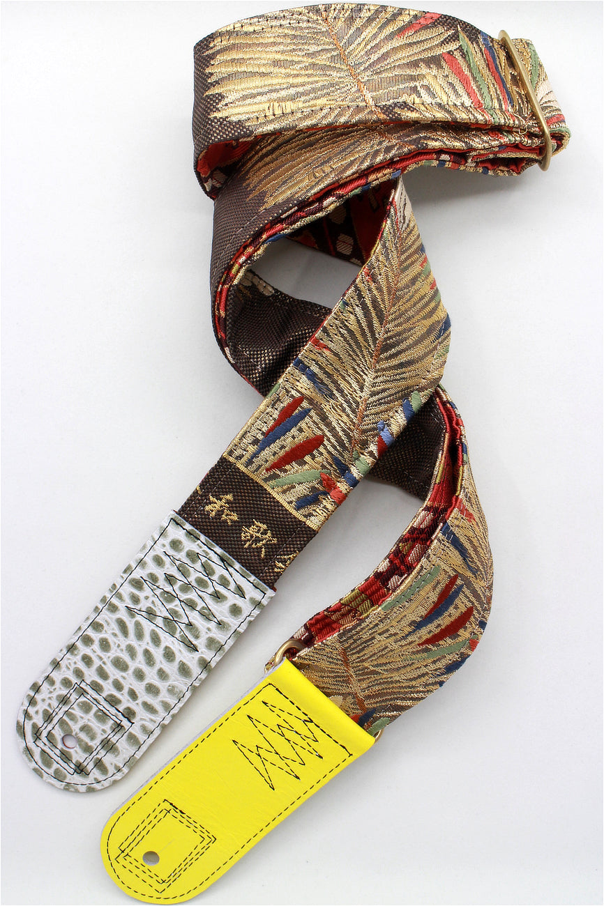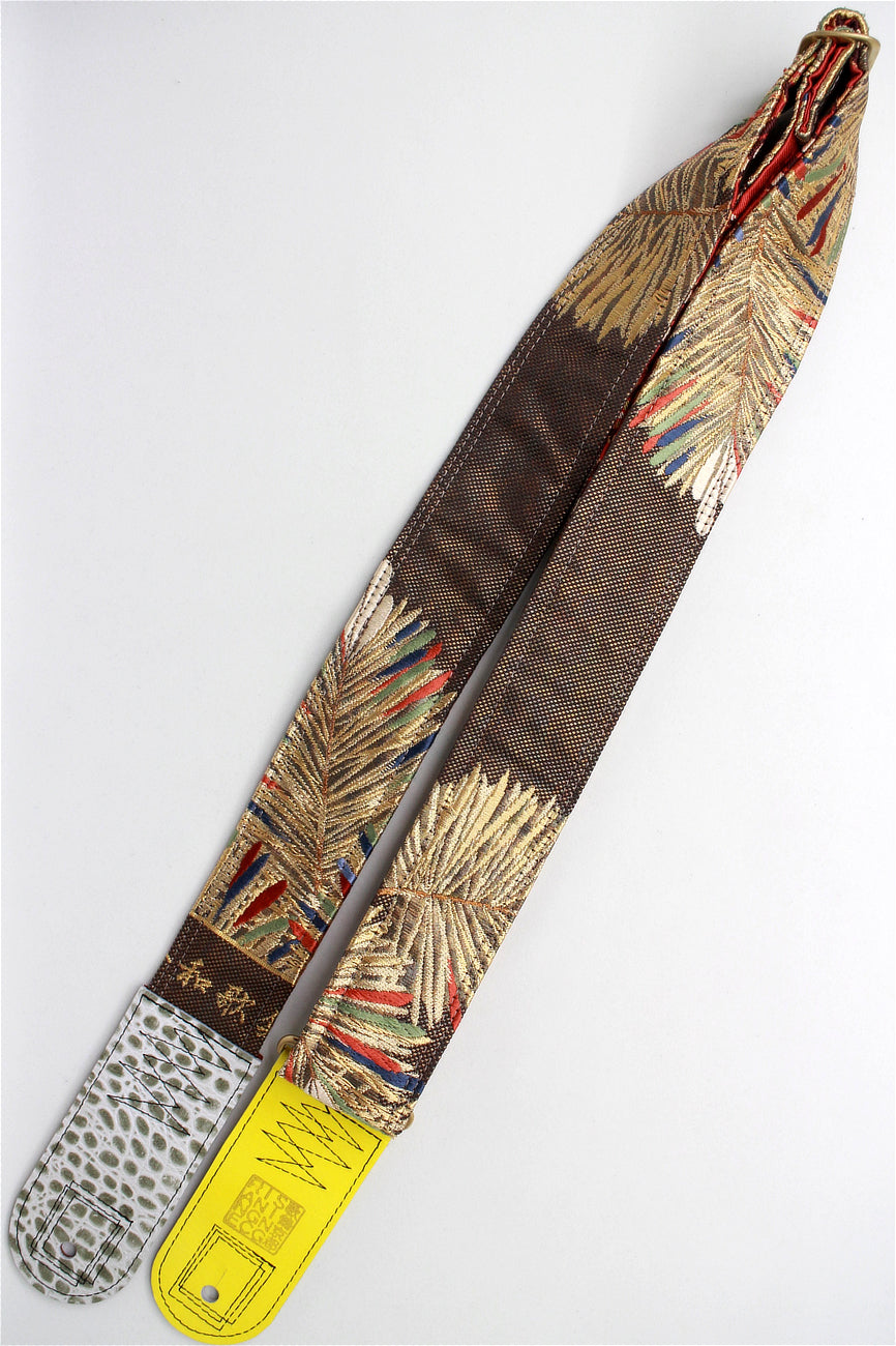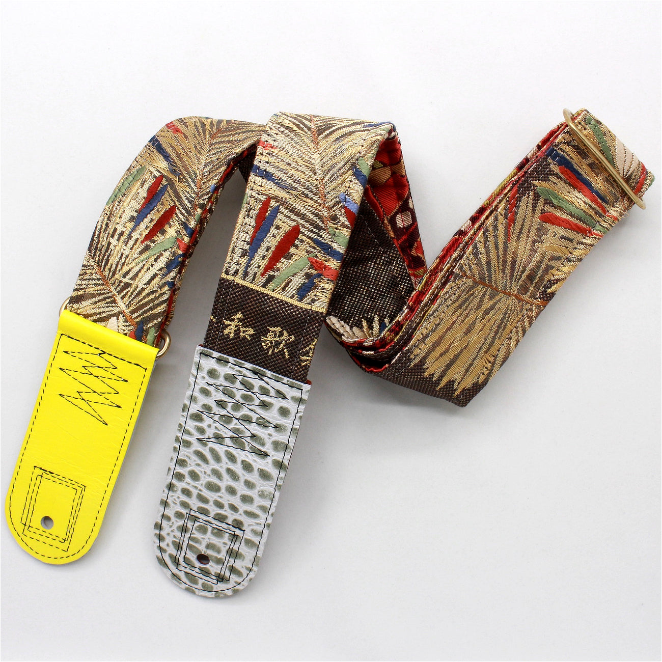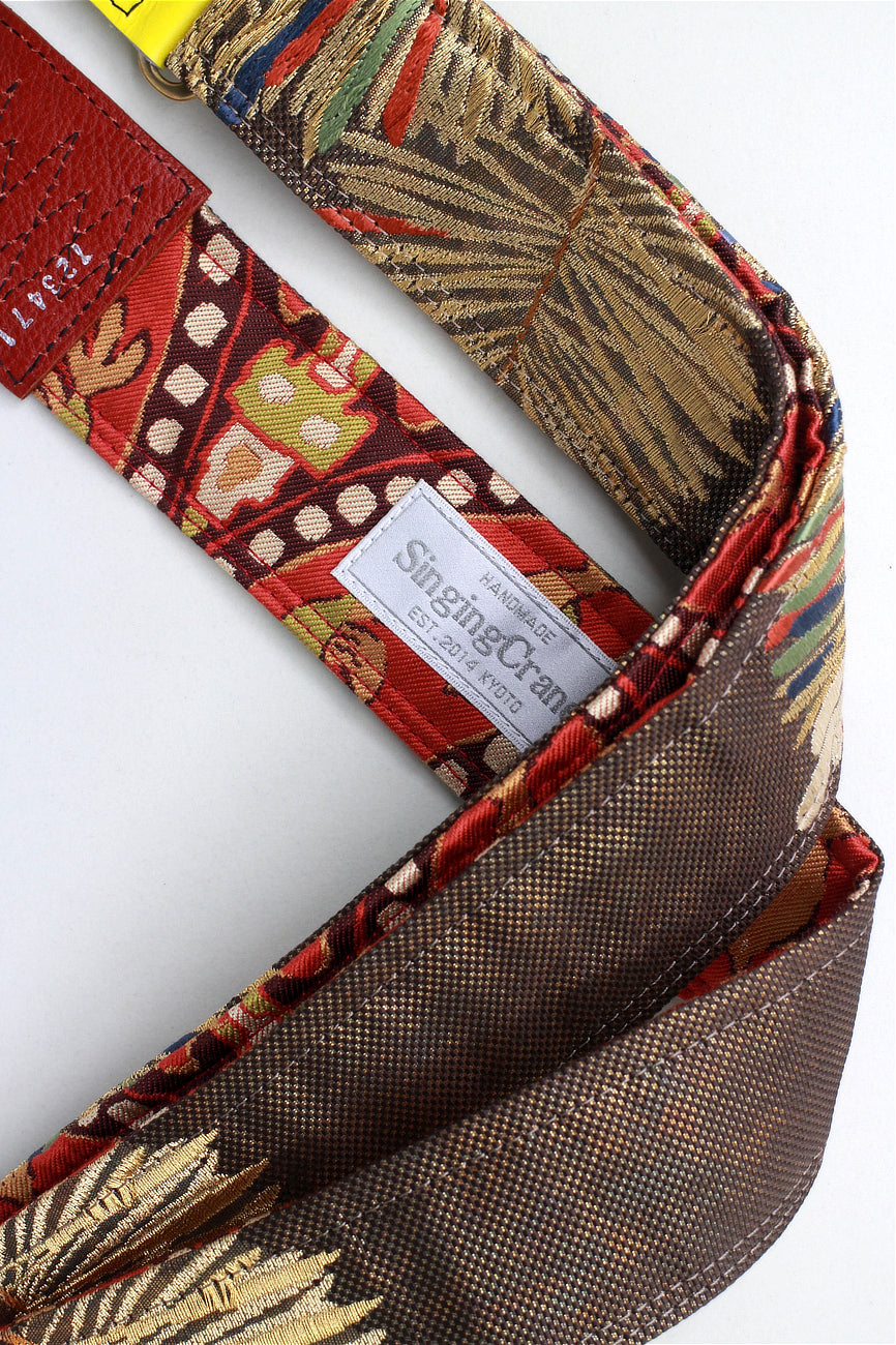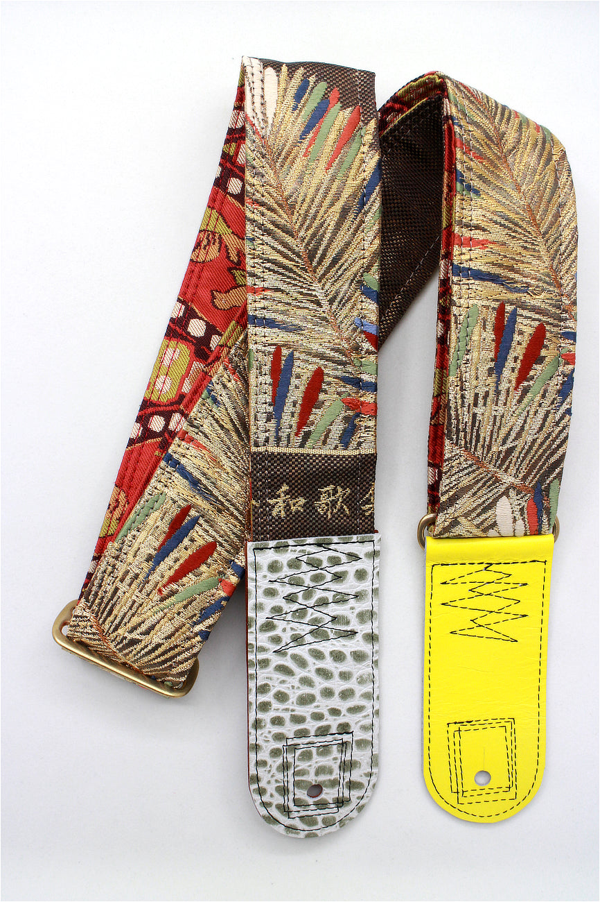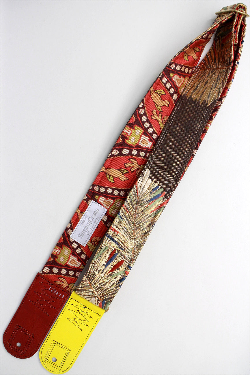 Unique and beautiful guitar strap [SC723471] - hand made in Japan from recycled silk woven kimono obi, leather and brass
