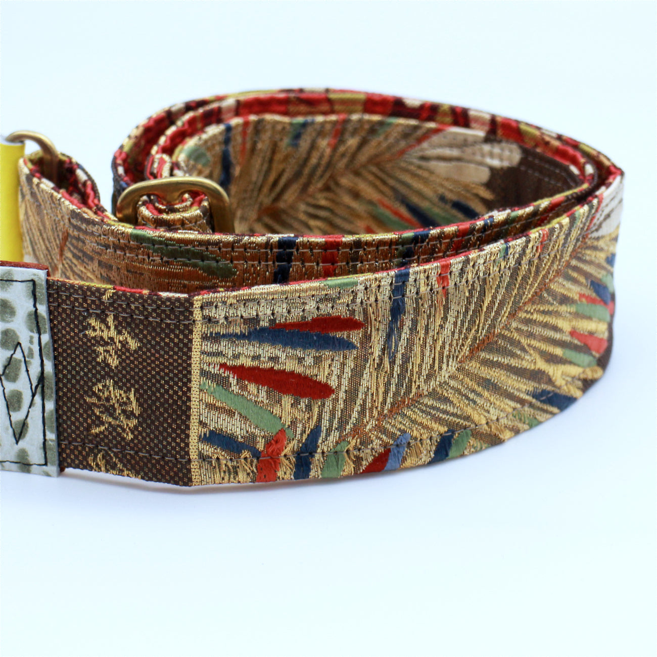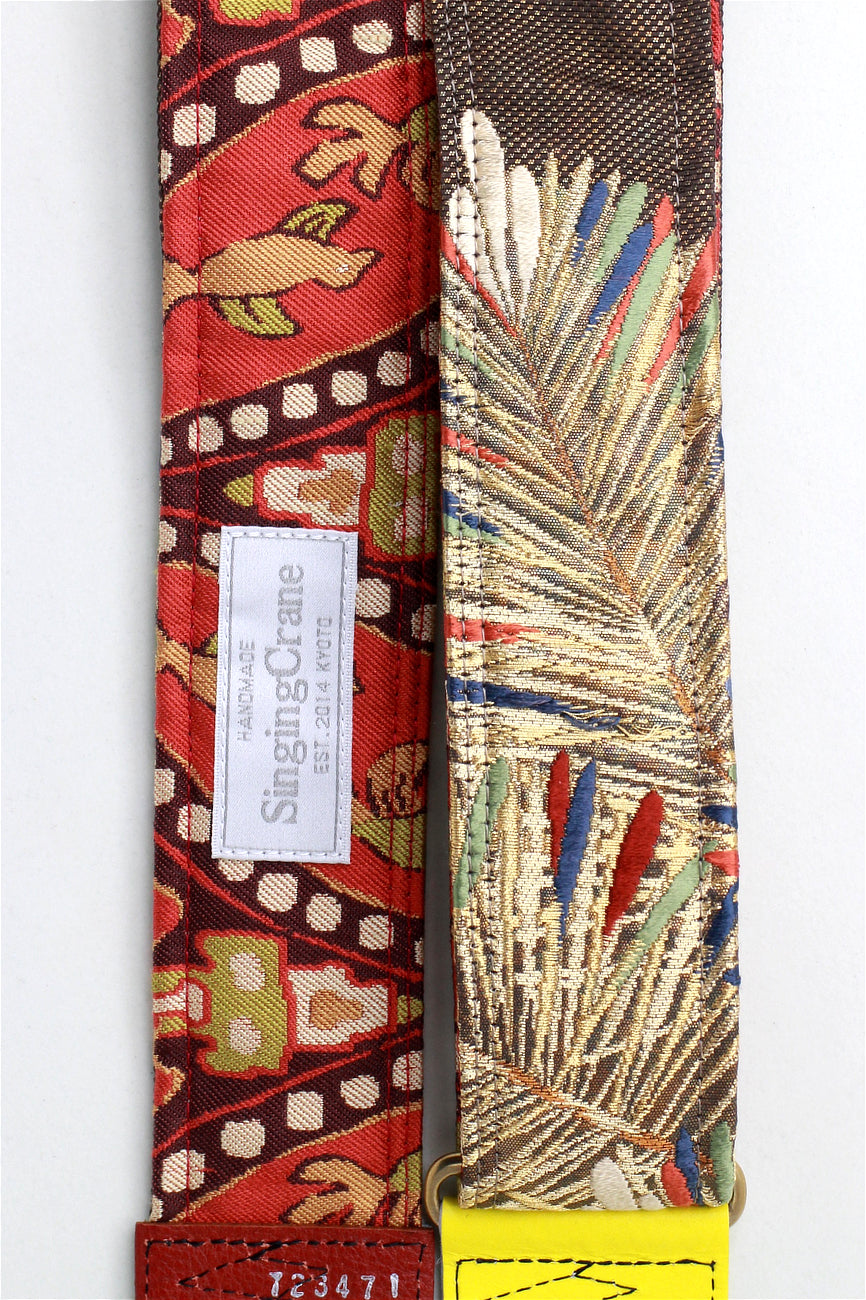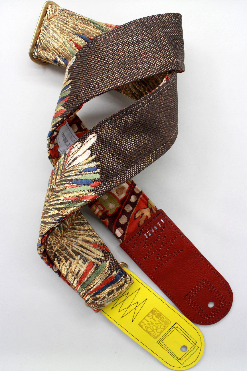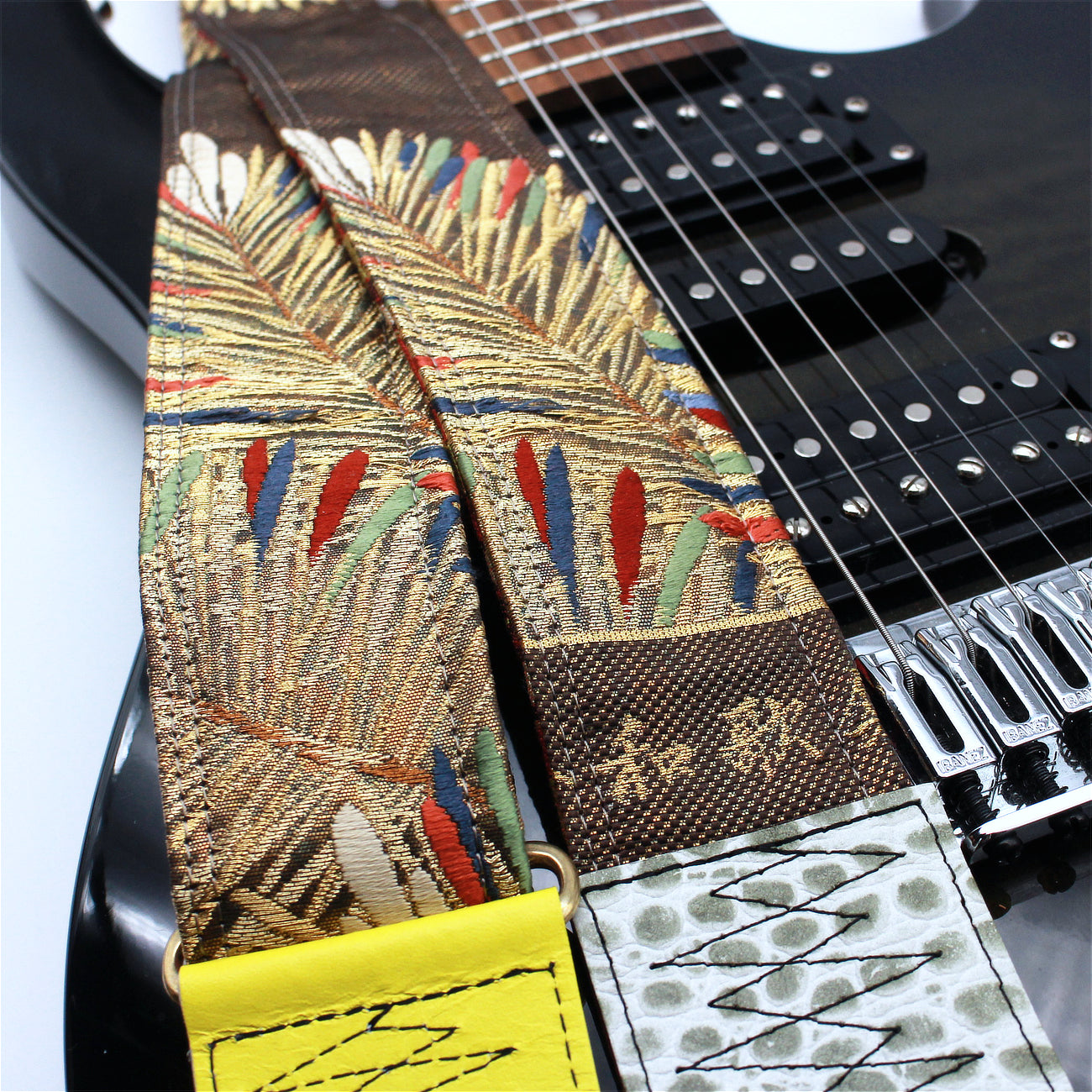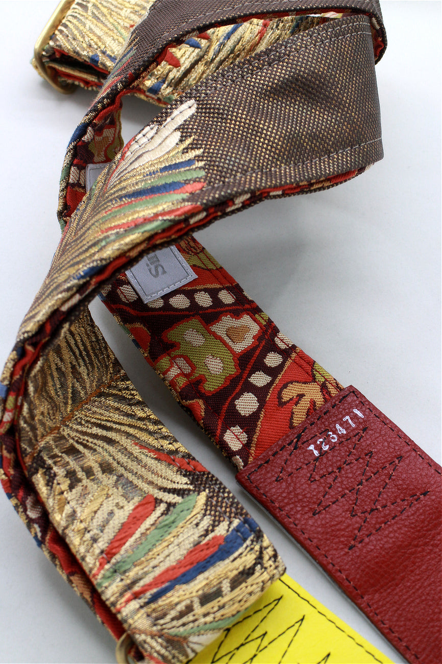 Unique and beautiful guitar strap [SC723471] - hand made in Japan from recycled silk woven kimono obi, leather and brass