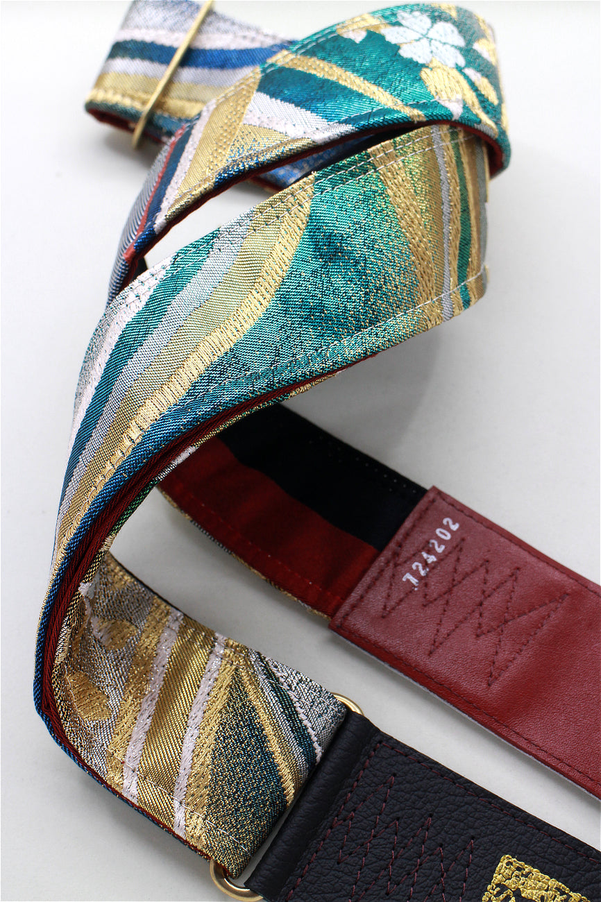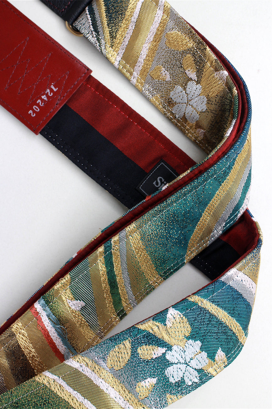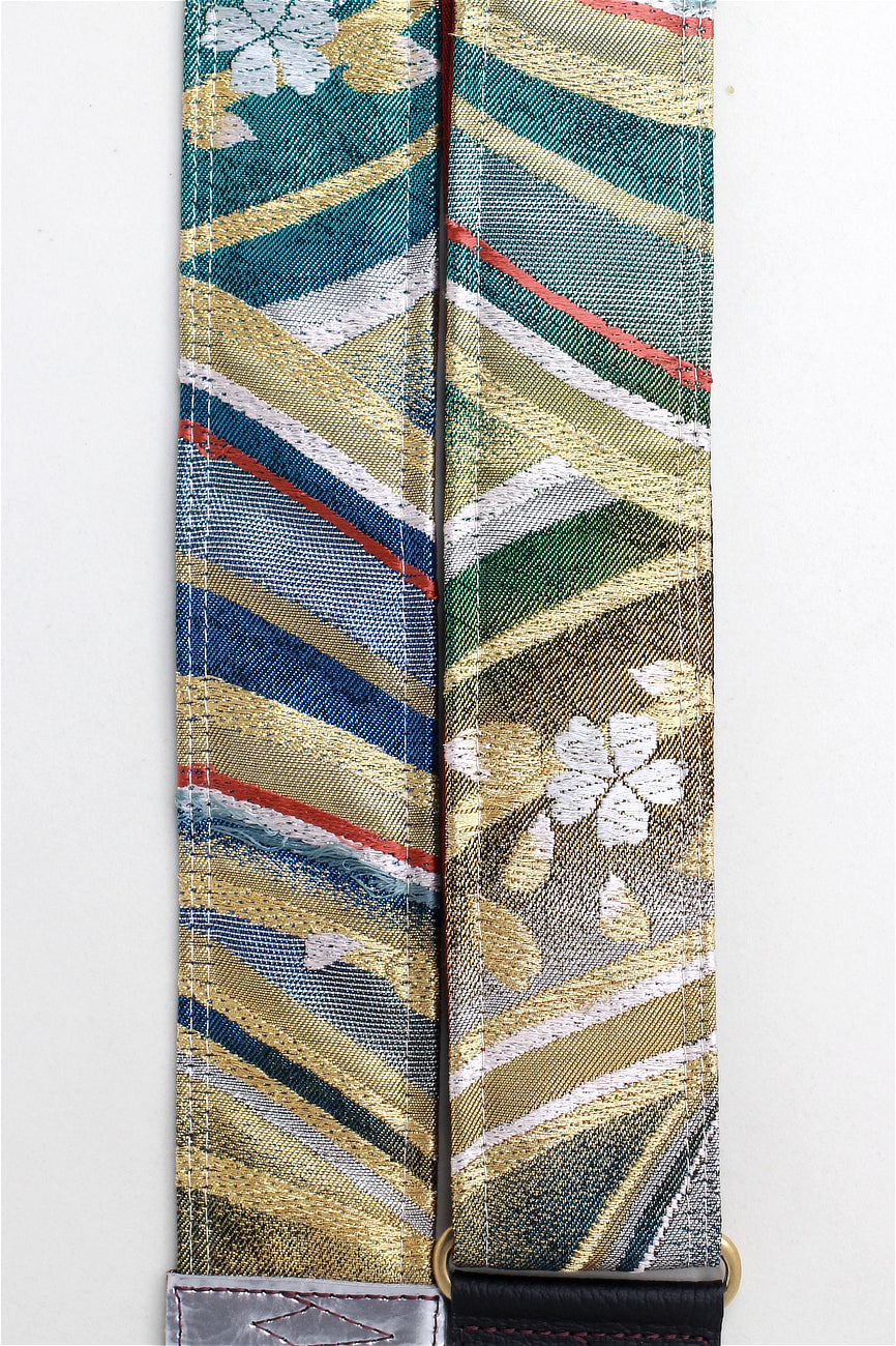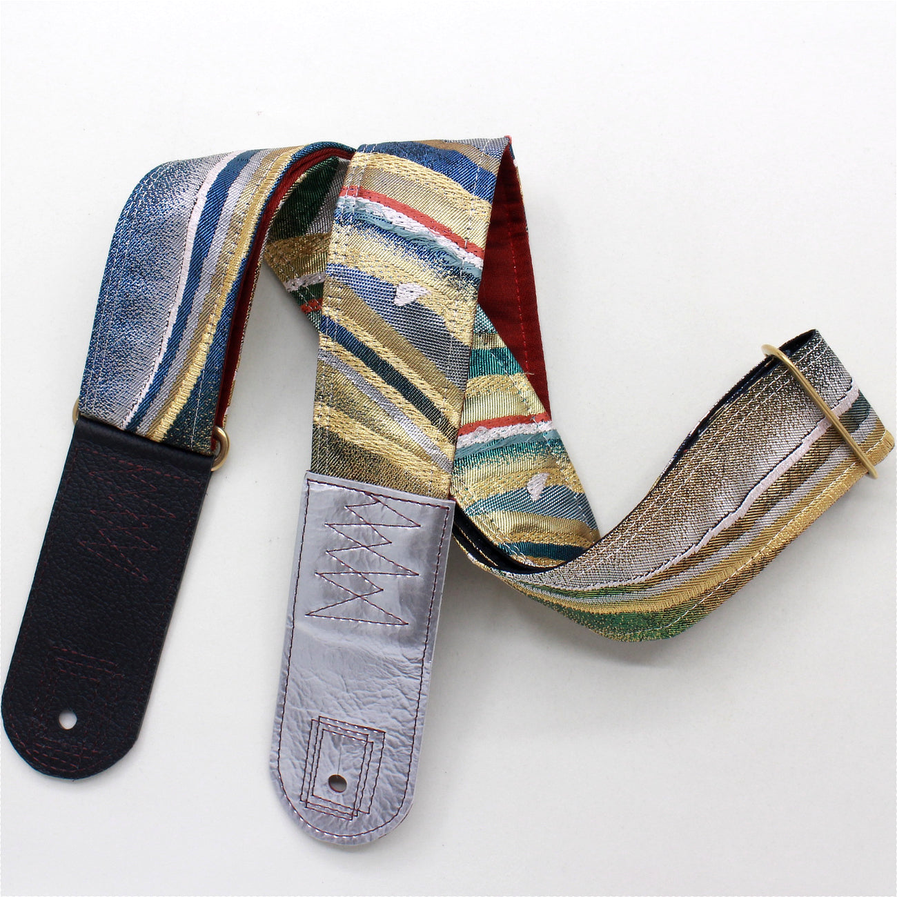 Unique and beautiful guitar strap [SC724202] - hand made in Japan from recycled silk woven kimono obi, leather and brass