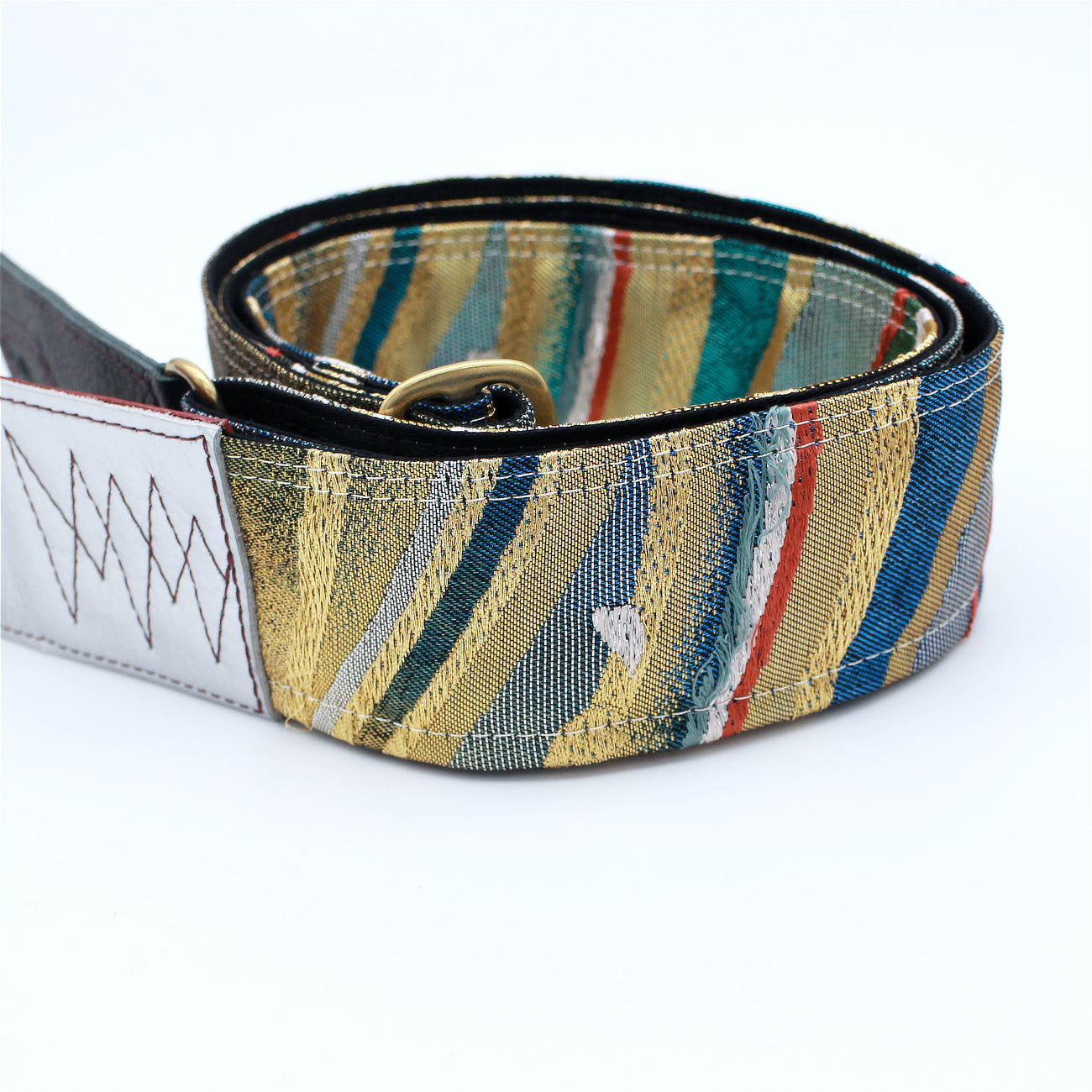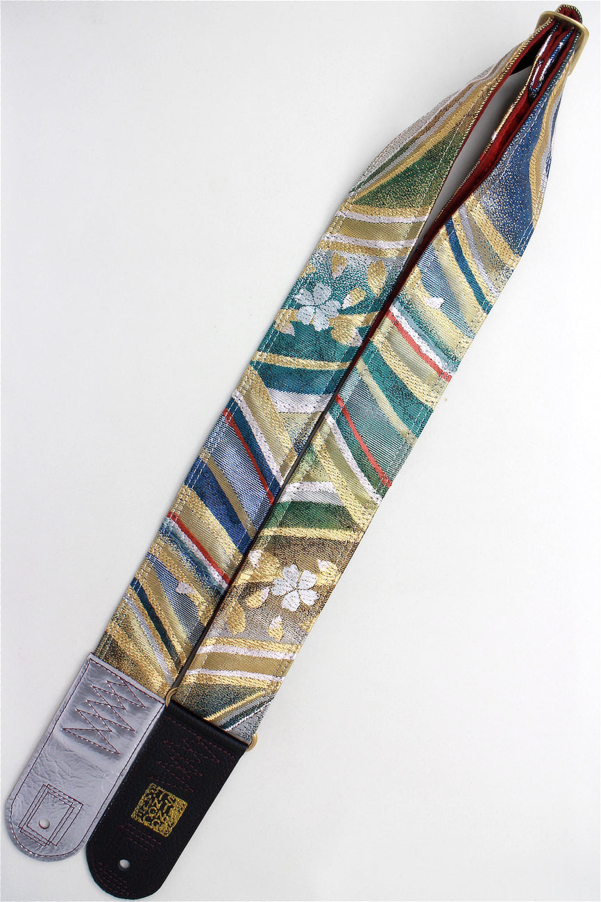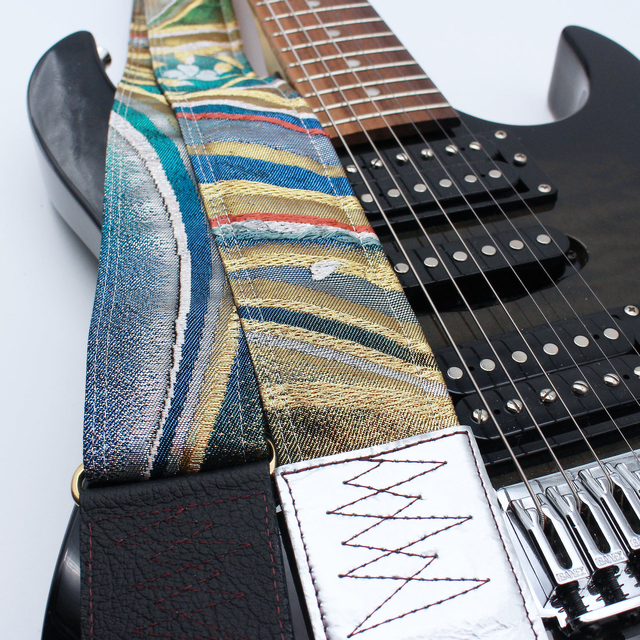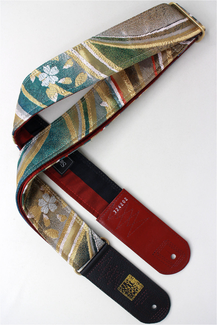 Unique and beautiful guitar strap [SC724202] - hand made in Japan from recycled silk woven kimono obi, leather and brass