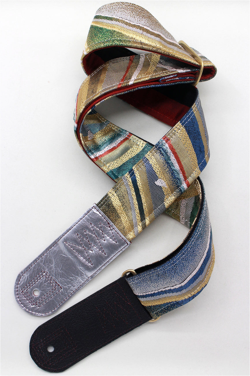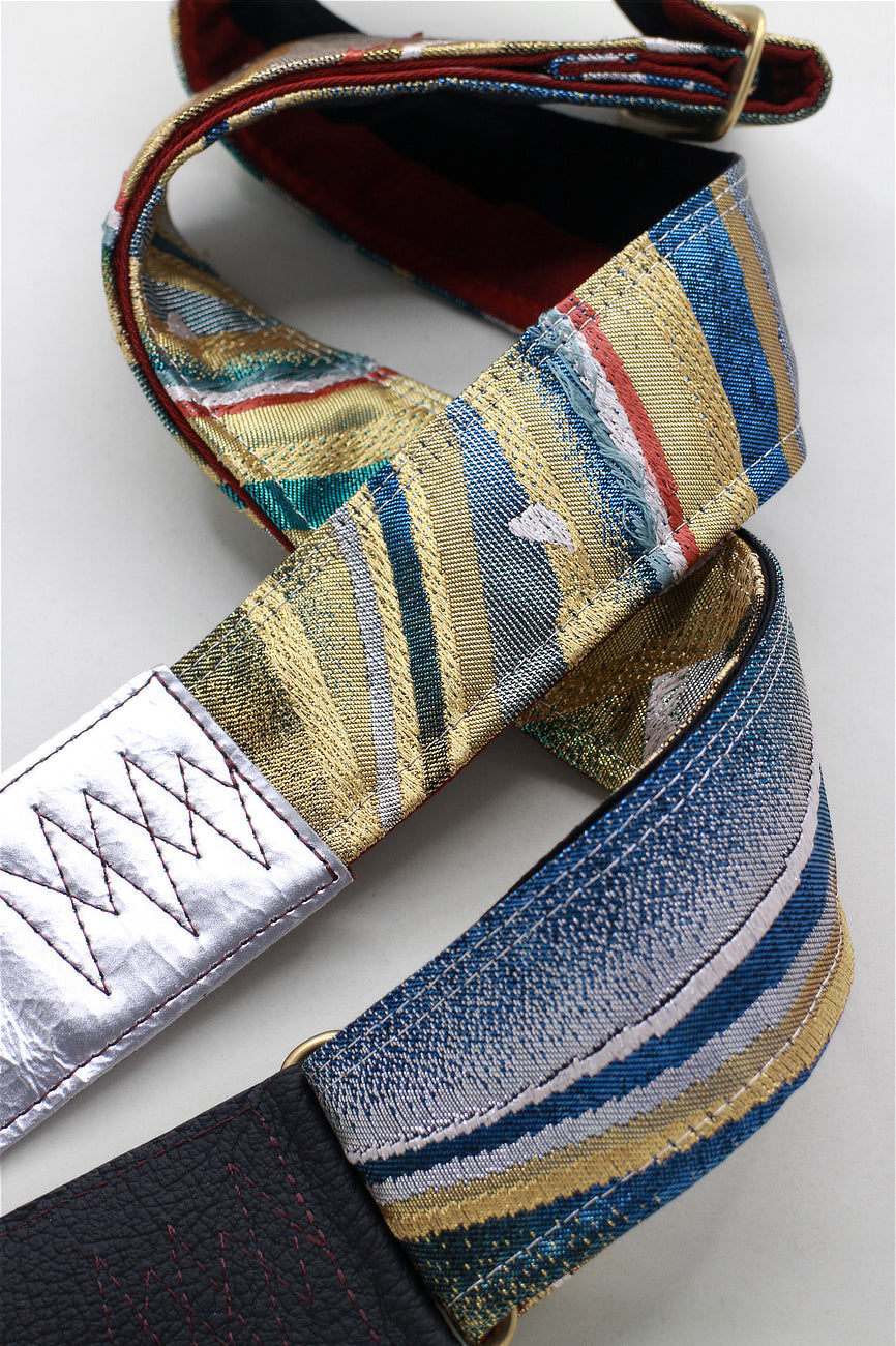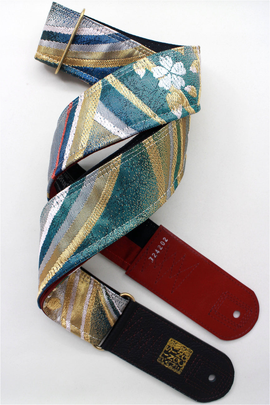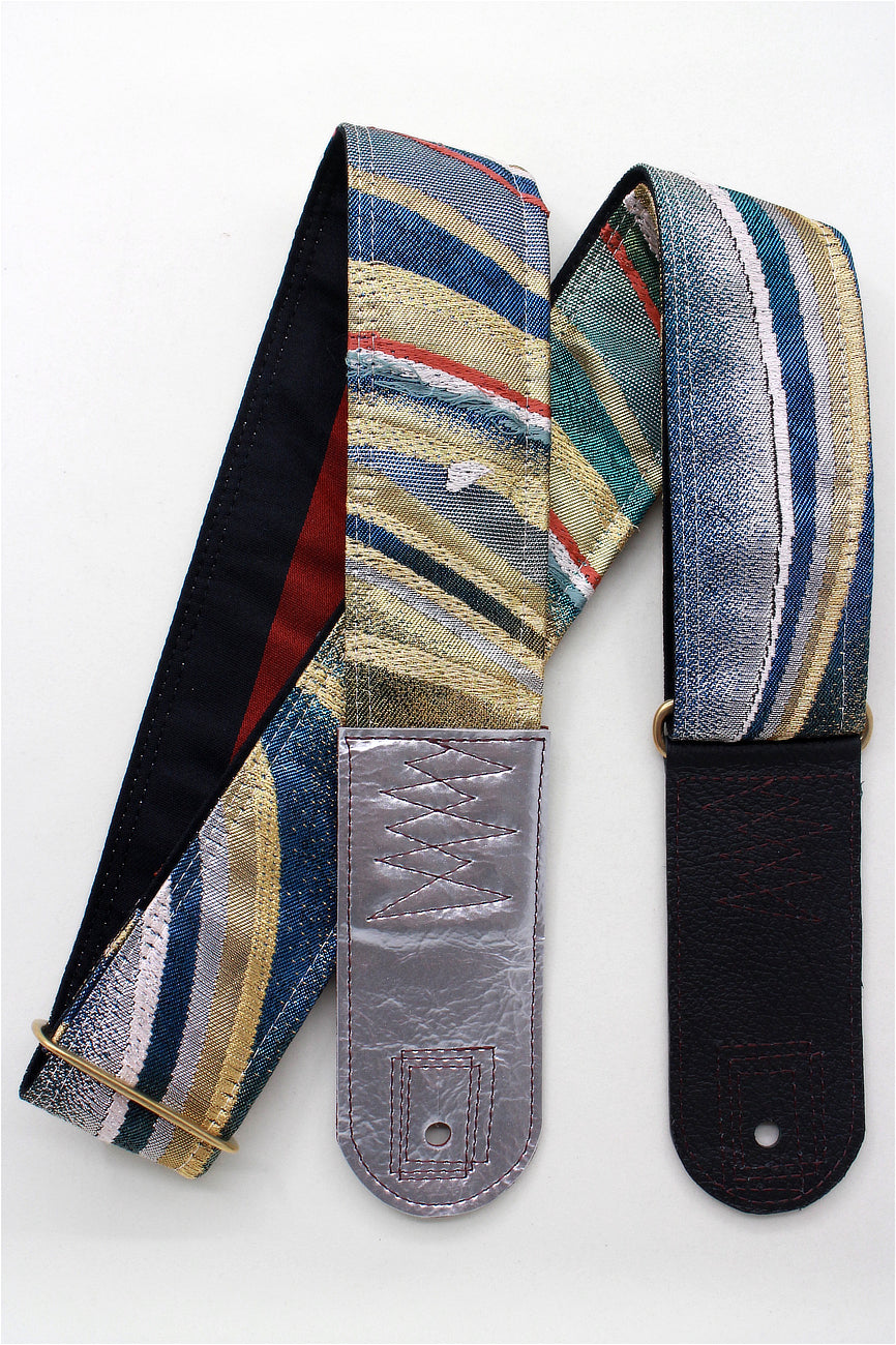 Unique and beautiful guitar strap [SC724202] - hand made in Japan from recycled silk woven kimono obi, leather and brass