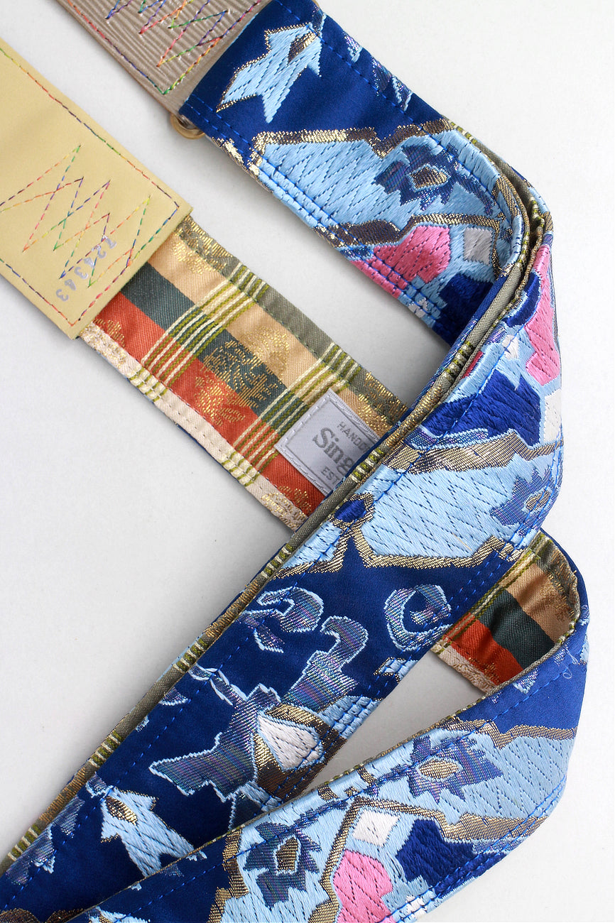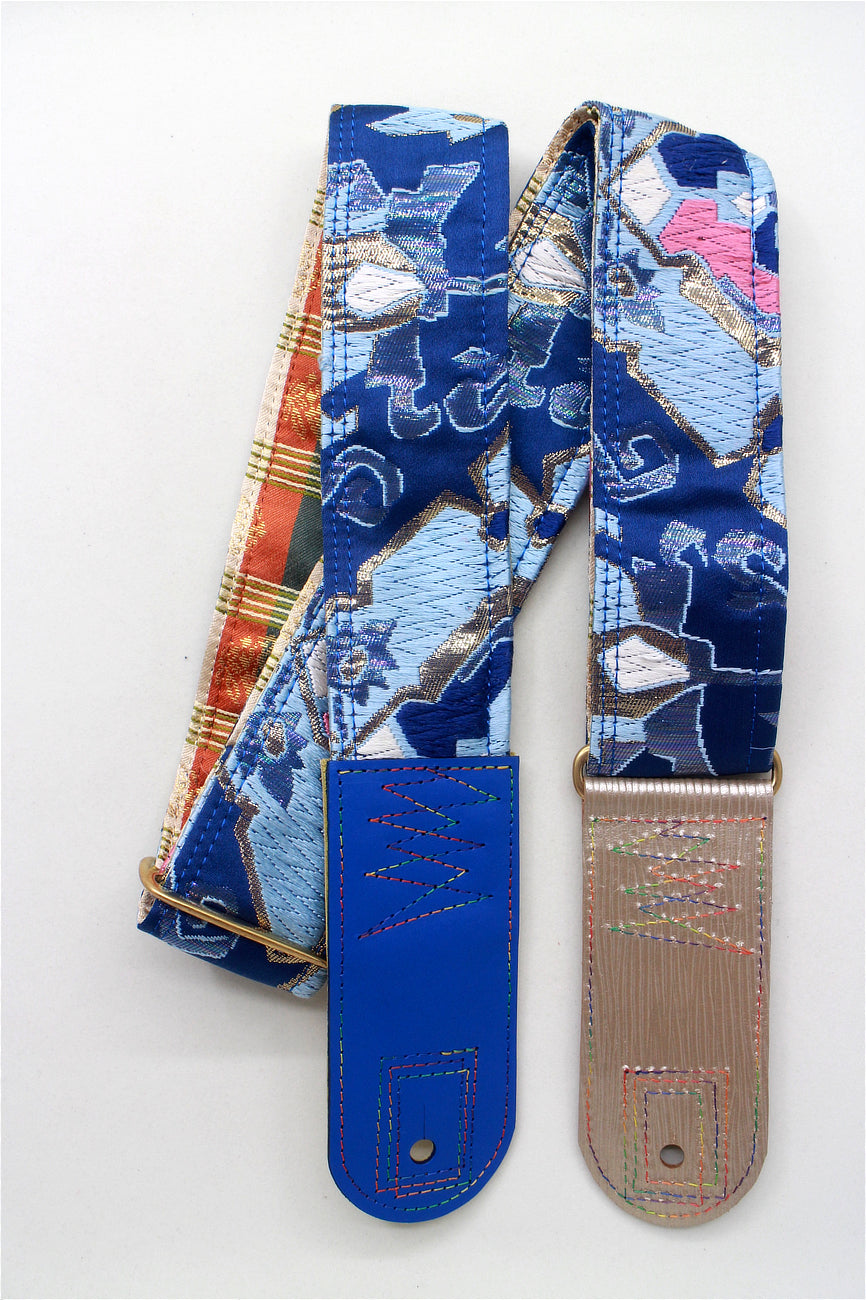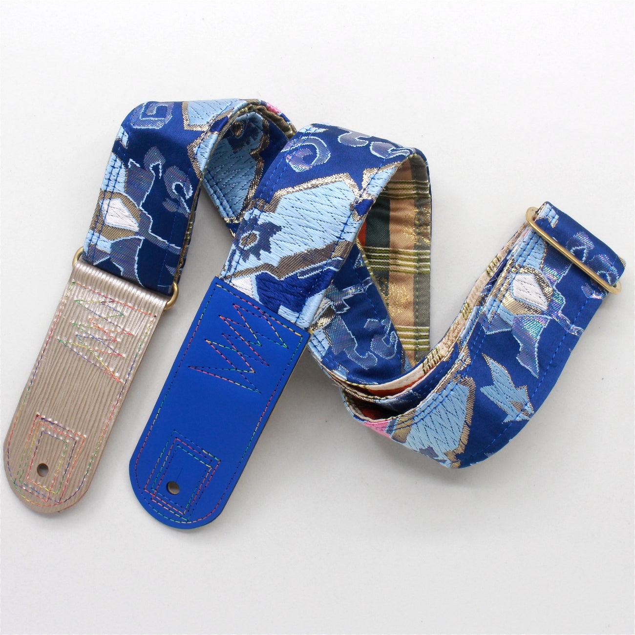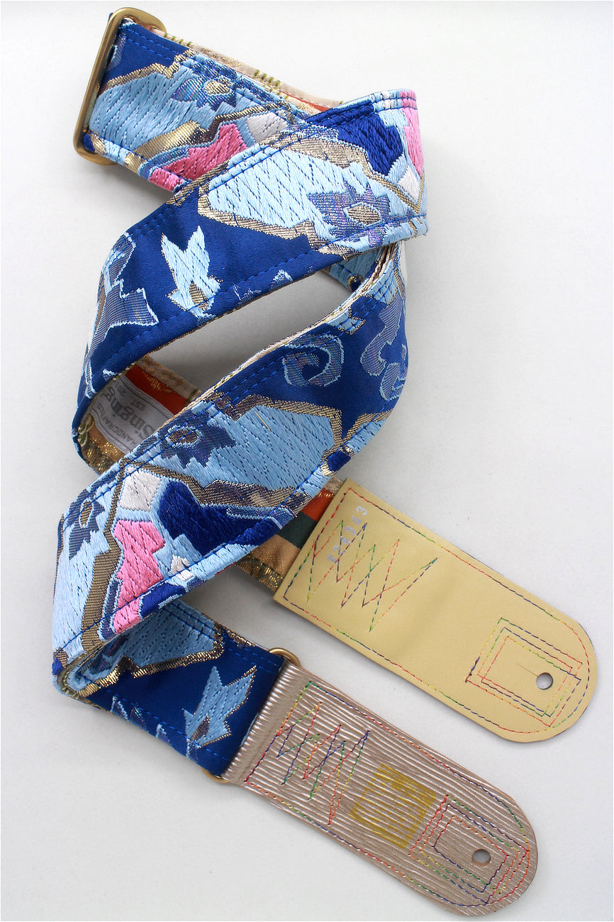 Unique and beautiful guitar strap [SC724343] - hand made in Japan from recycled silk woven kimono obi, leather and brass