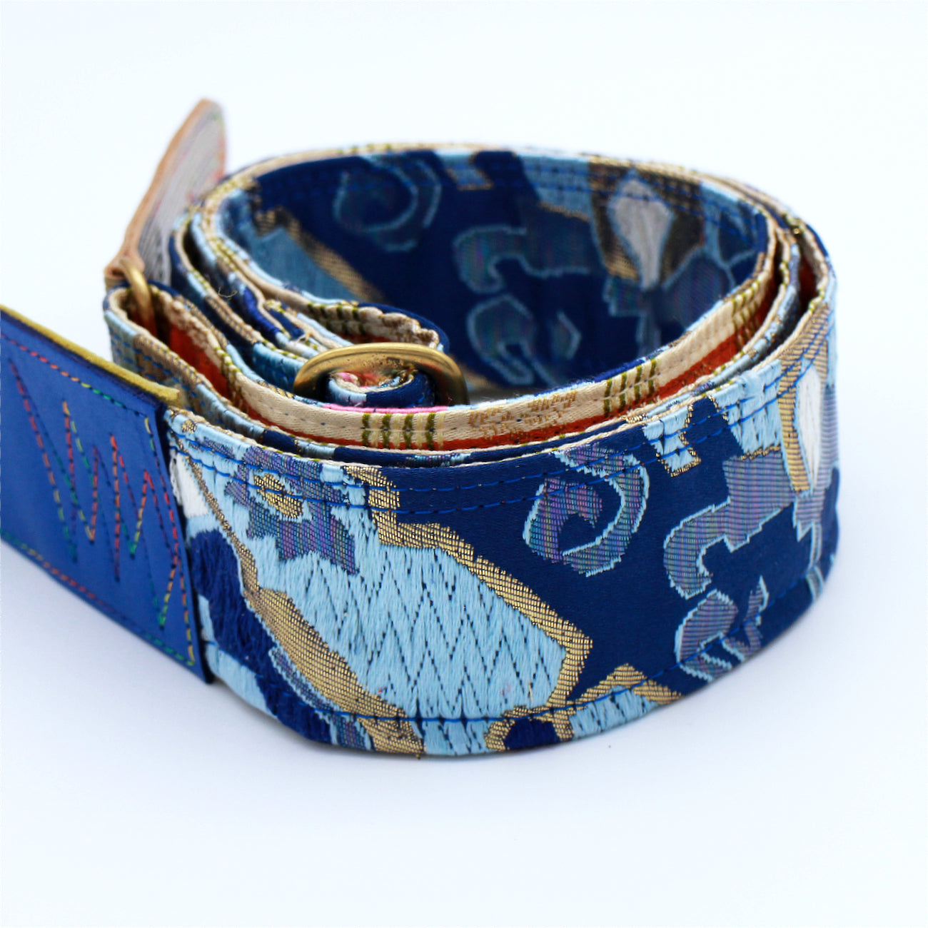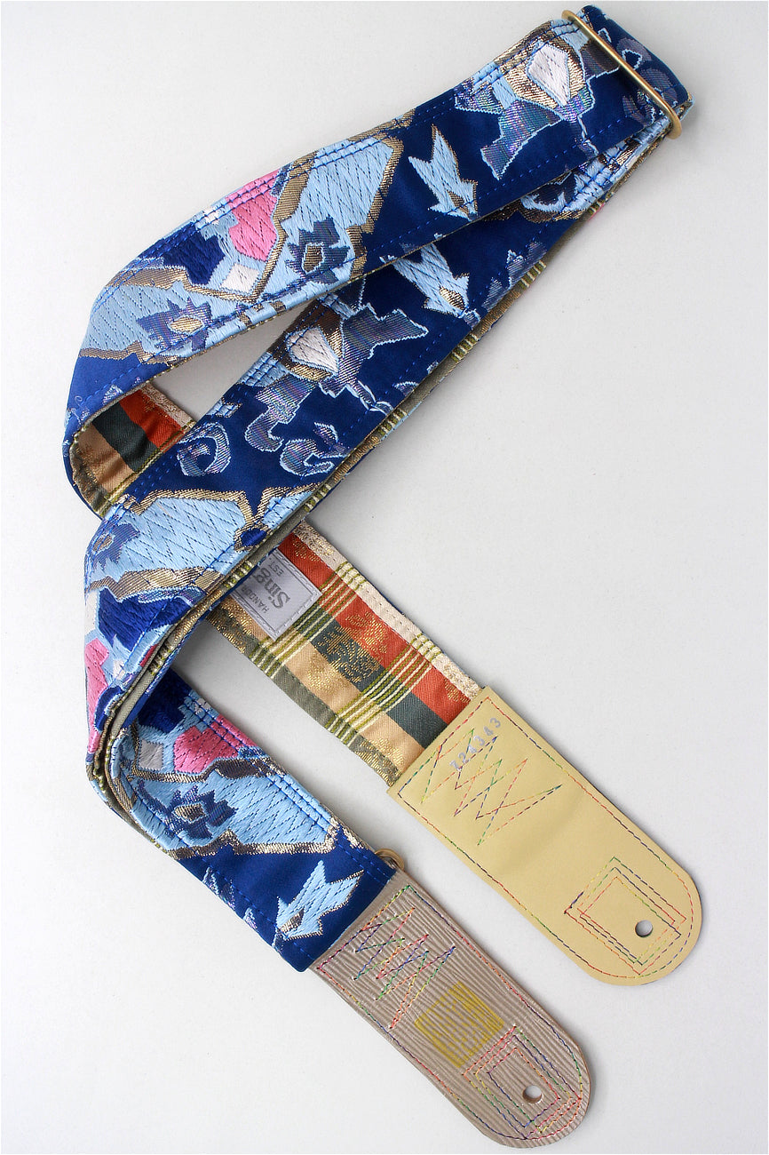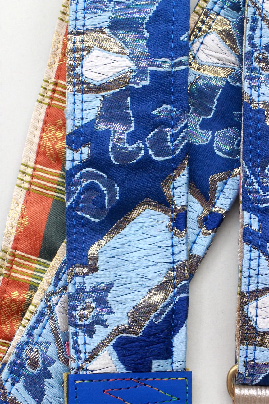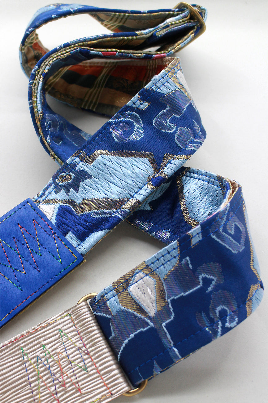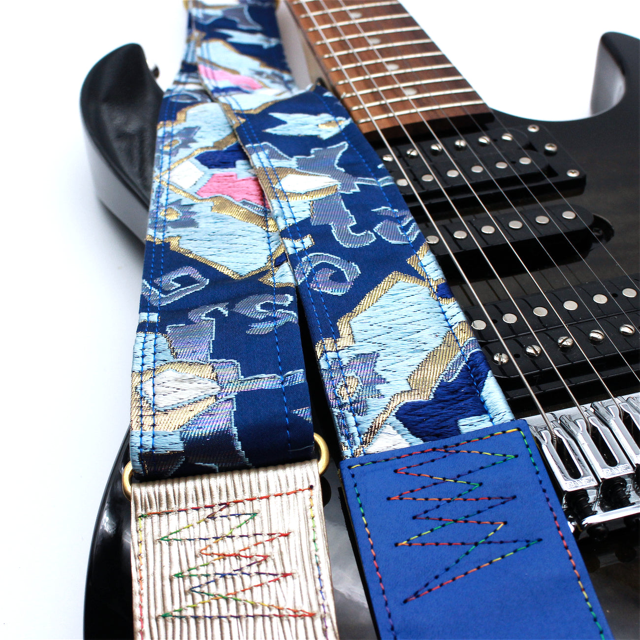 Unique and beautiful guitar strap [SC724343] - hand made in Japan from recycled silk woven kimono obi, leather and brass