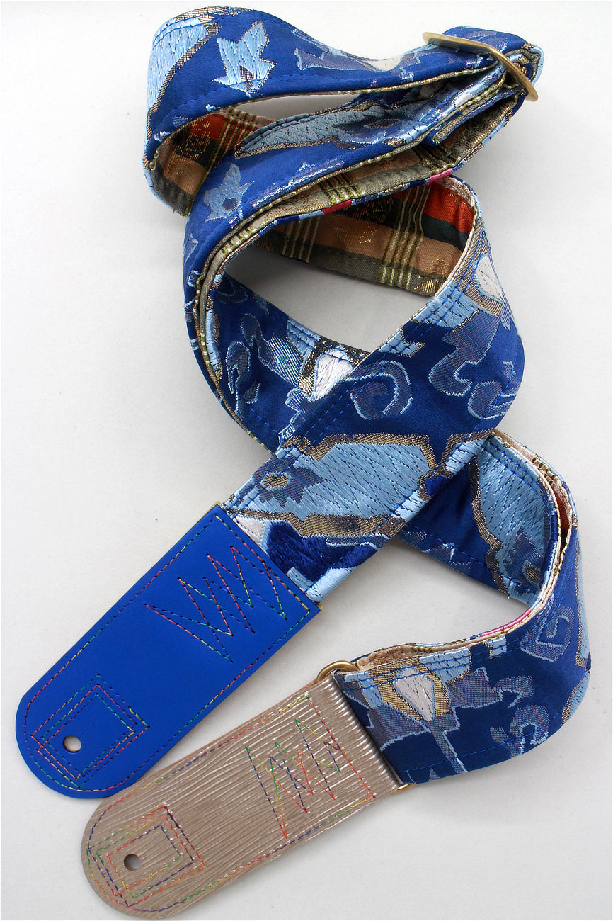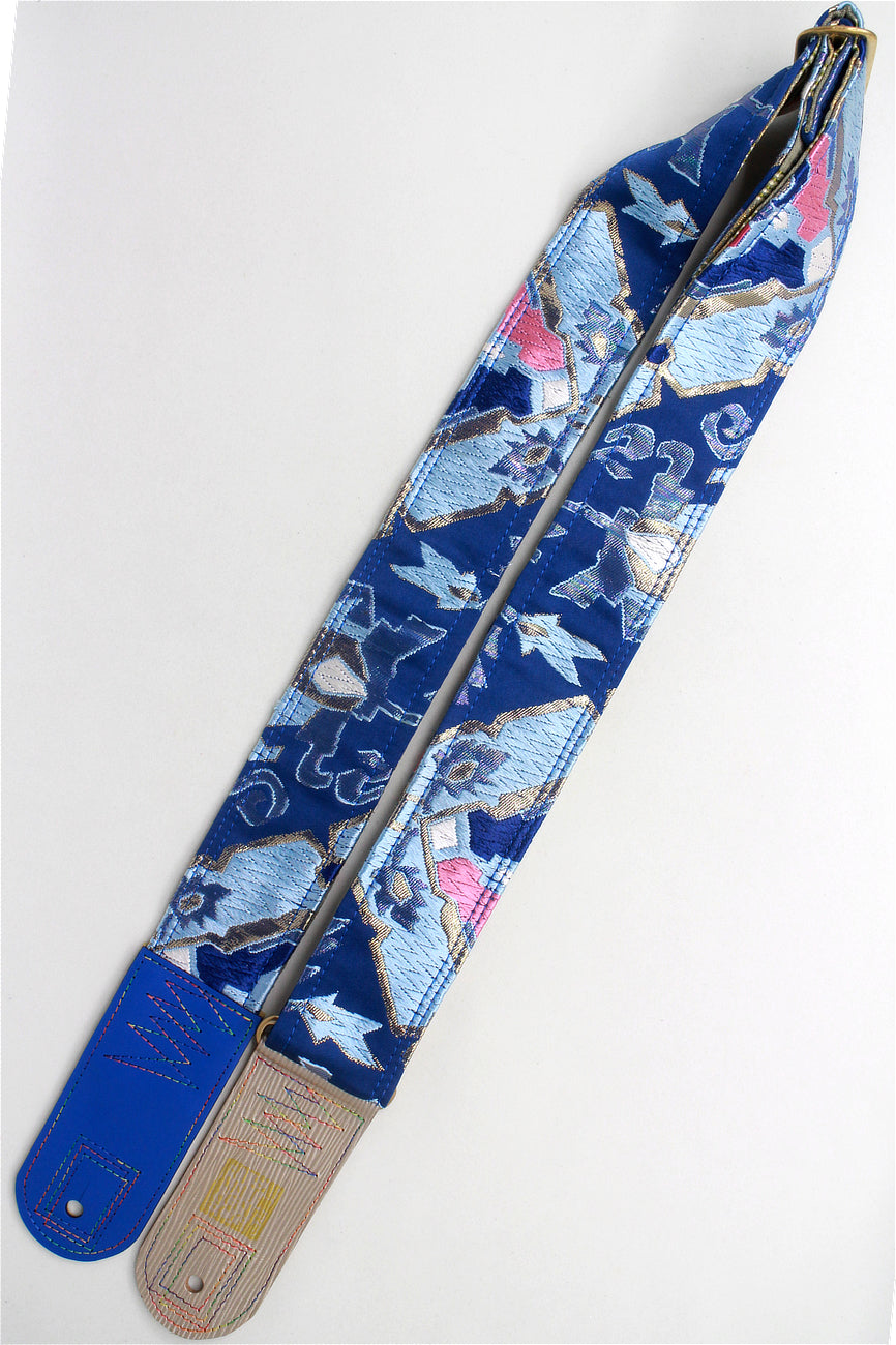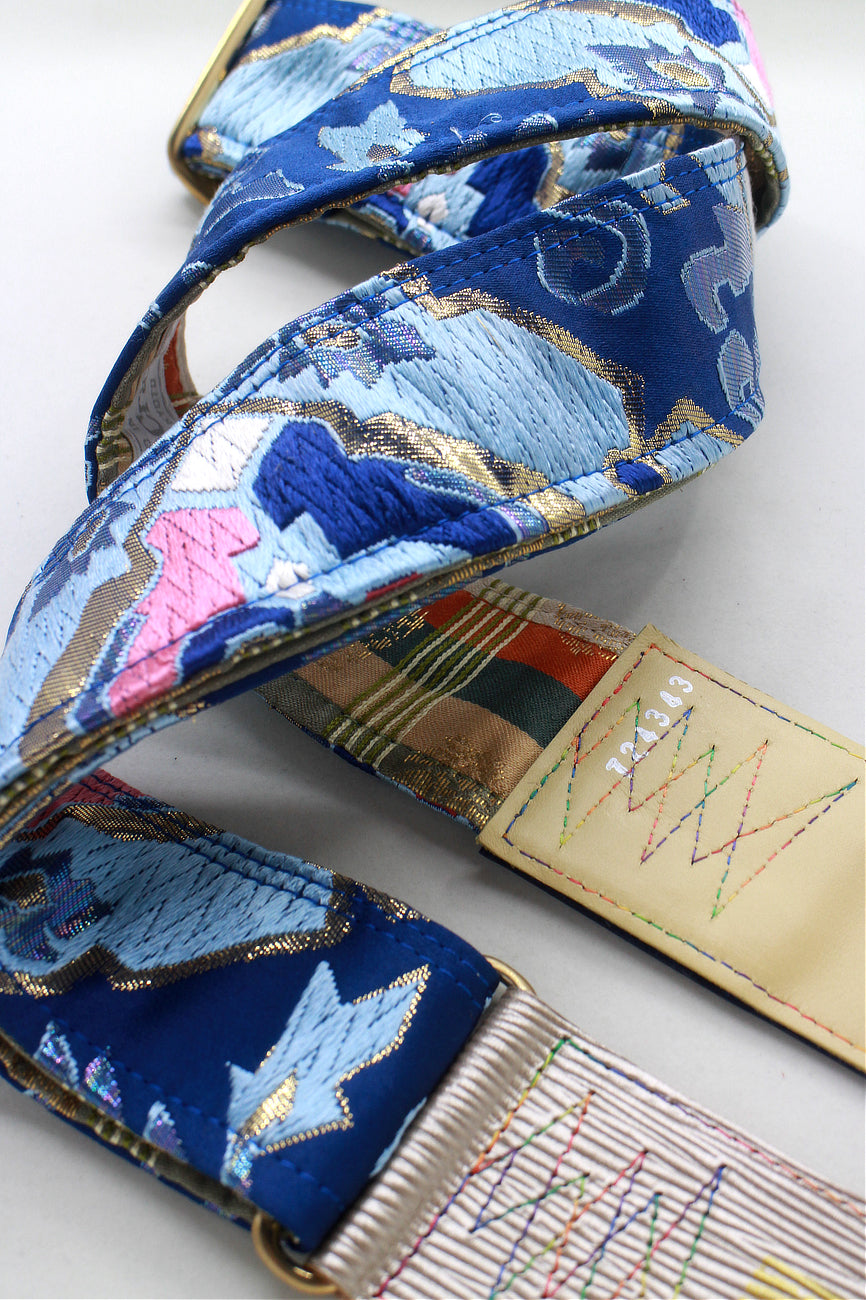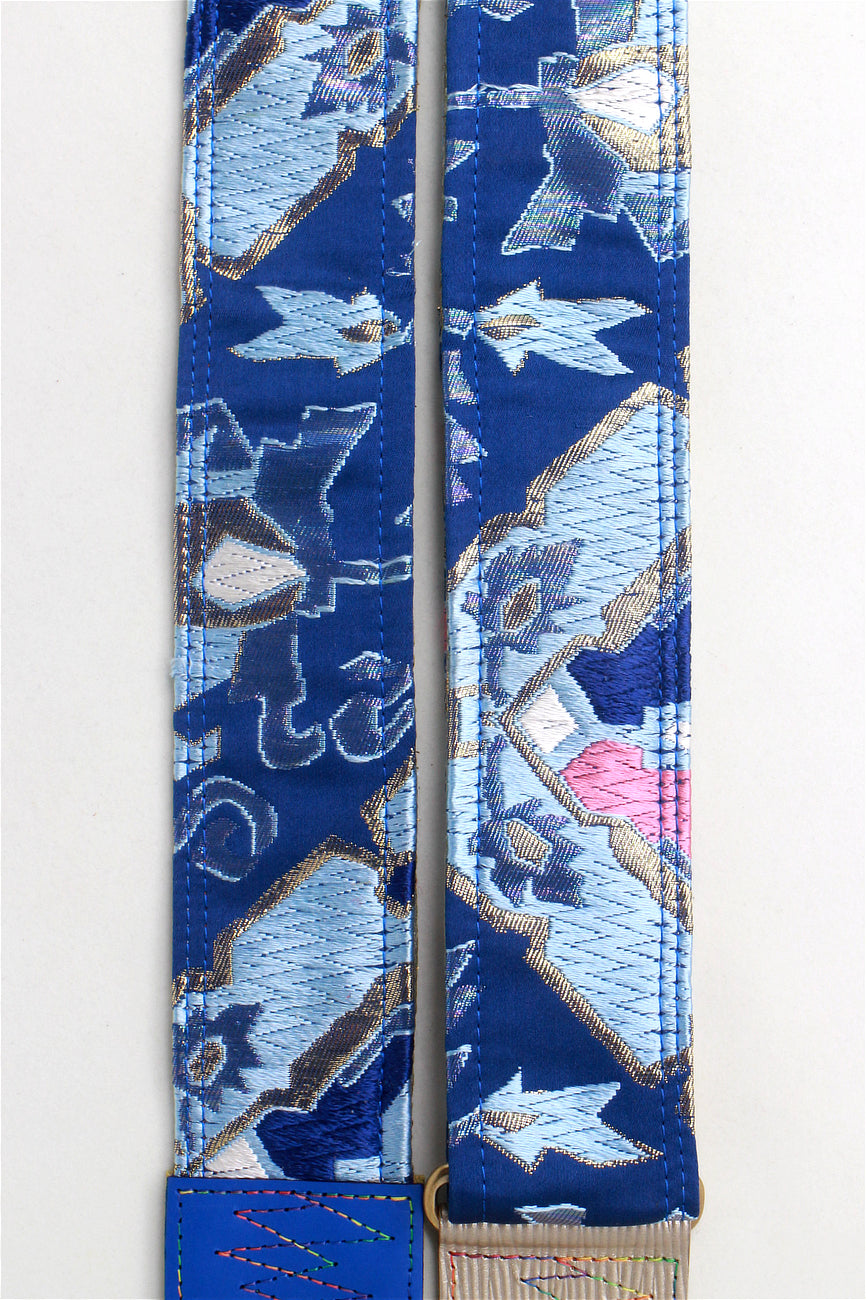 Unique and beautiful guitar strap [SC724343] - hand made in Japan from recycled silk woven kimono obi, leather and brass