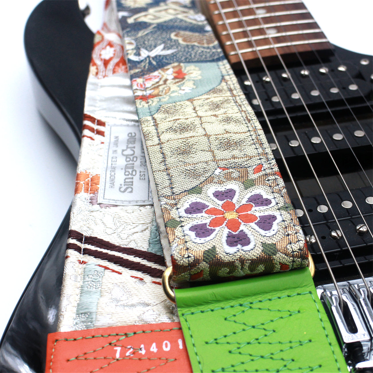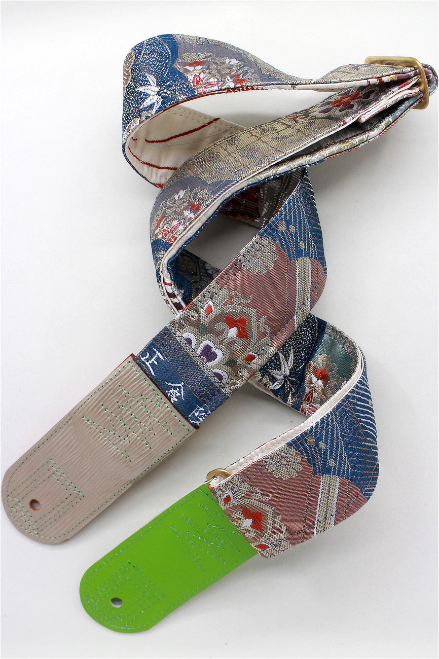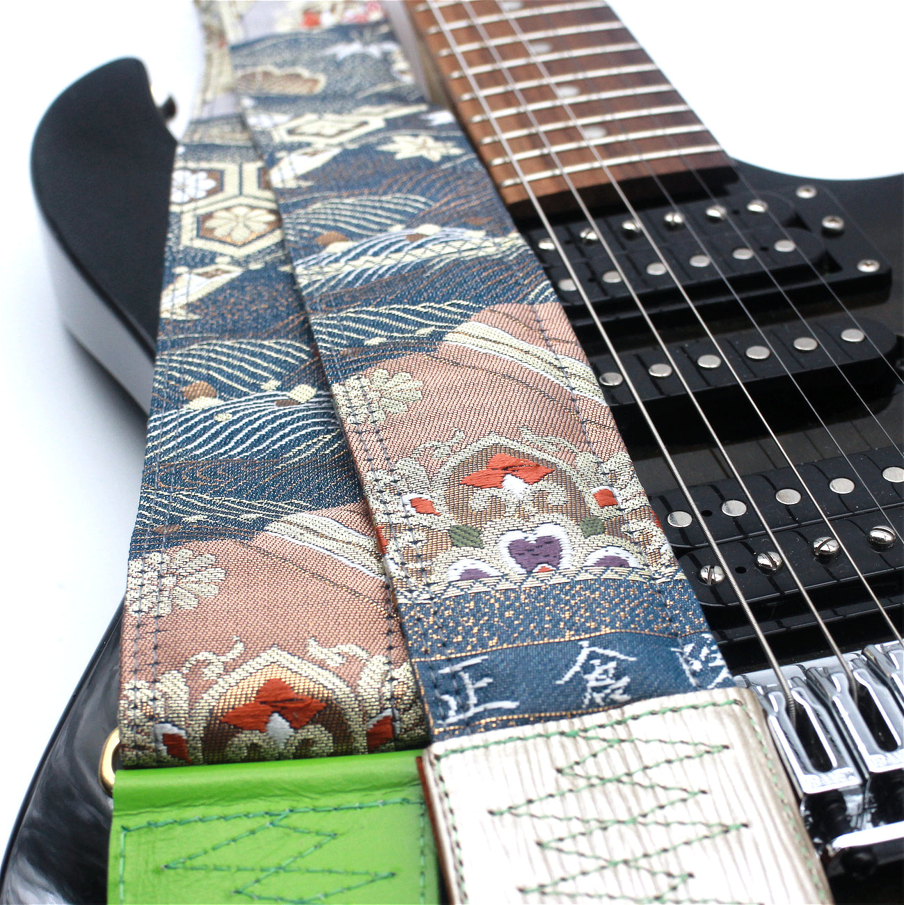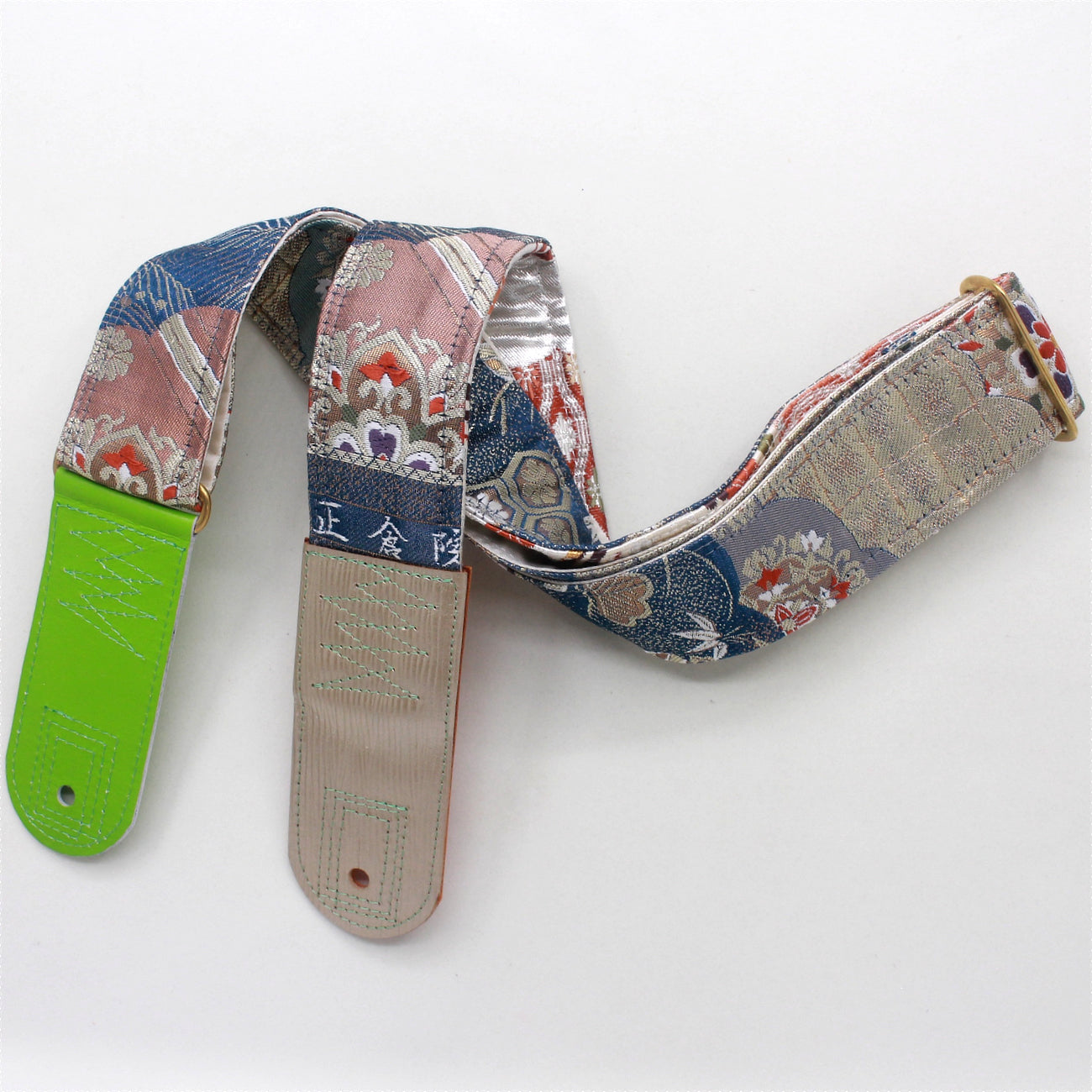Unique and beautiful guitar strap [SC724401] - hand made in Japan from recycled silk woven kimono obi, leather and brass