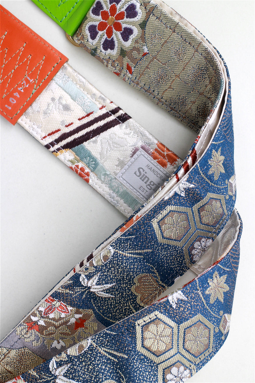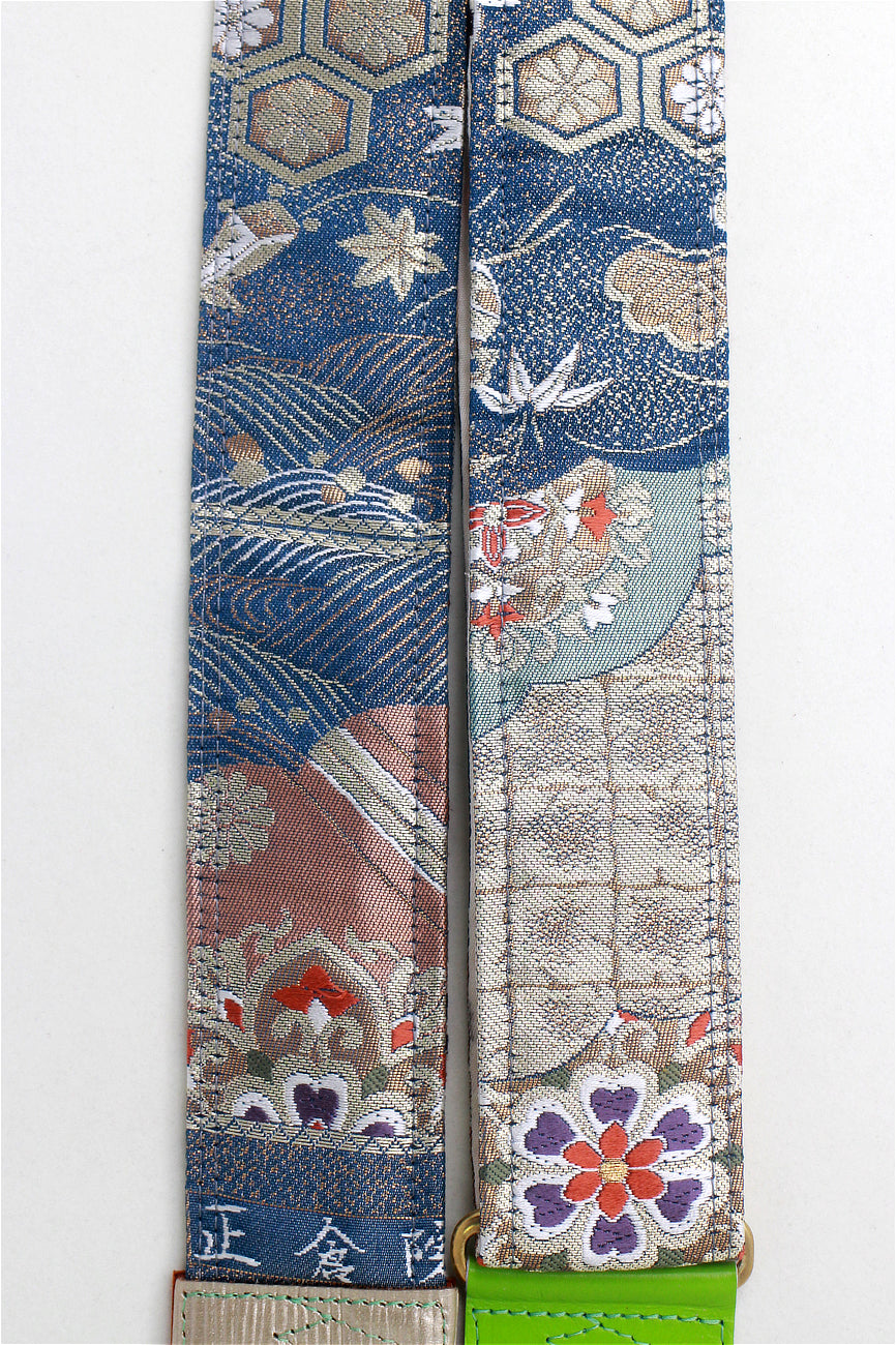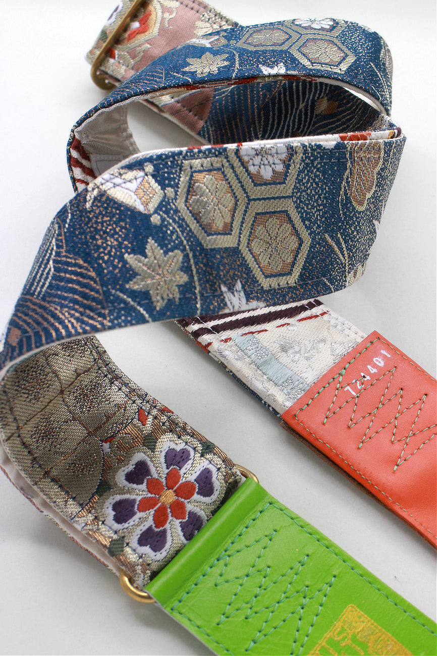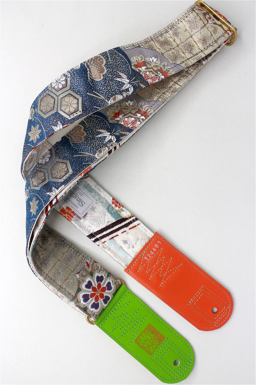 Unique and beautiful guitar strap [SC724401] - hand made in Japan from recycled silk woven kimono obi, leather and brass