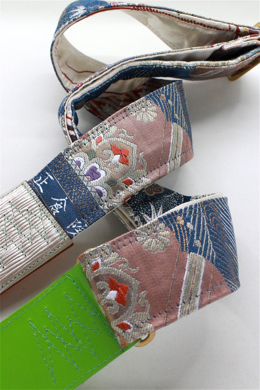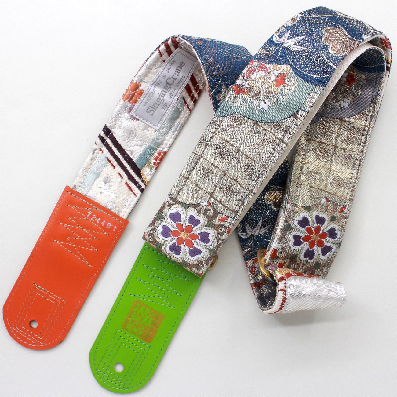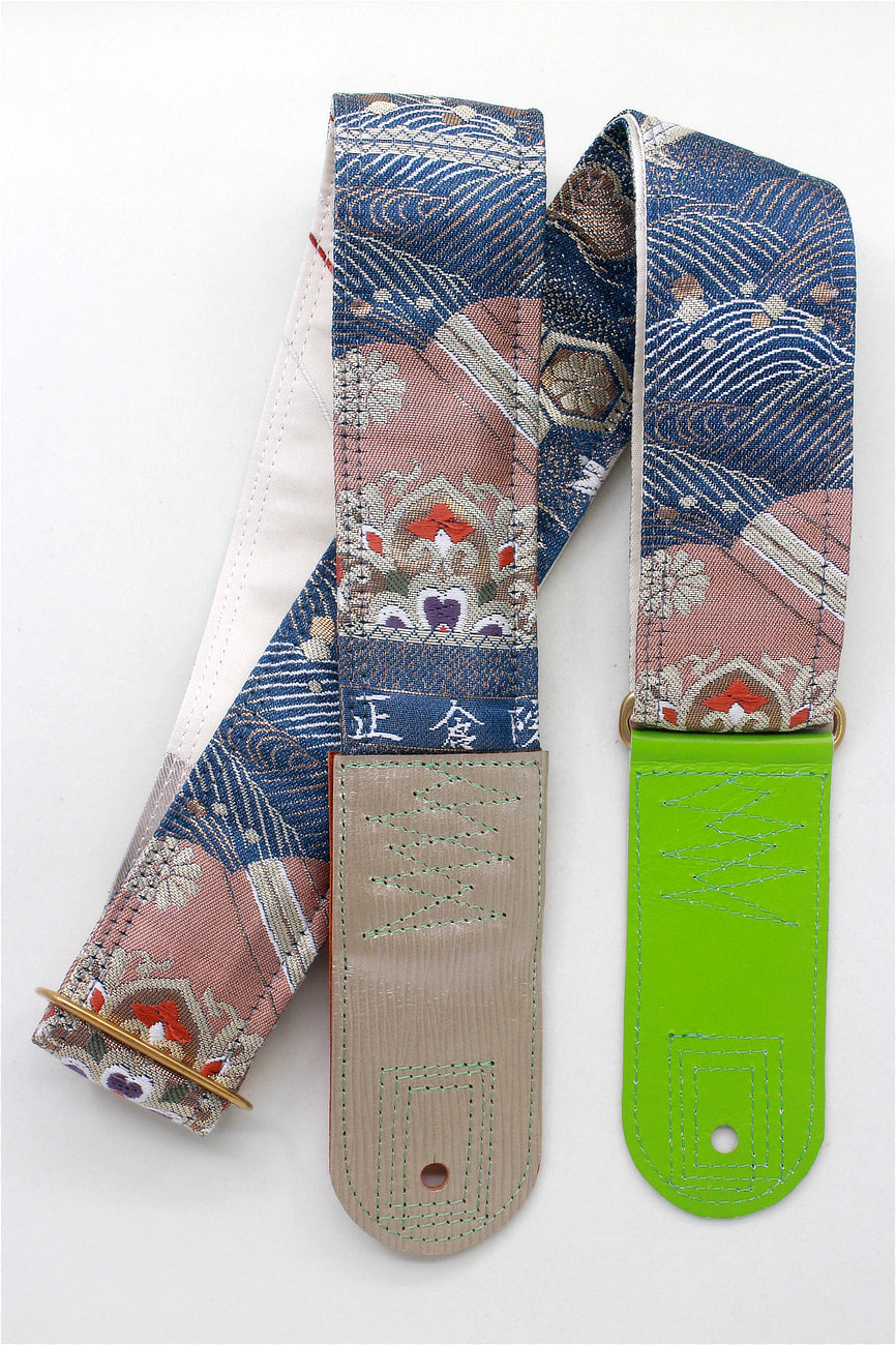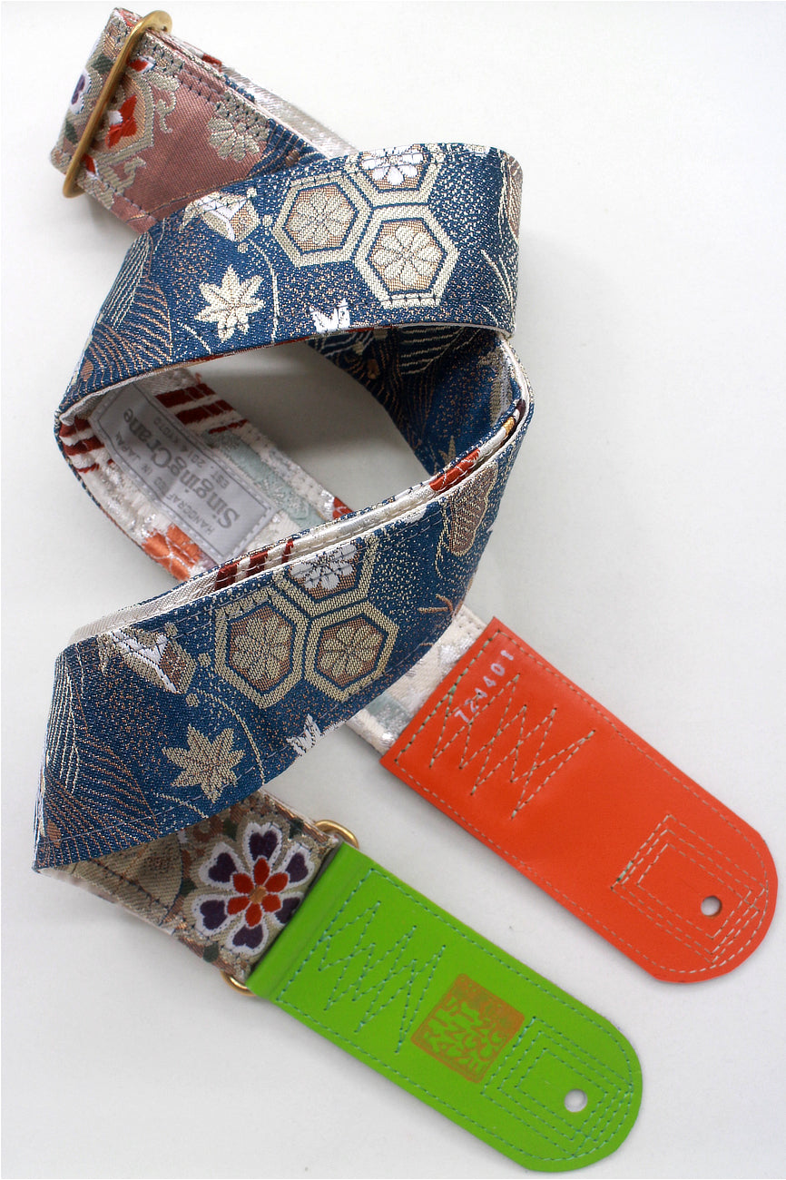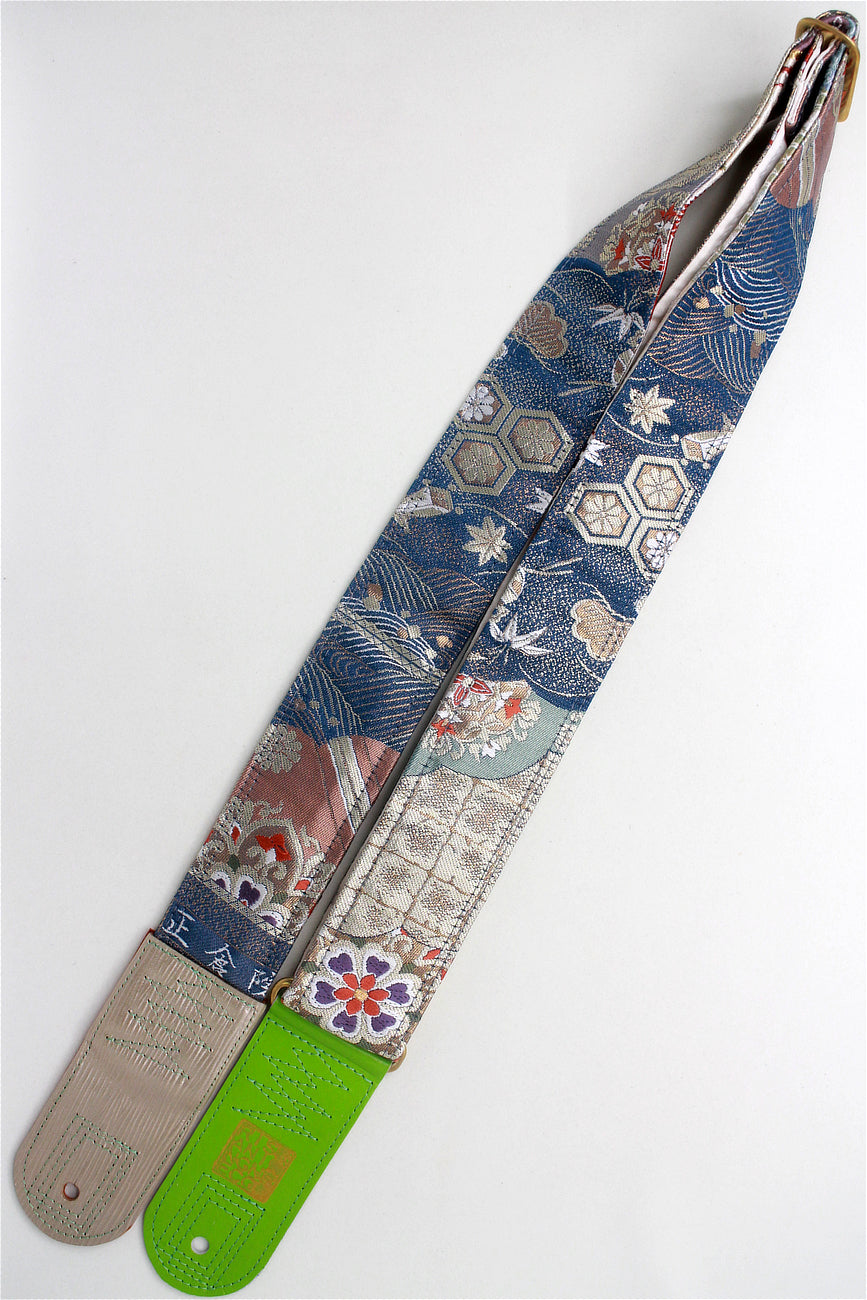 Unique and beautiful guitar strap [SC724401] - hand made in Japan from recycled silk woven kimono obi, leather and brass
