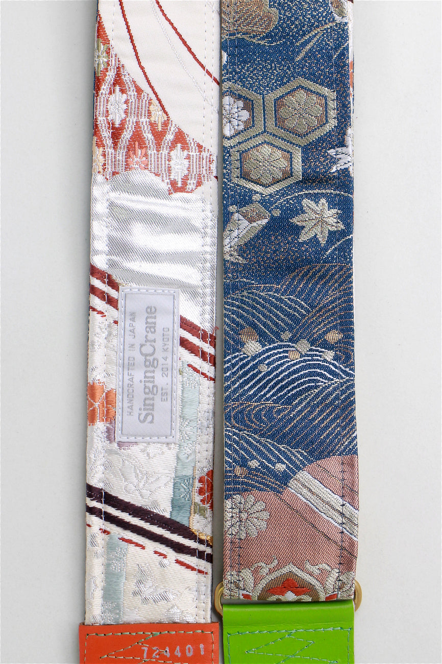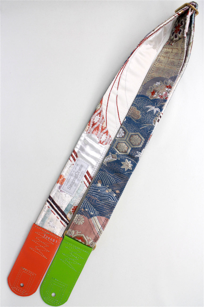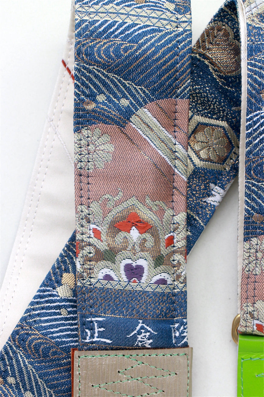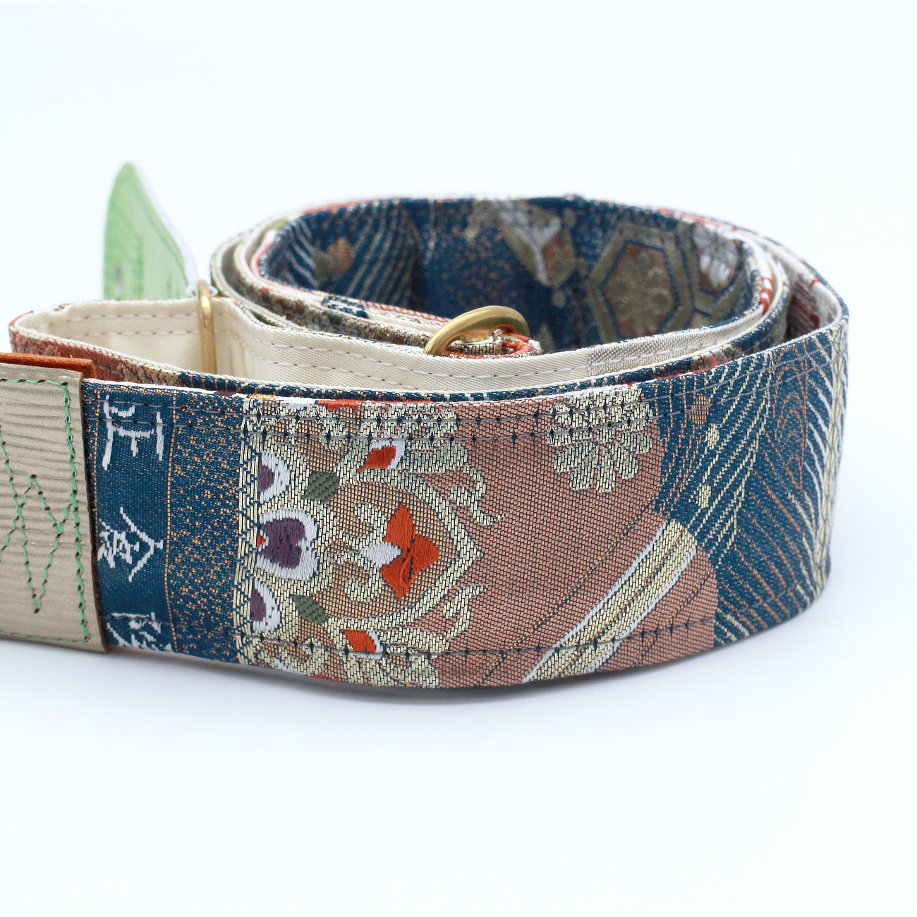 Unique and beautiful guitar strap [SC724401] - hand made in Japan from recycled silk woven kimono obi, leather and brass