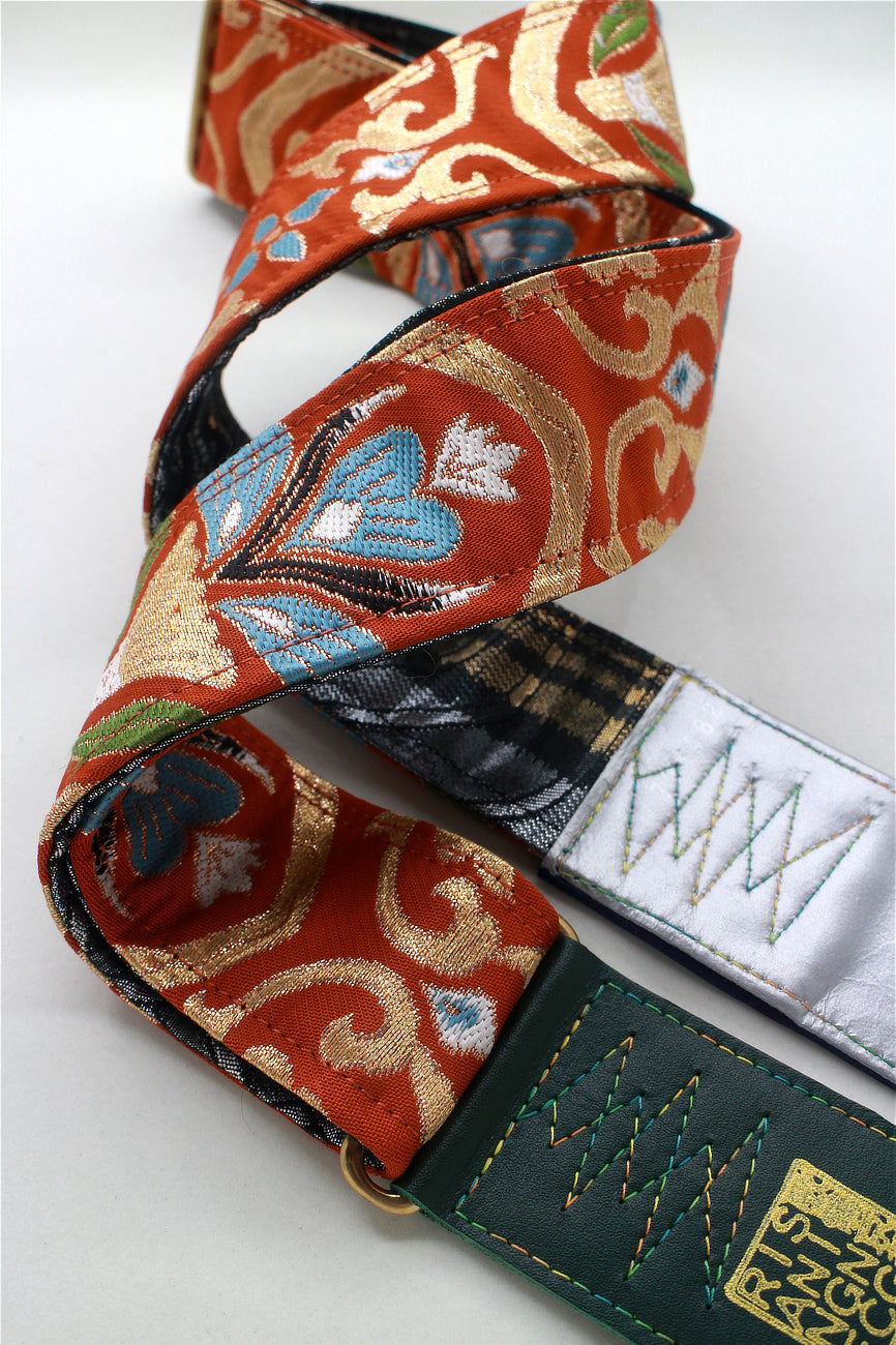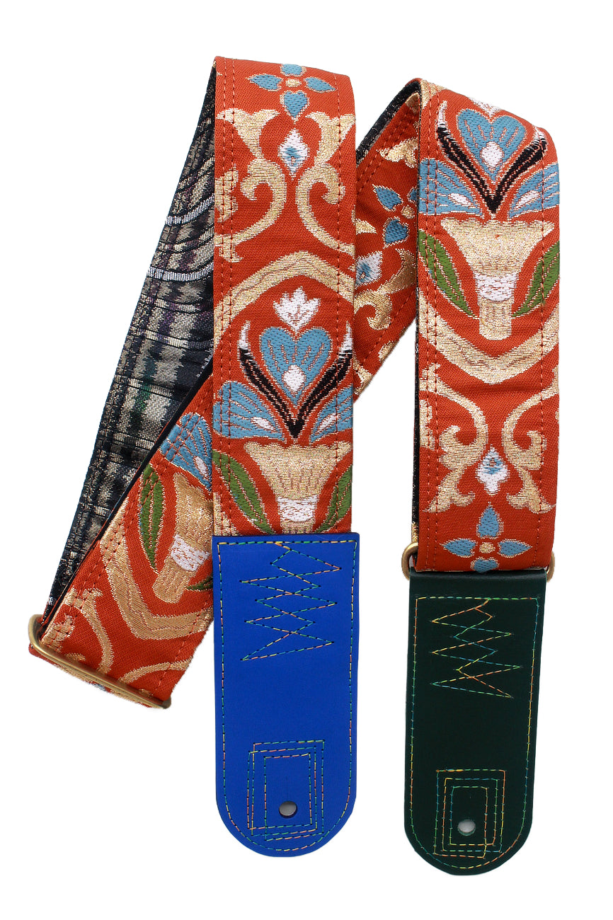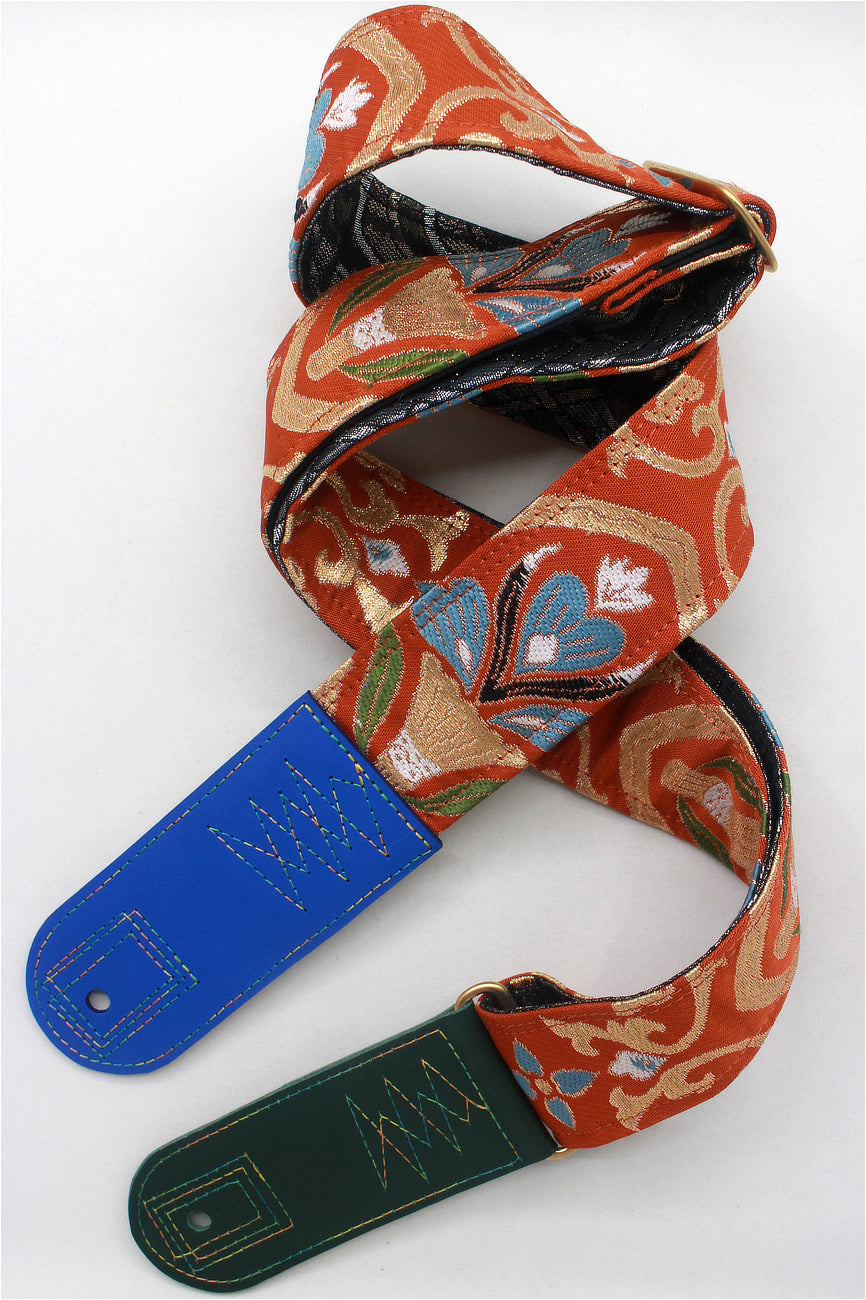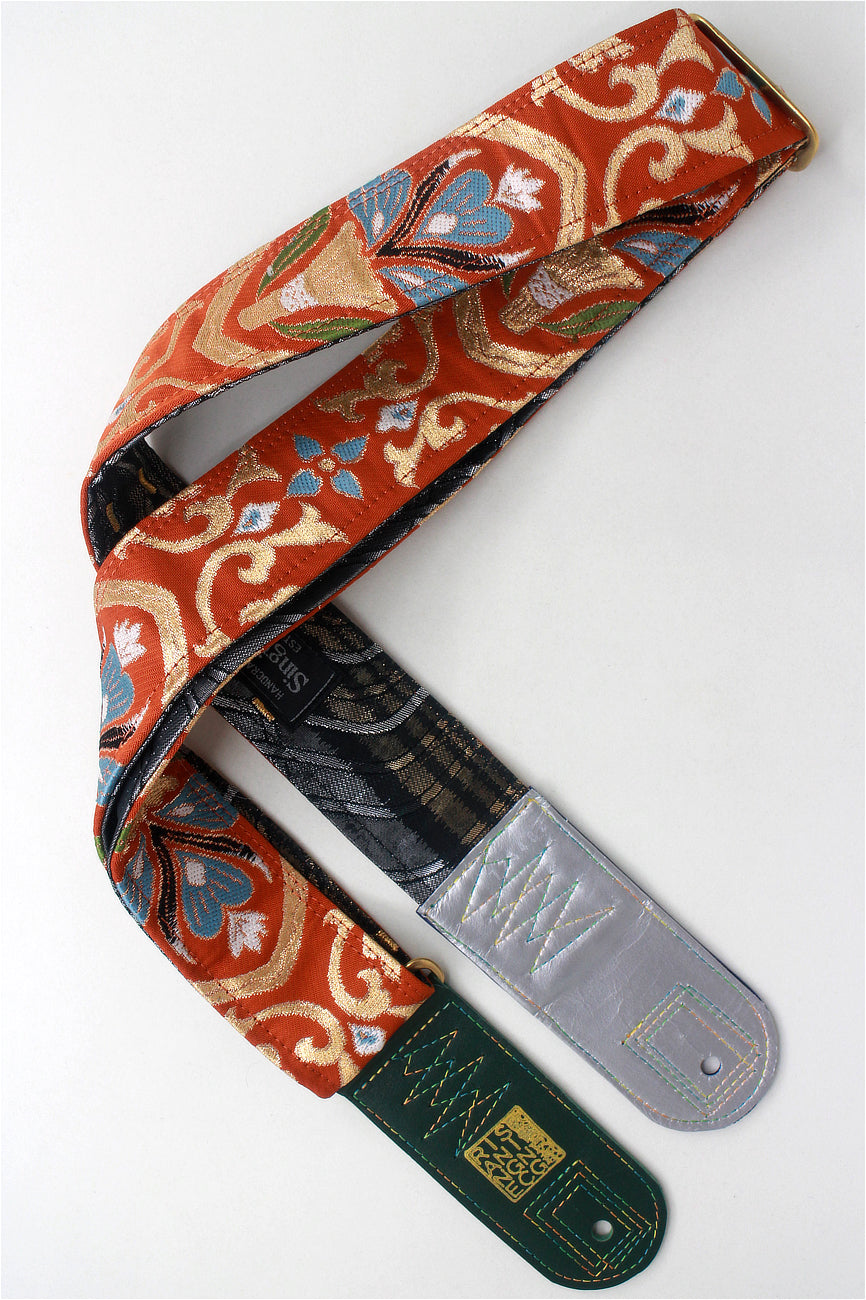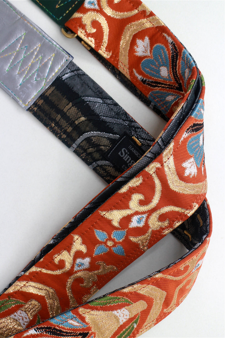 Unique and beautiful guitar strap [SC724482] - hand made in Japan from recycled silk woven kimono obi, leather and brass