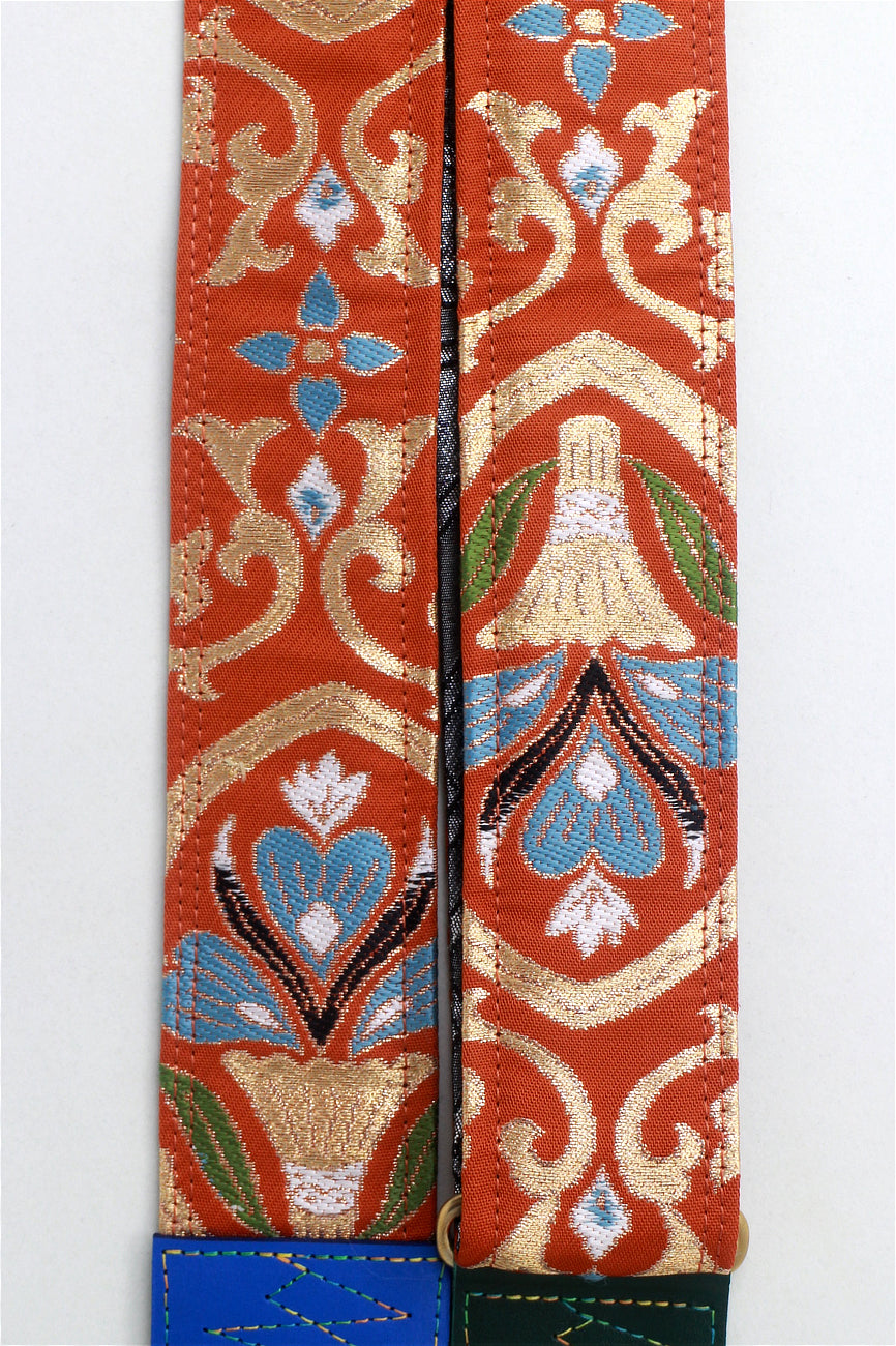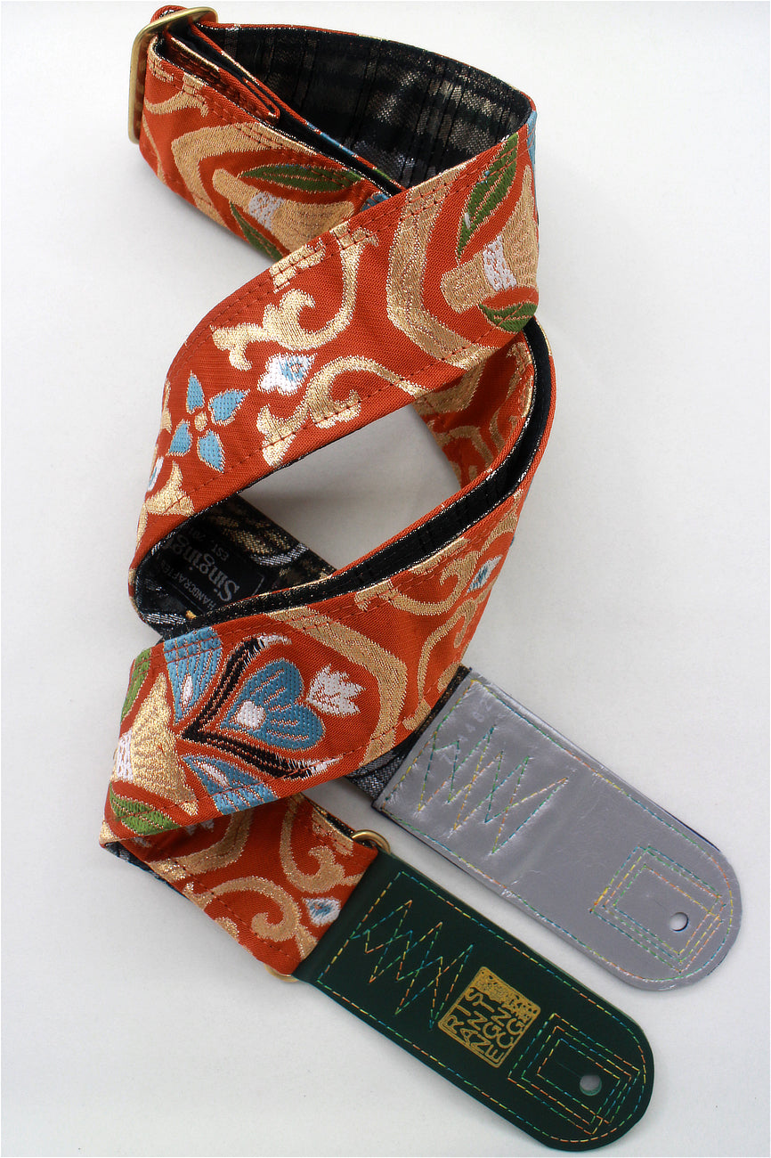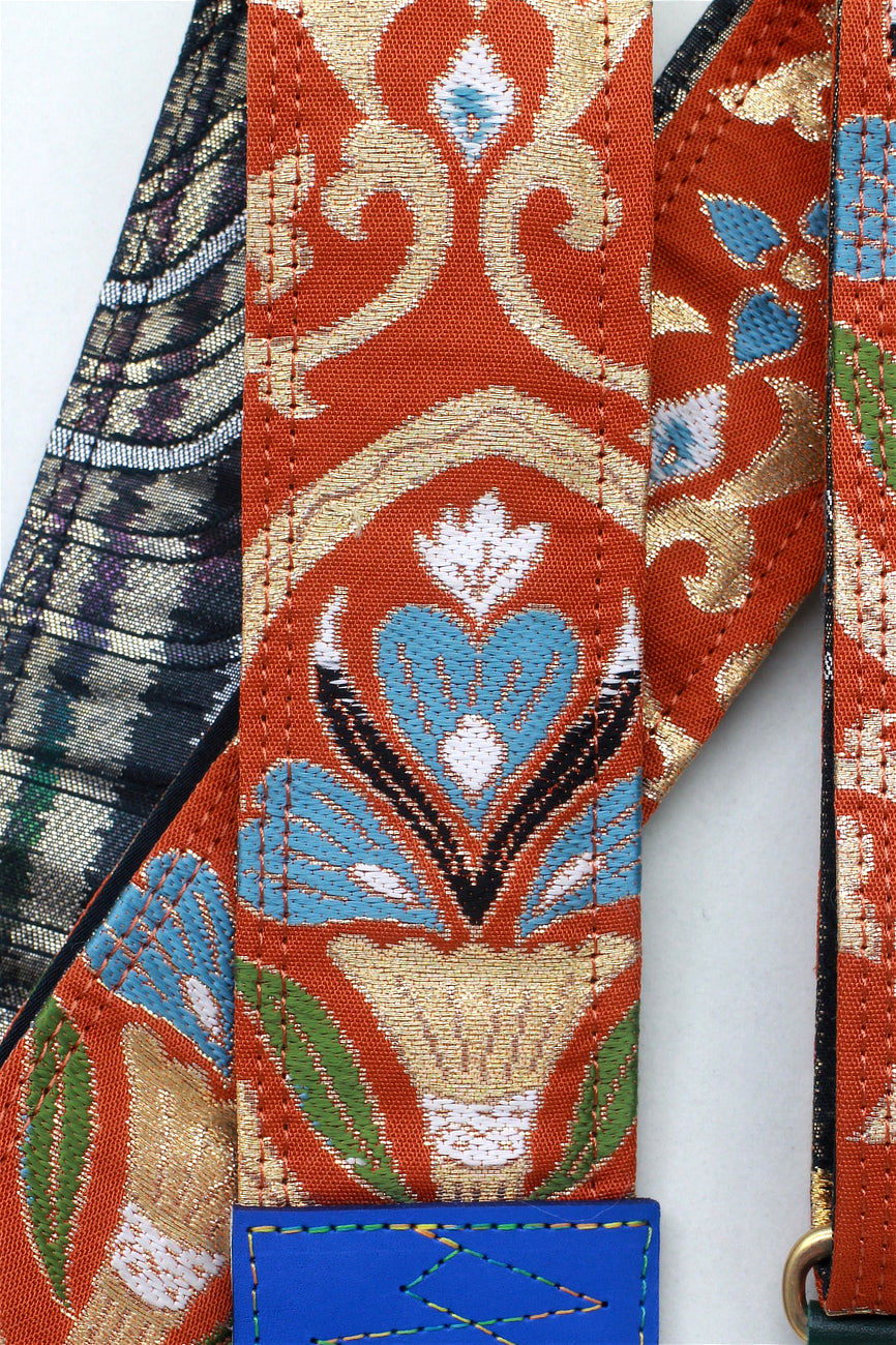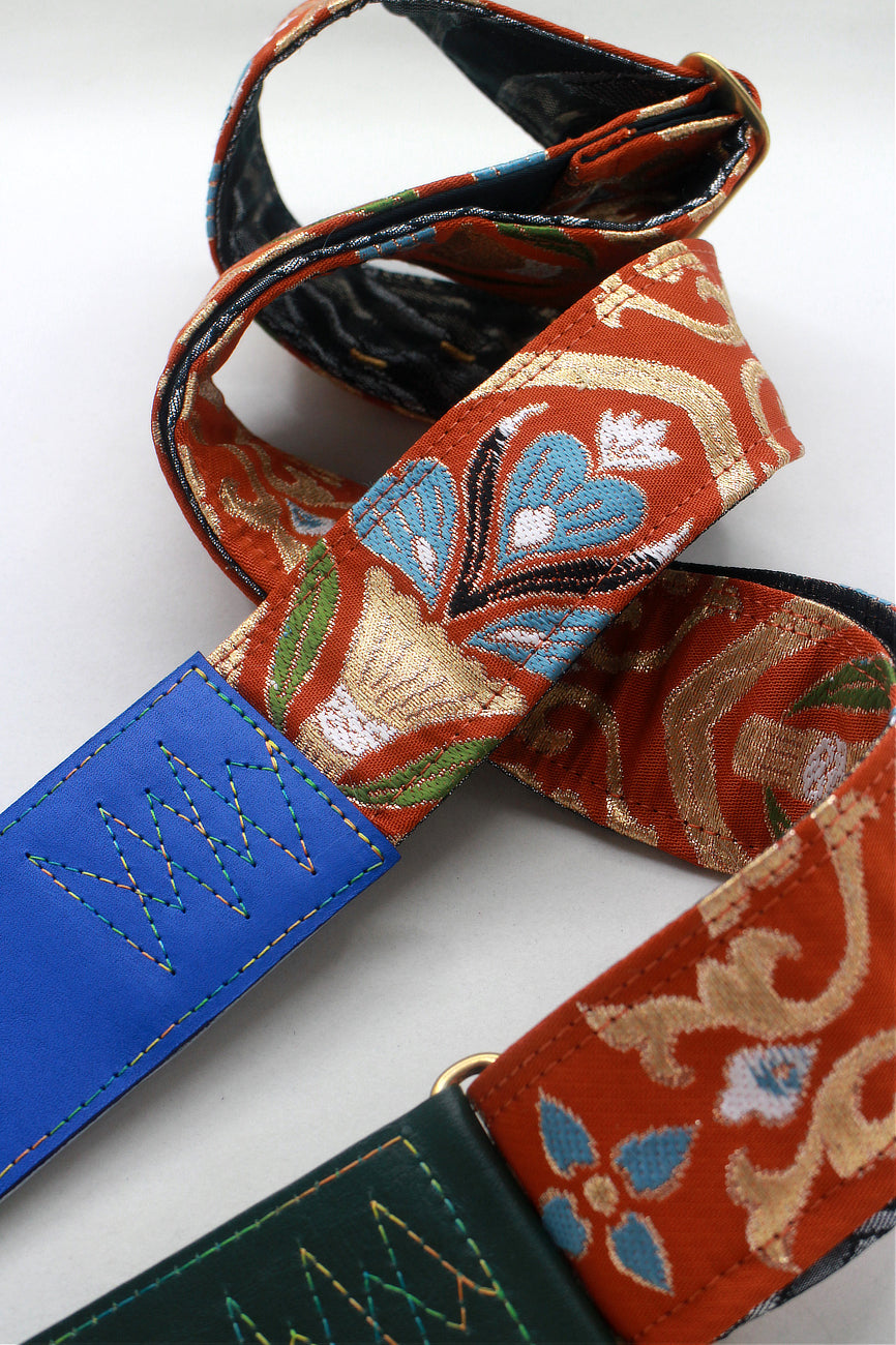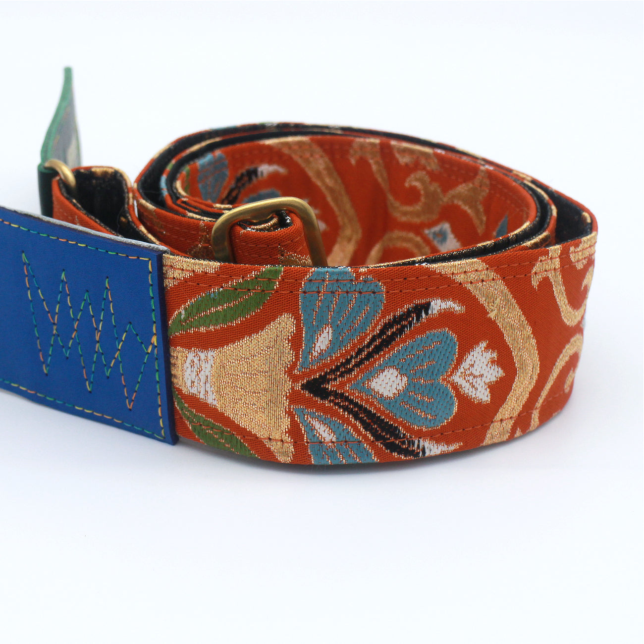 Unique and beautiful guitar strap [SC724482] - hand made in Japan from recycled silk woven kimono obi, leather and brass