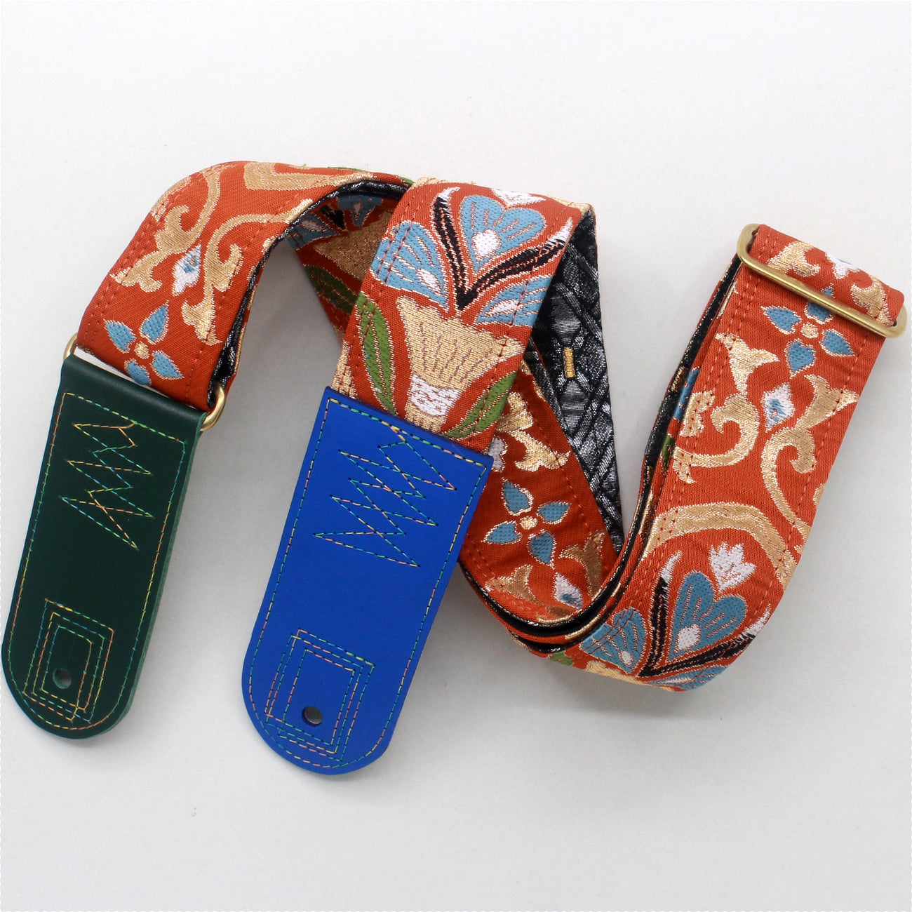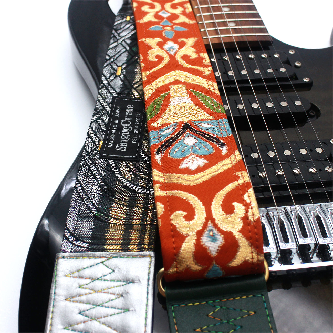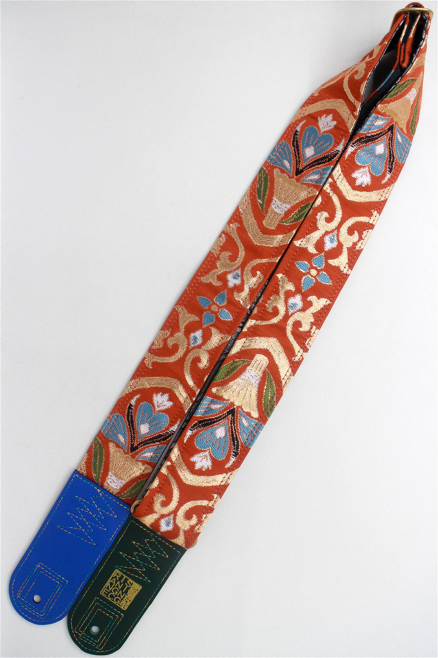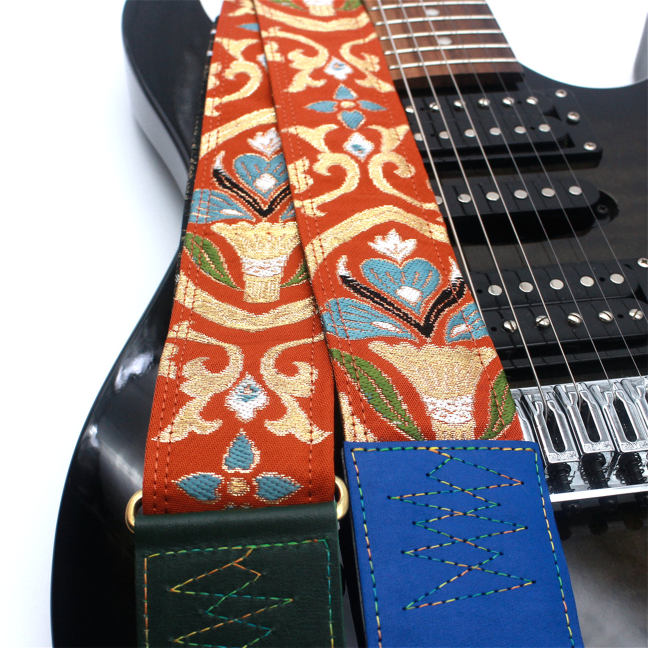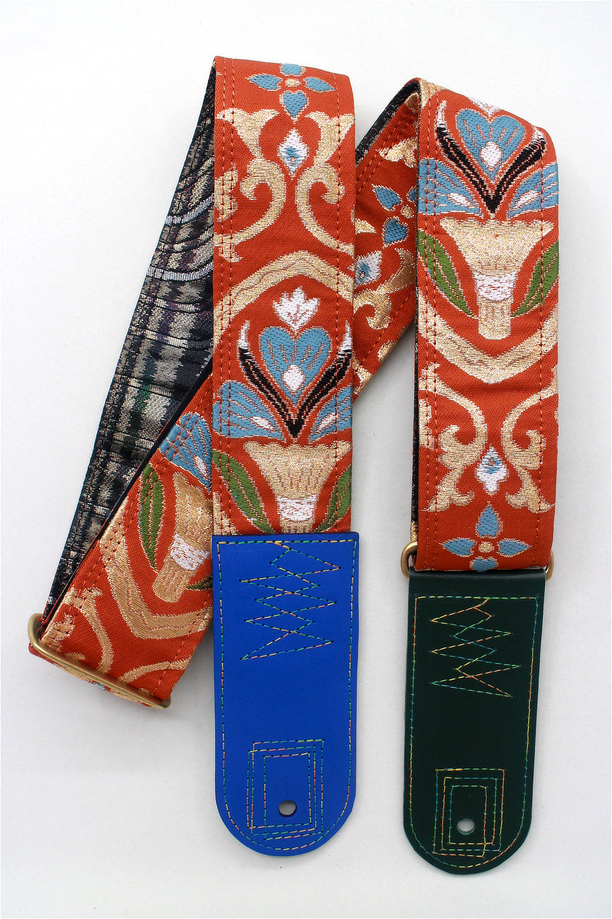 Unique and beautiful guitar strap [SC724482] - hand made in Japan from recycled silk woven kimono obi, leather and brass