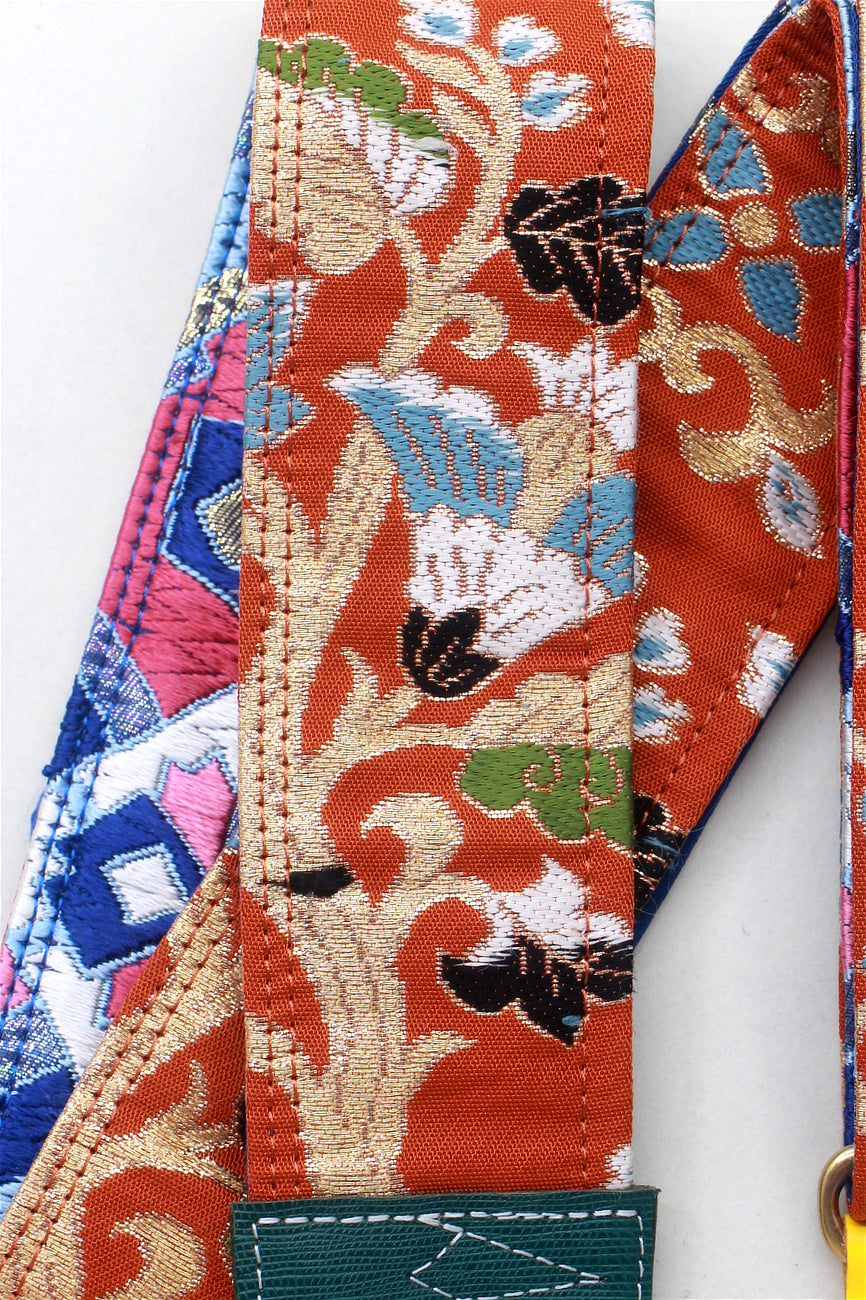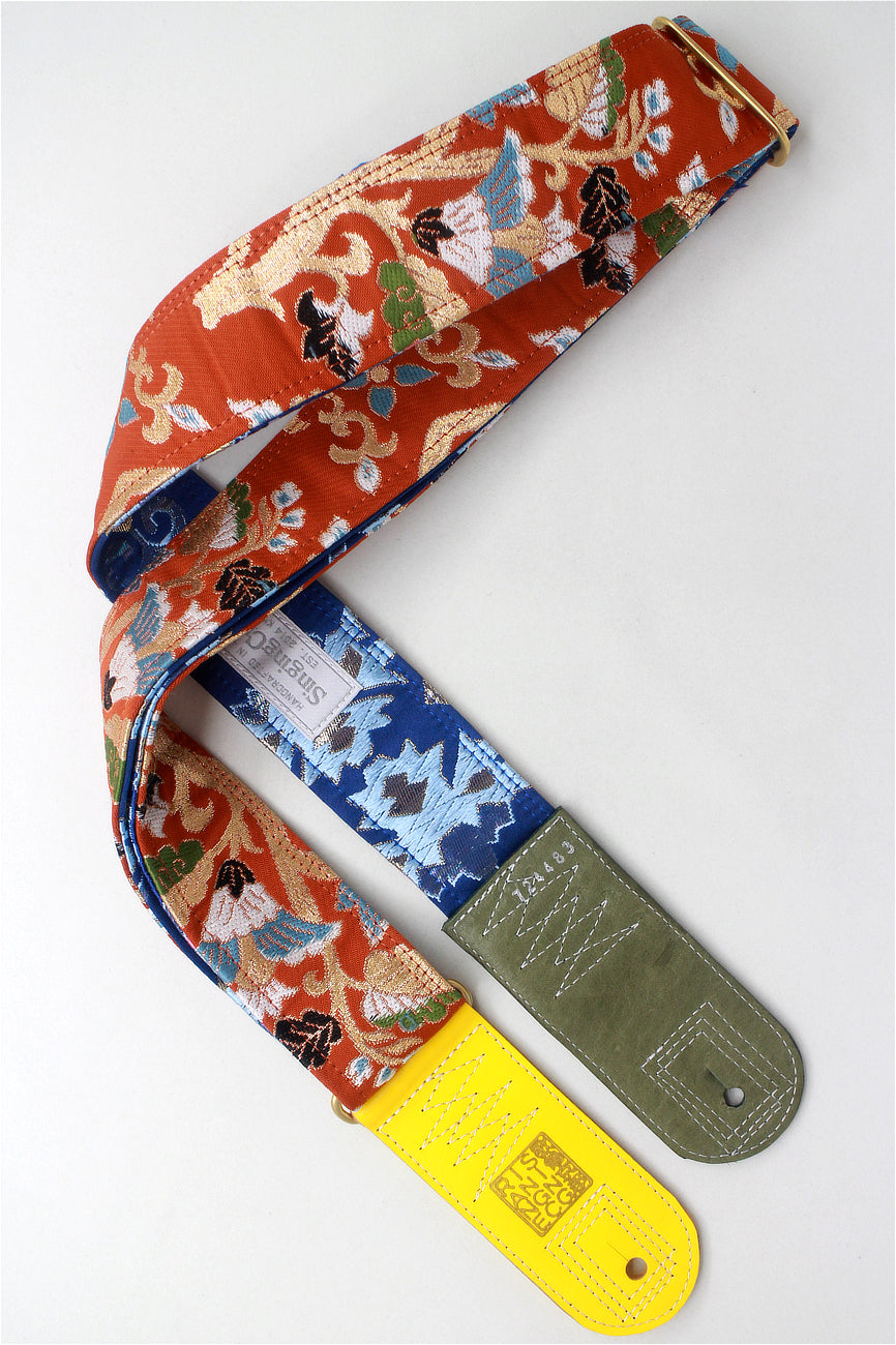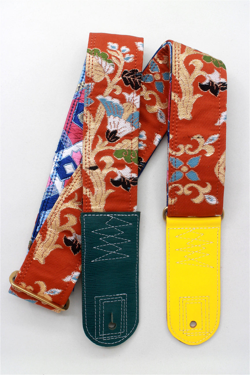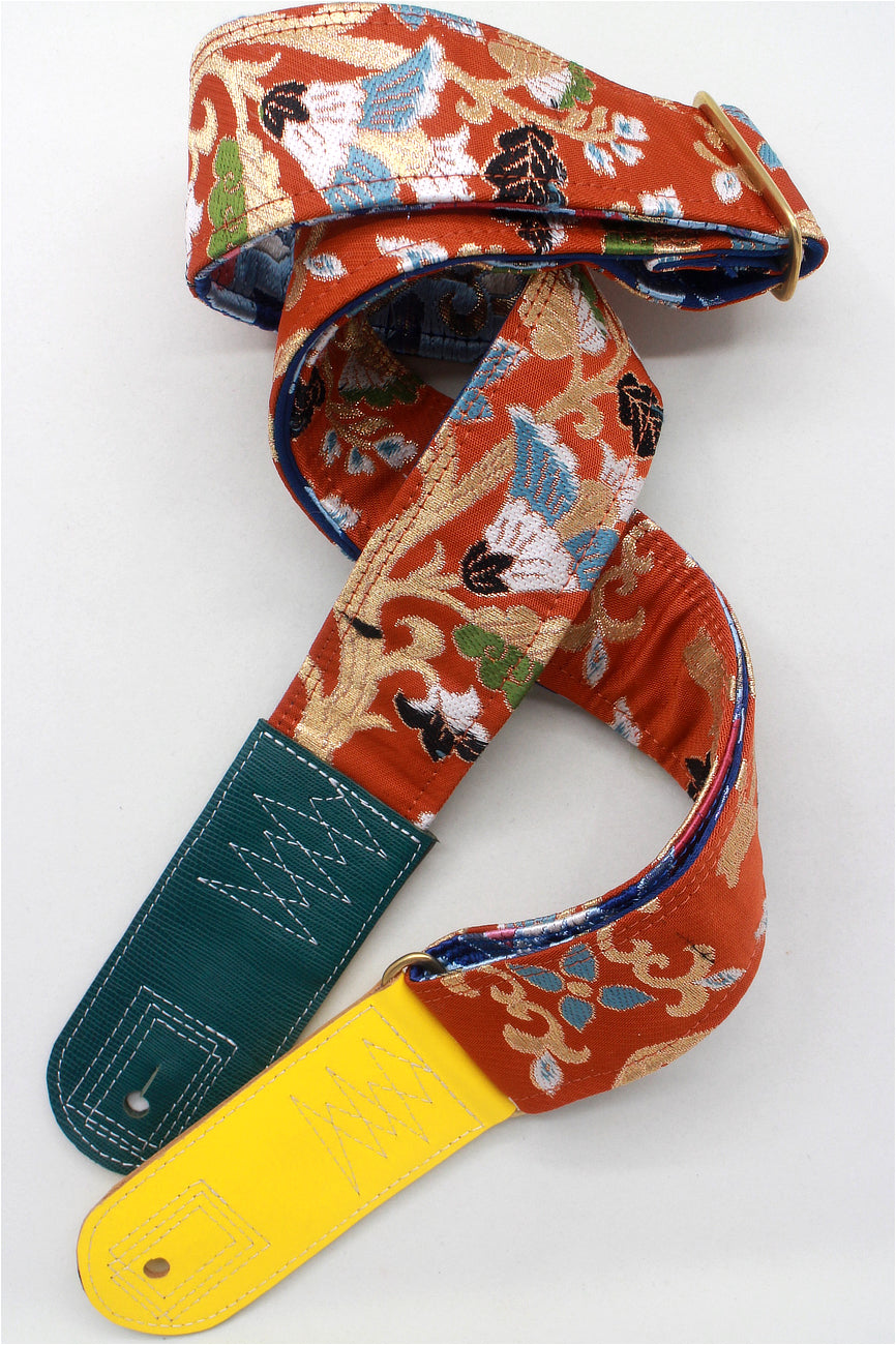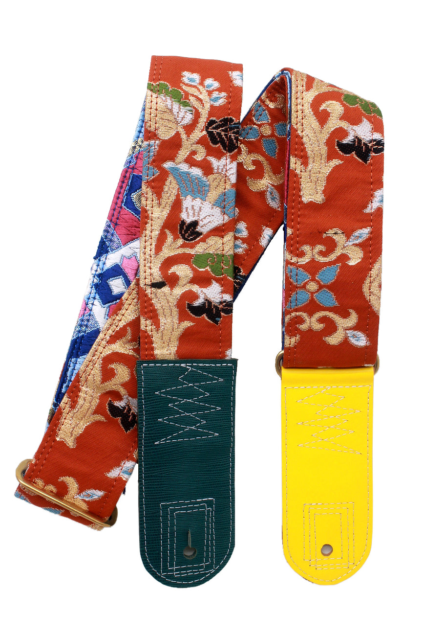 Unique and beautiful guitar strap [SC724483] - hand made in Japan from recycled silk woven kimono obi, leather and brass