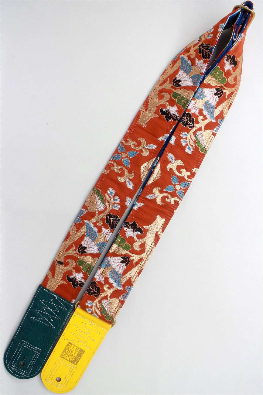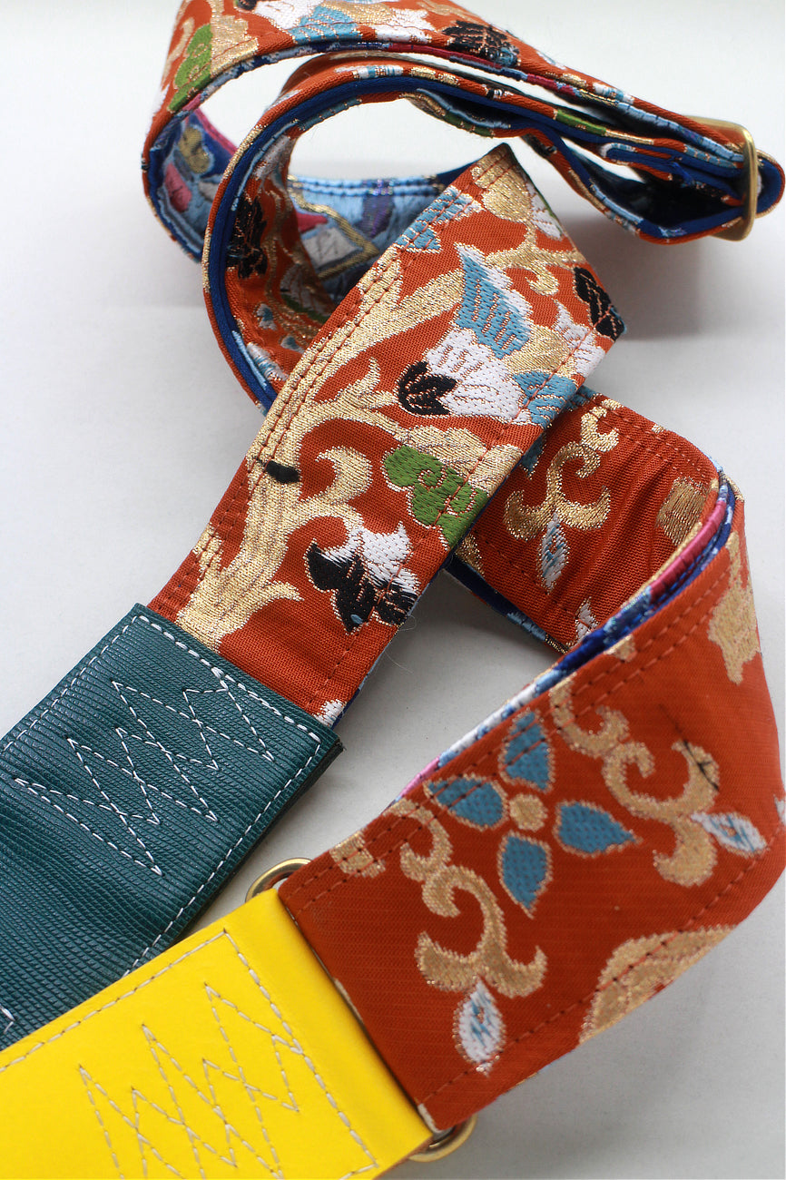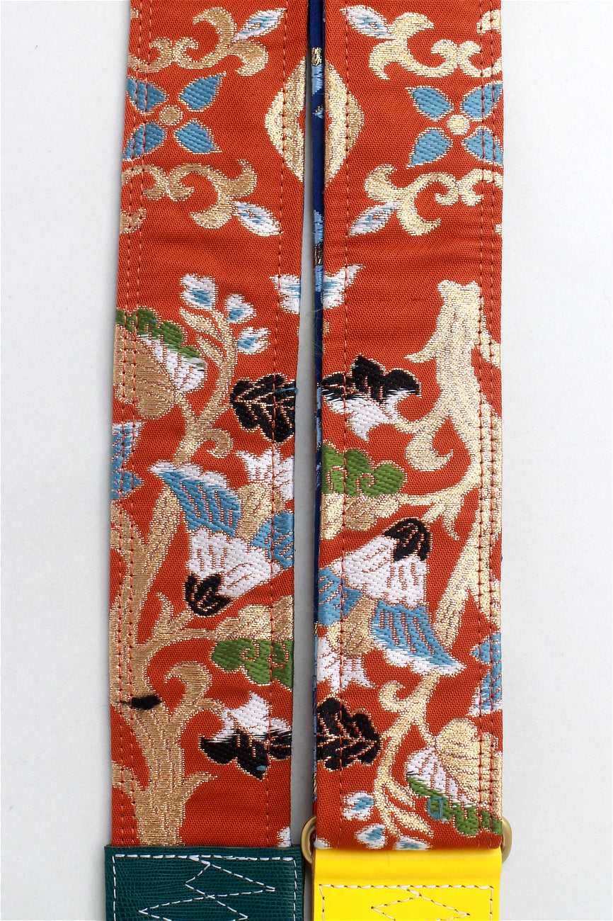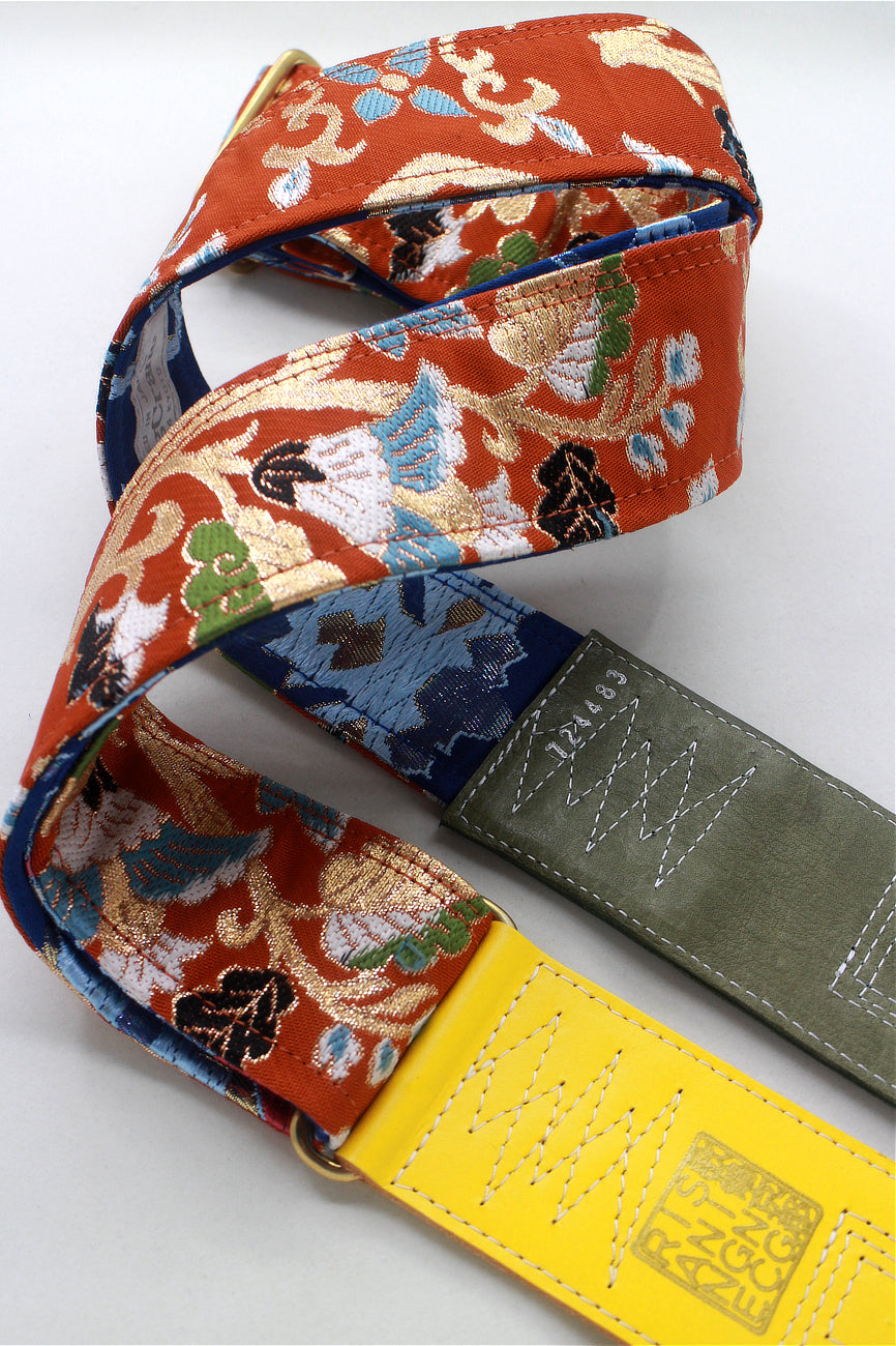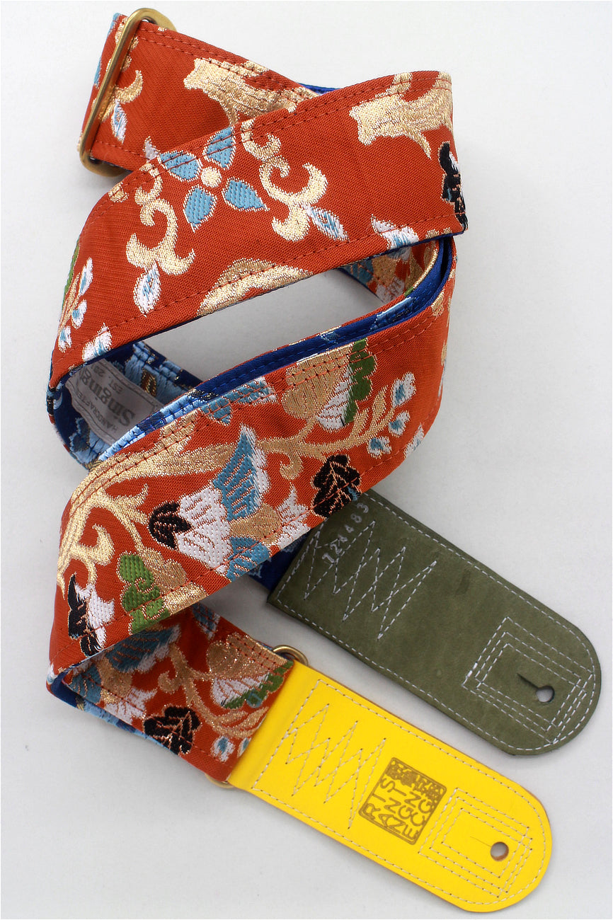 Unique and beautiful guitar strap [SC724483] - hand made in Japan from recycled silk woven kimono obi, leather and brass
