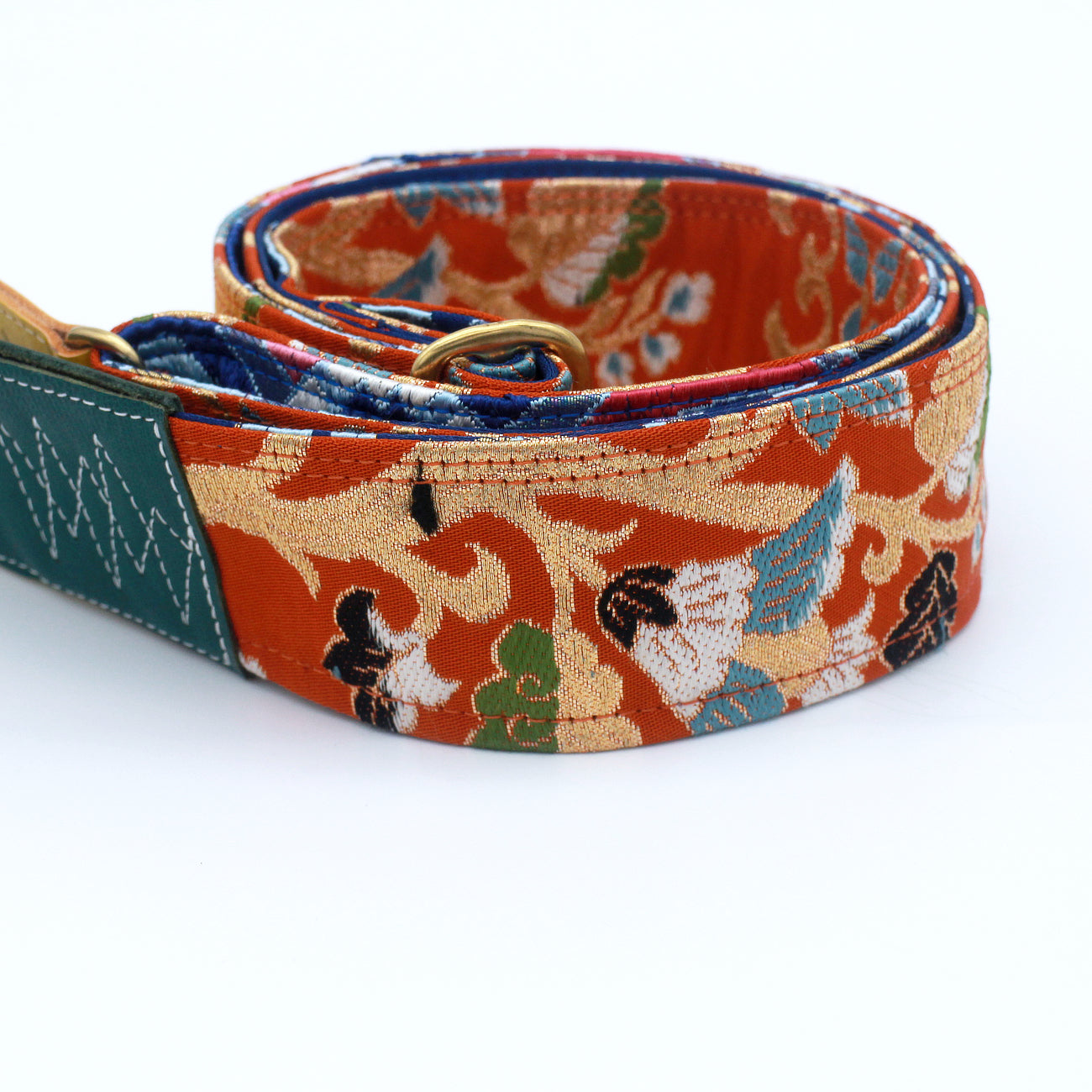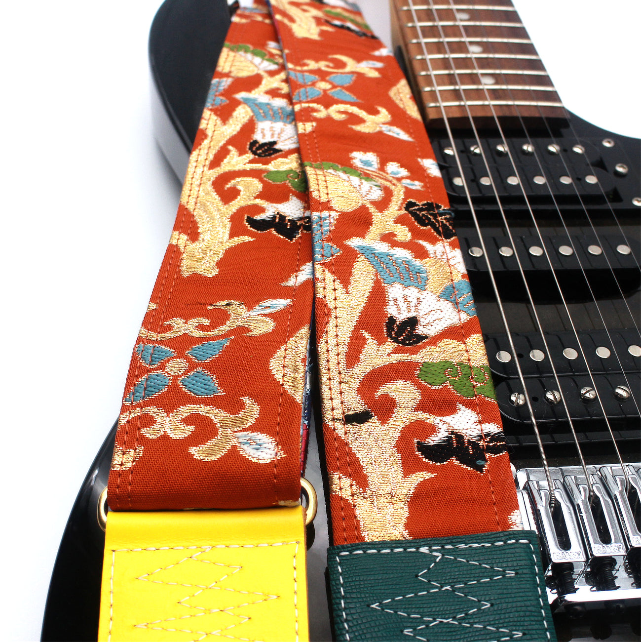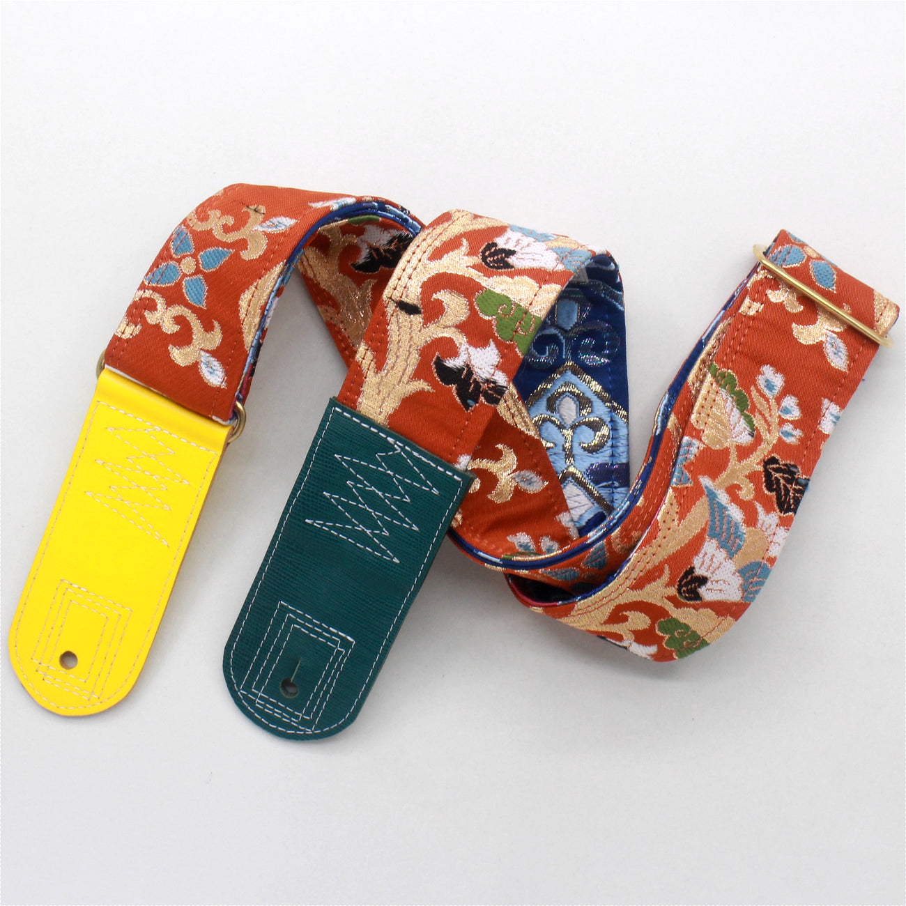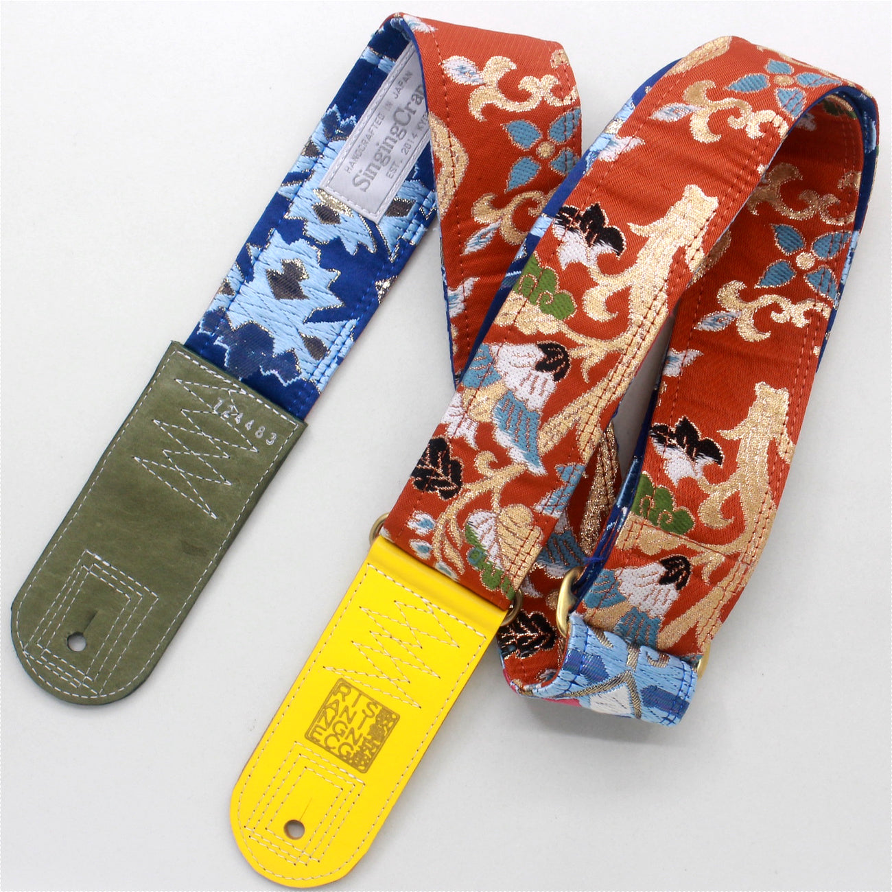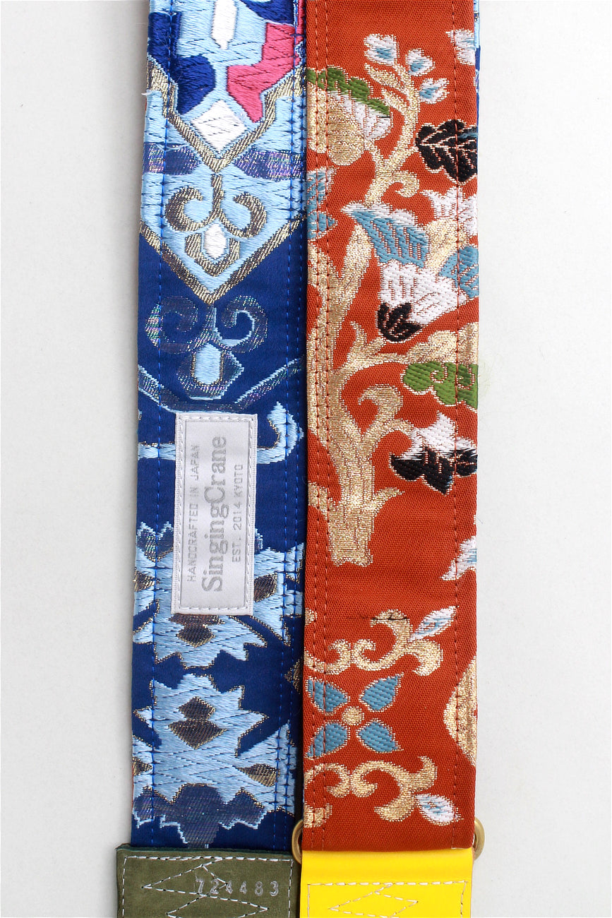 Unique and beautiful guitar strap [SC724483] - hand made in Japan from recycled silk woven kimono obi, leather and brass
