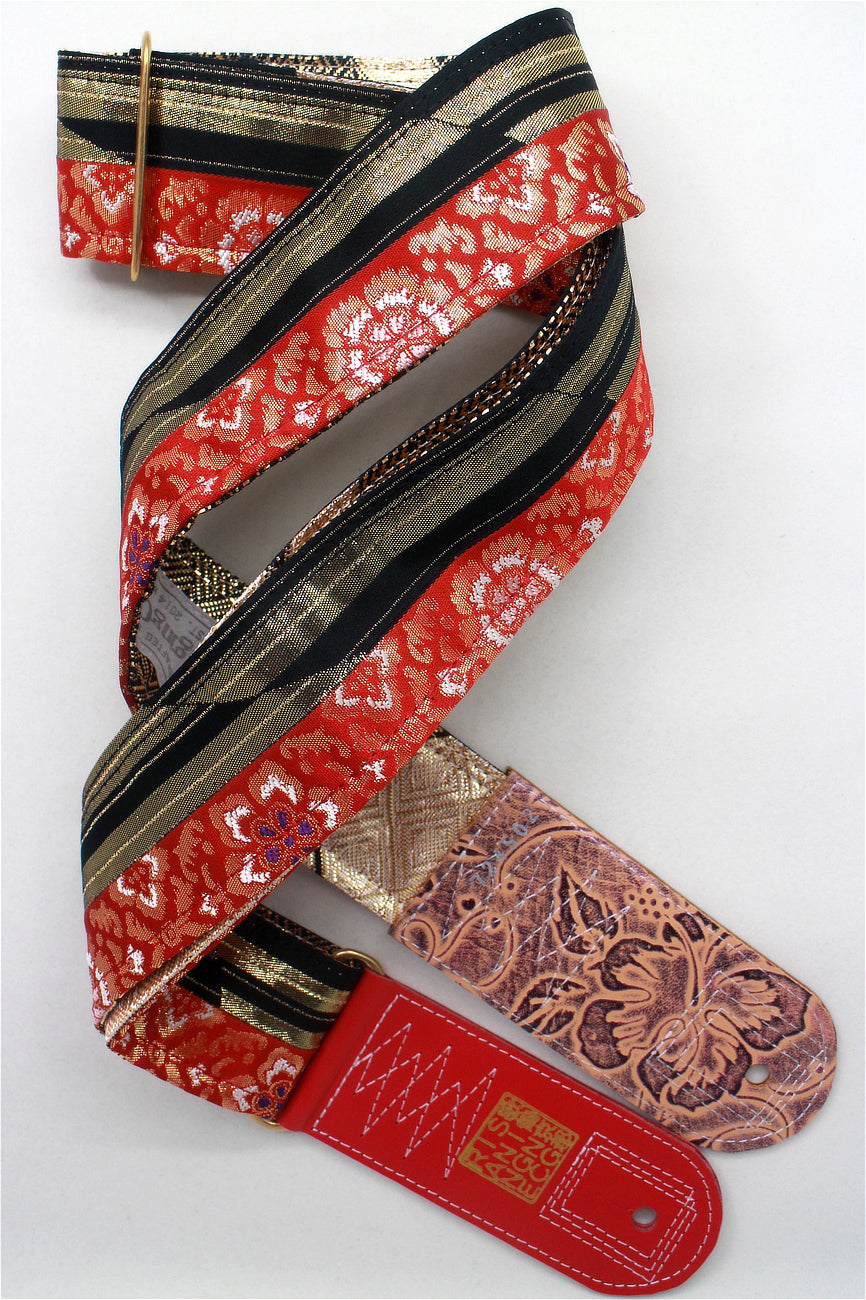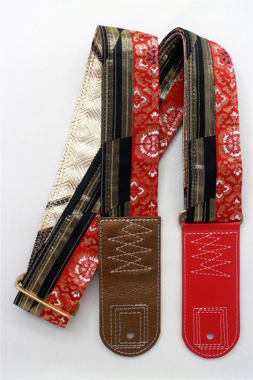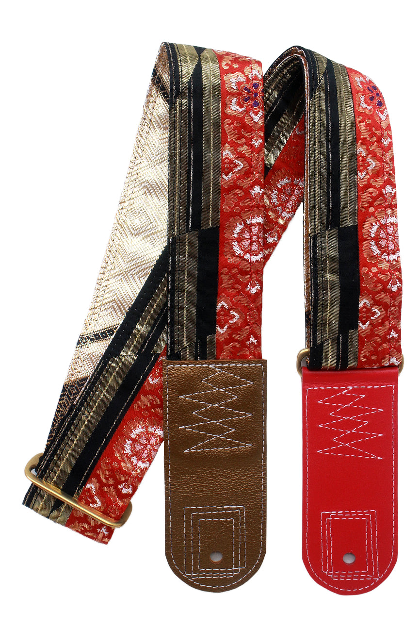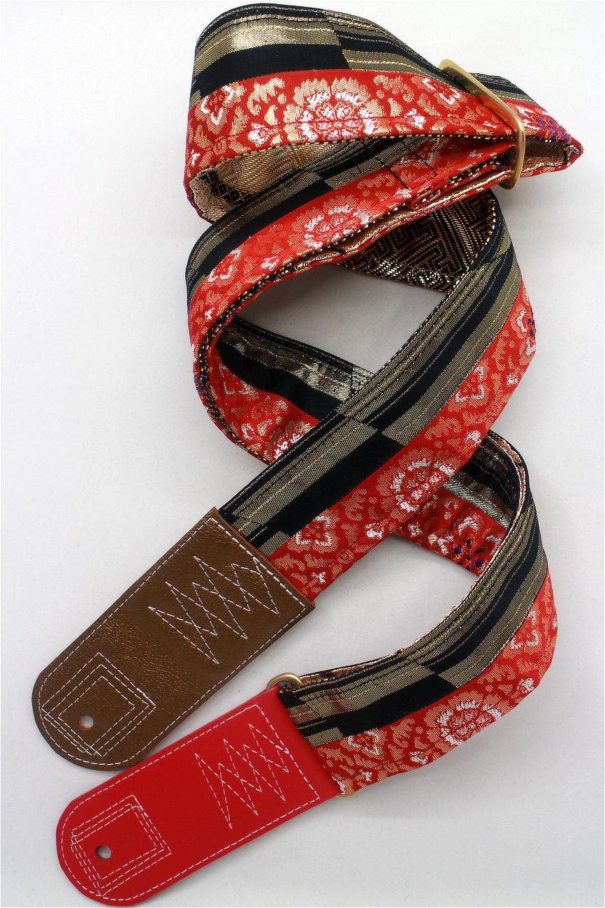 Unique and beautiful guitar strap [SC724502] - hand made in Japan from recycled silk woven kimono obi, leather and brass