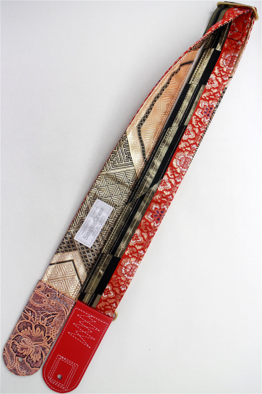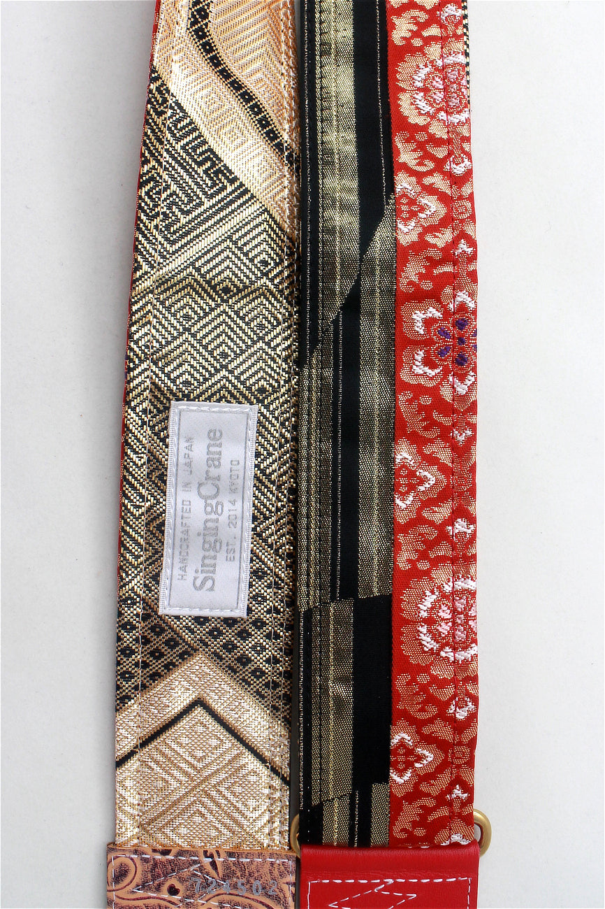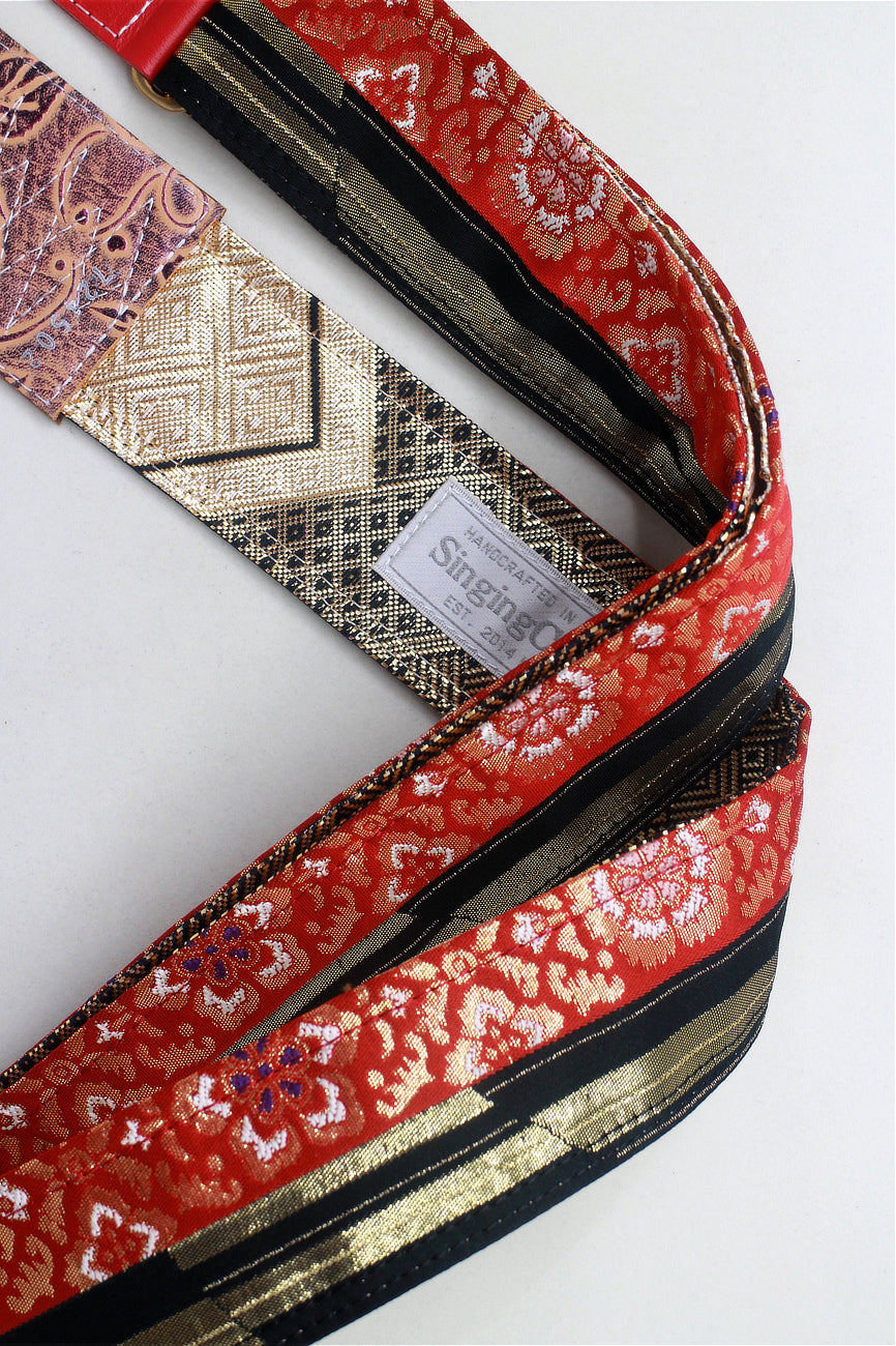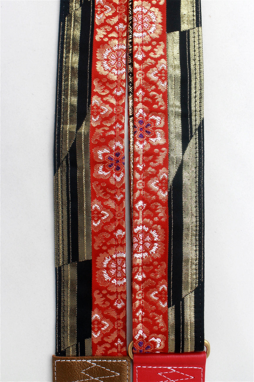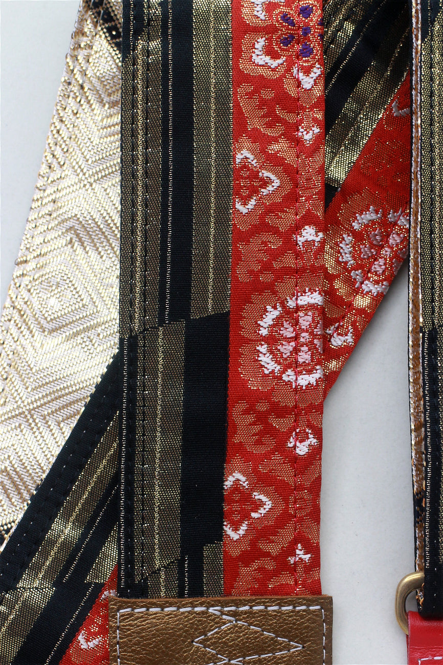 Unique and beautiful guitar strap [SC724502] - hand made in Japan from recycled silk woven kimono obi, leather and brass