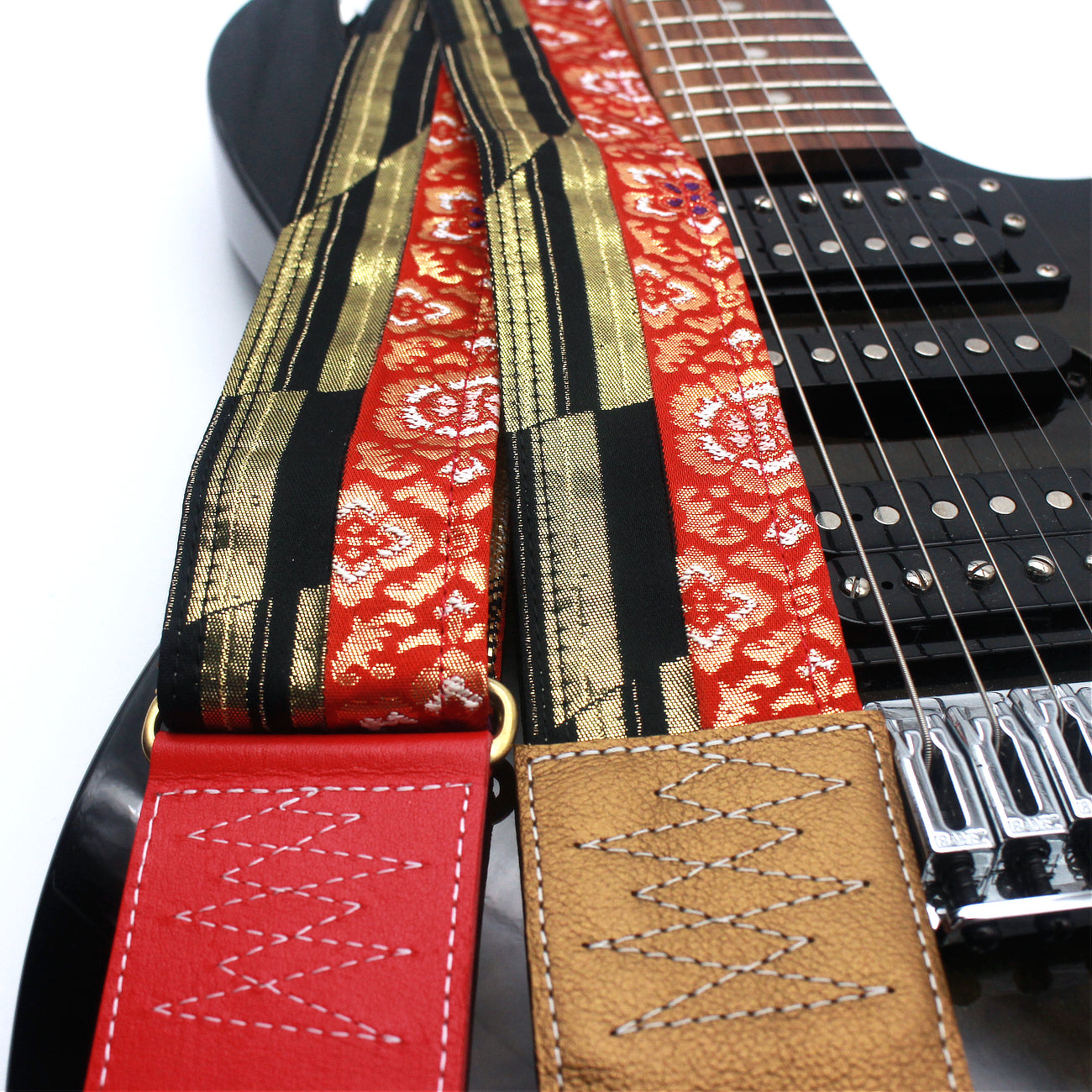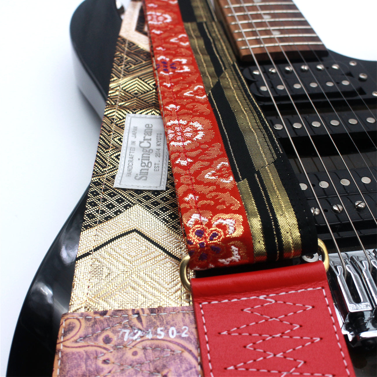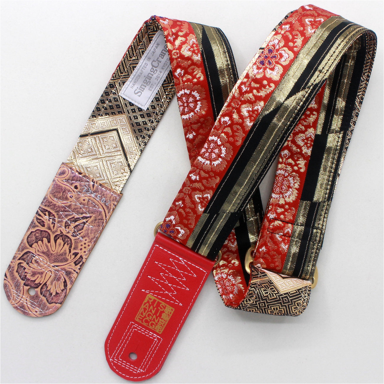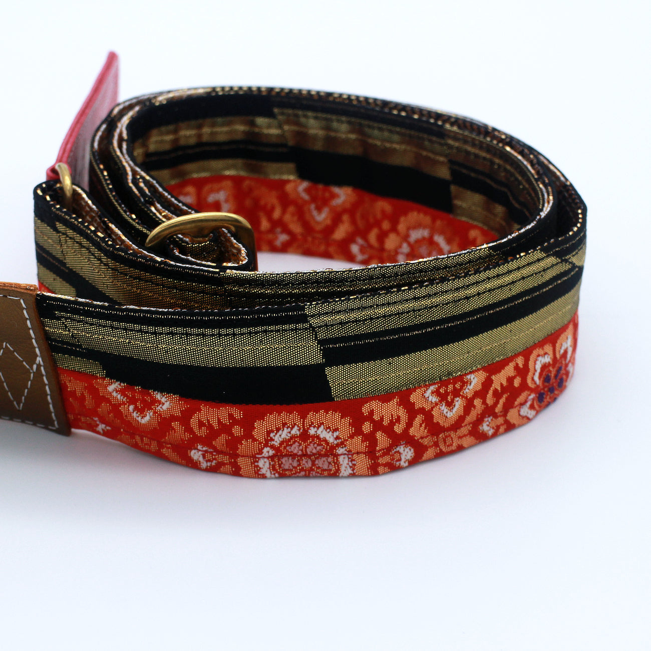 Unique and beautiful guitar strap [SC724502] - hand made in Japan from recycled silk woven kimono obi, leather and brass