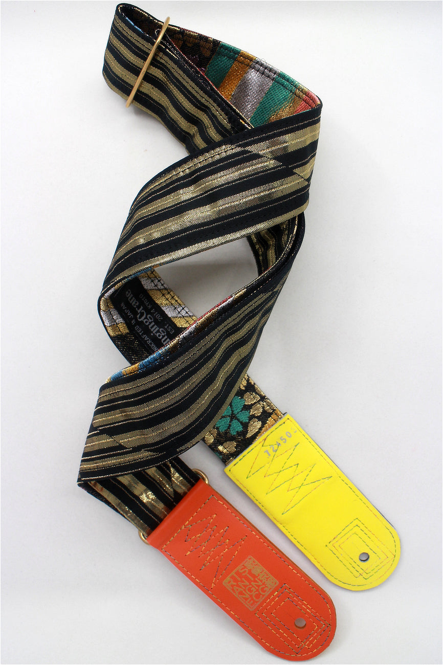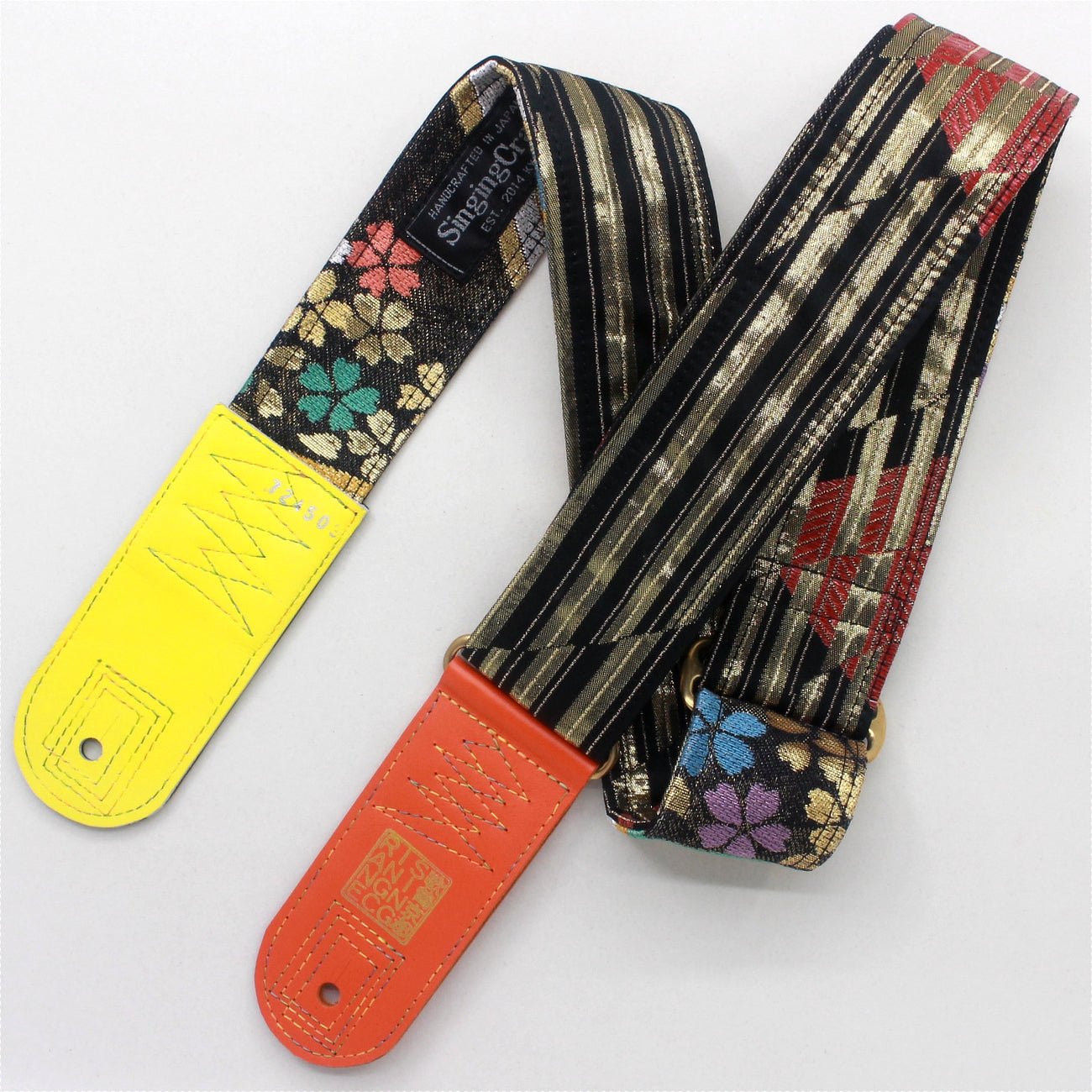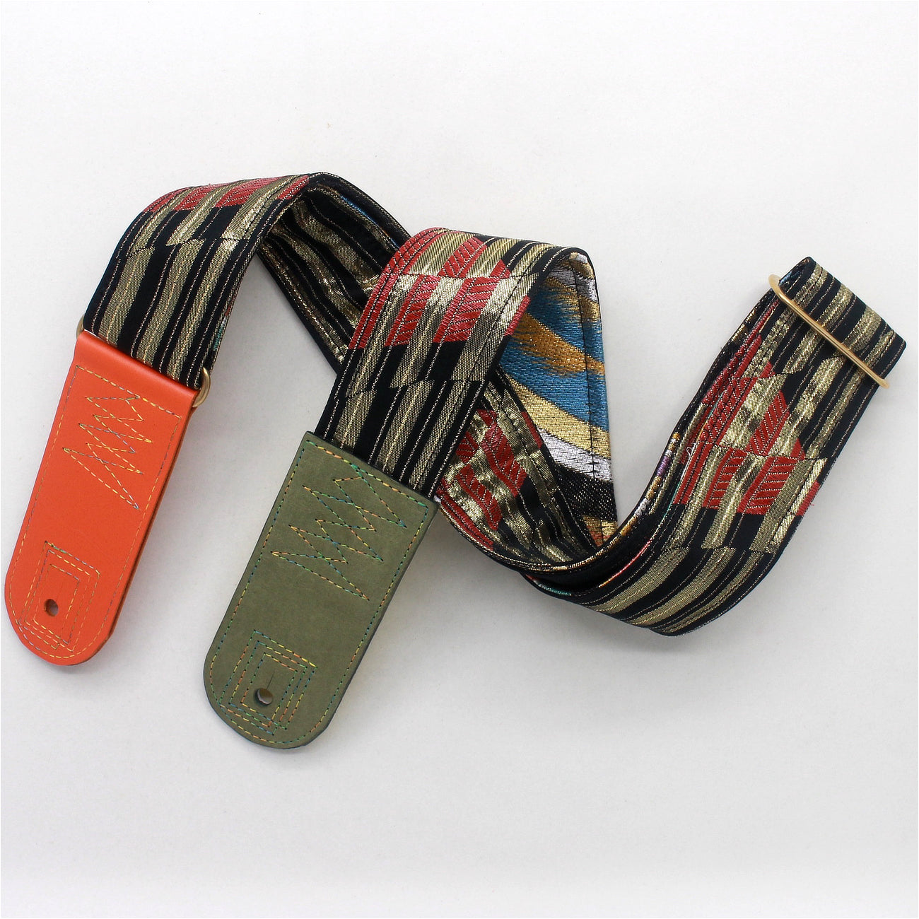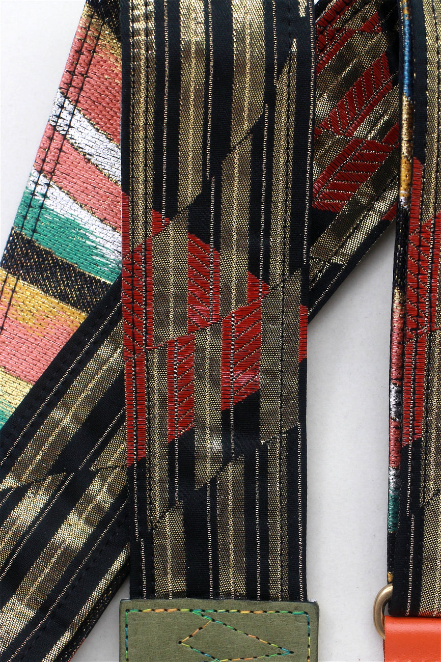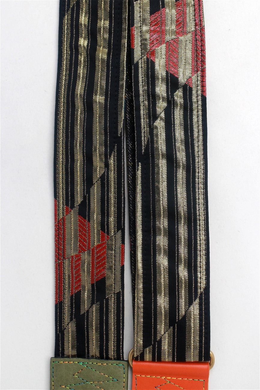 Unique and beautiful guitar strap [SC724503] - hand made in Japan from recycled silk woven kimono obi, leather and brass