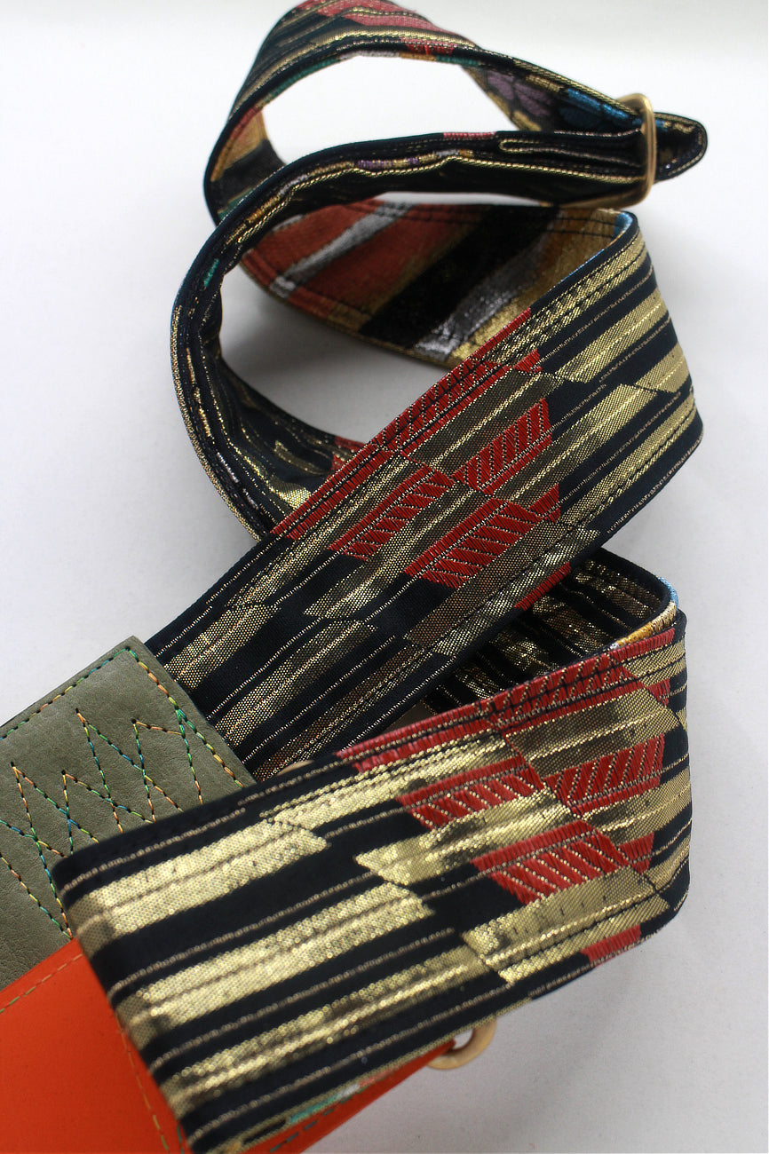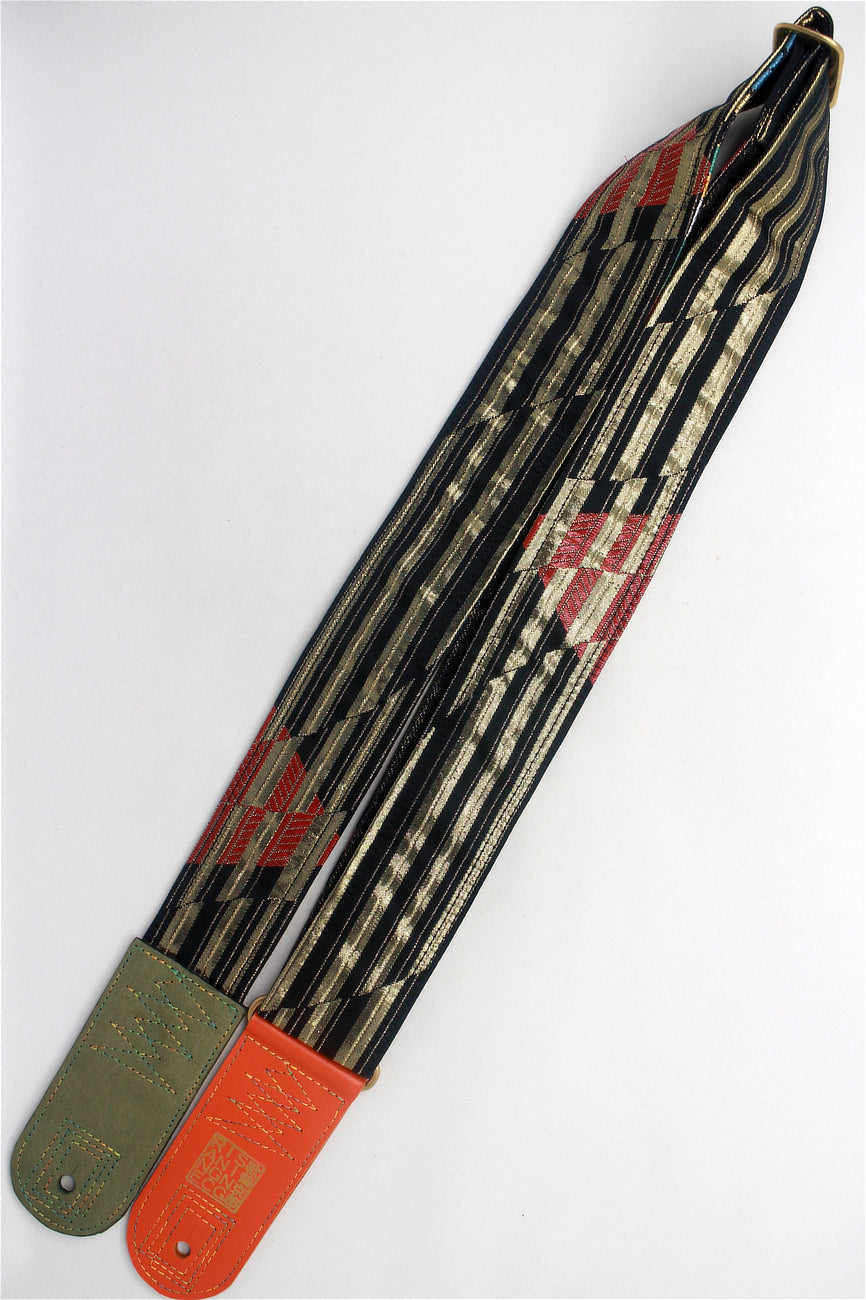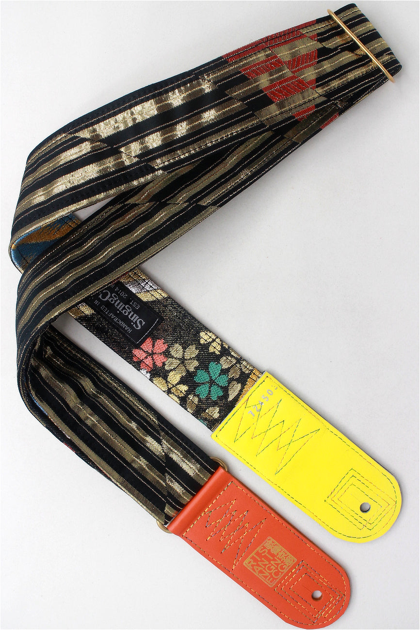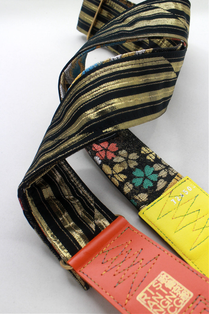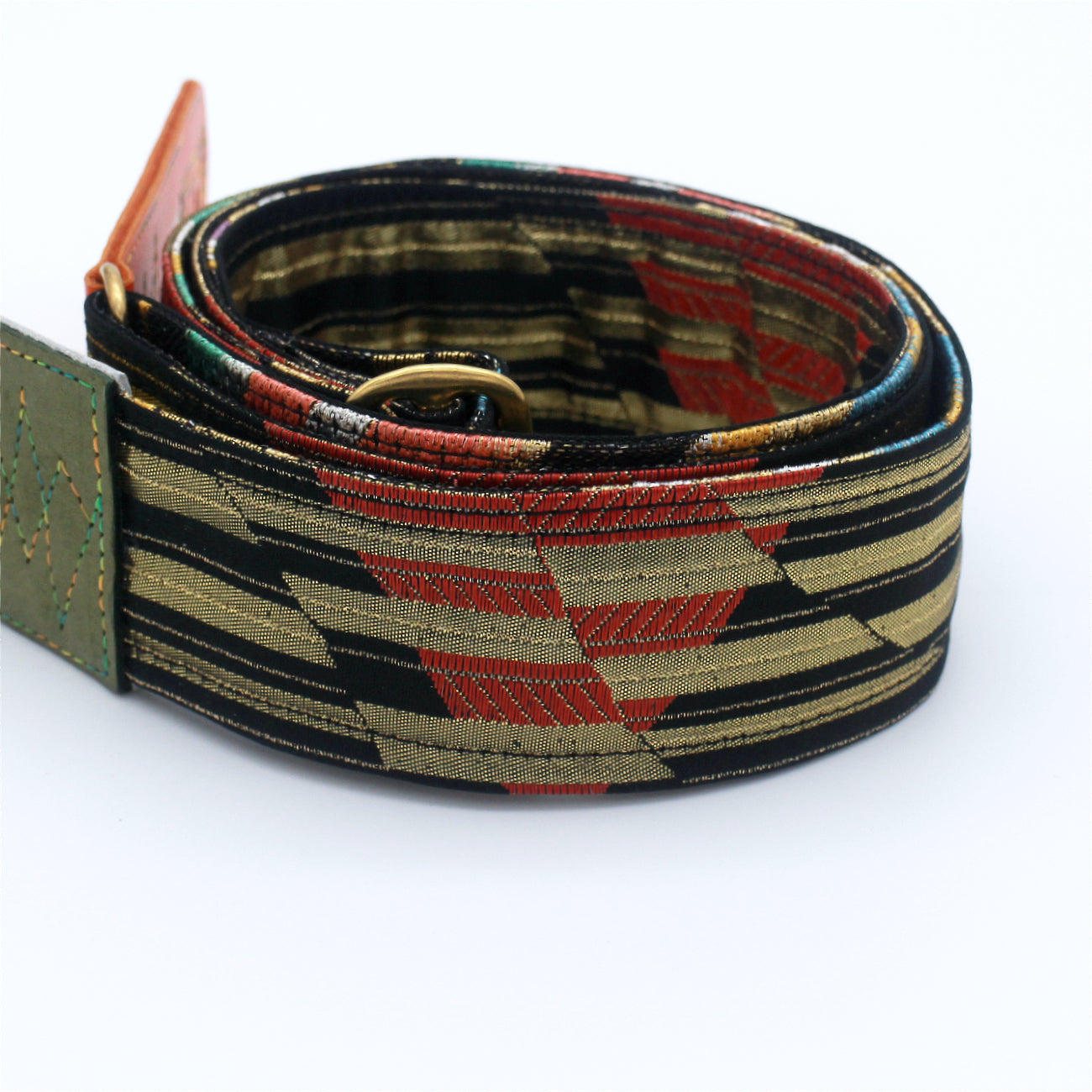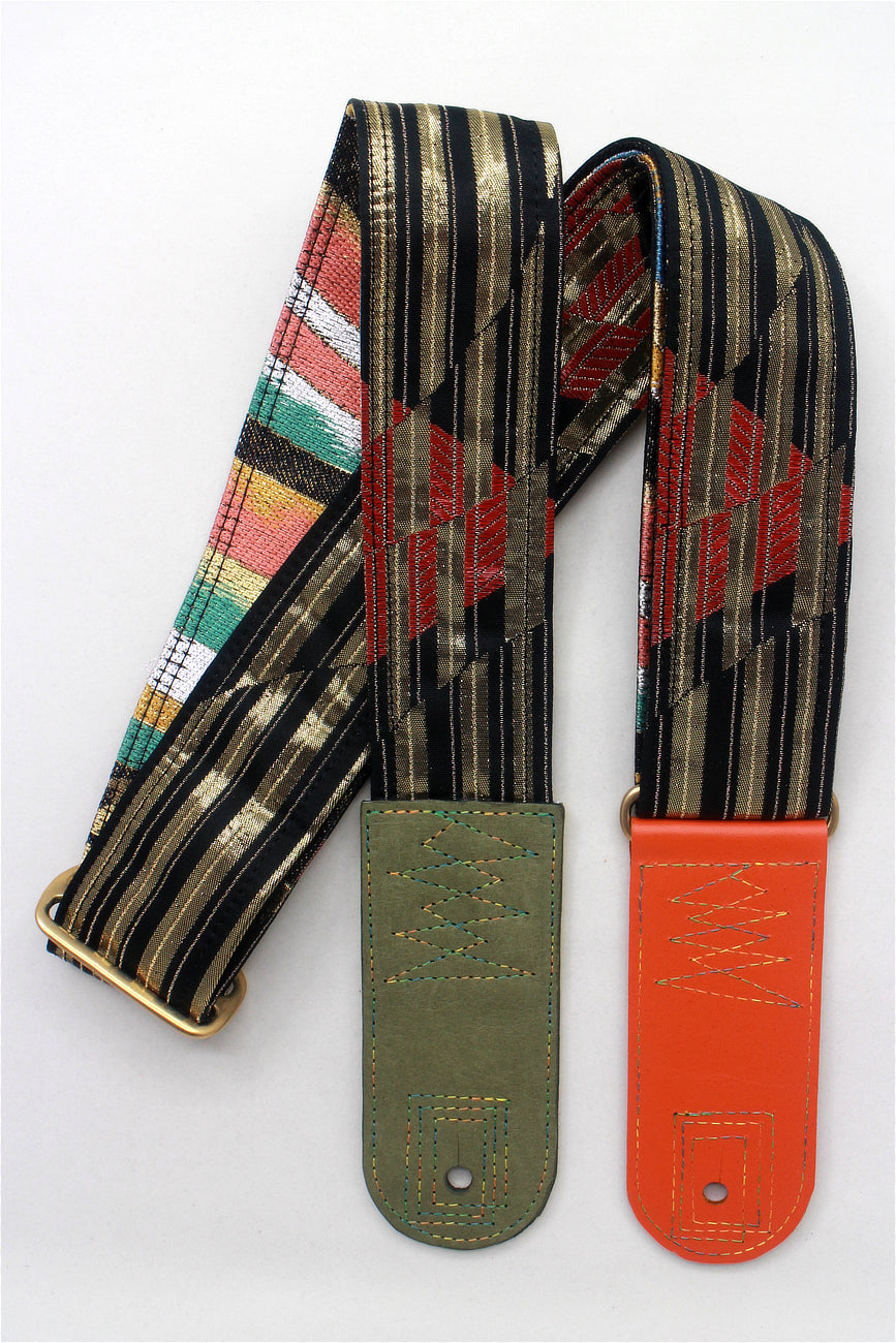 Unique and beautiful guitar strap [SC724503] - hand made in Japan from recycled silk woven kimono obi, leather and brass