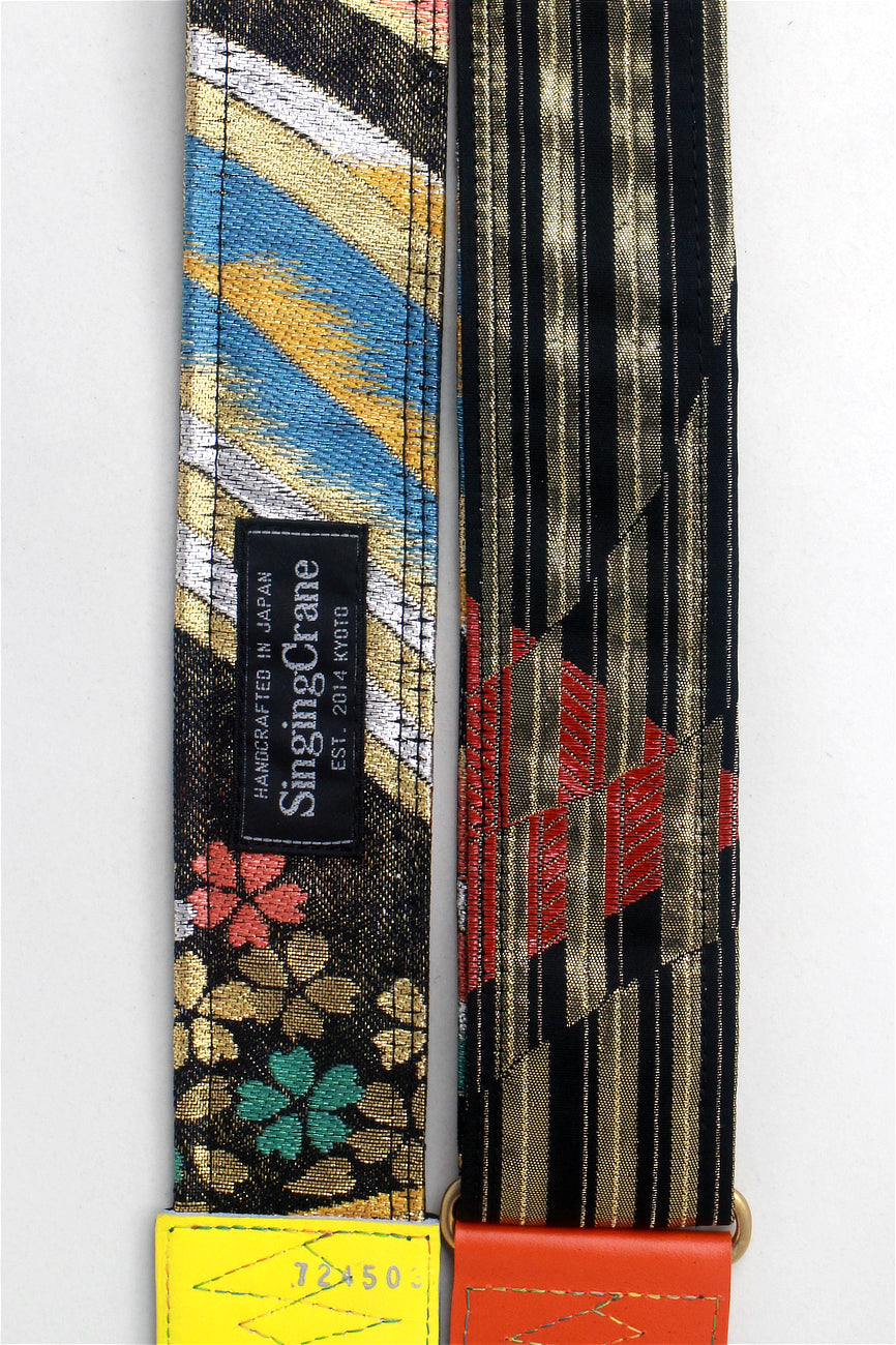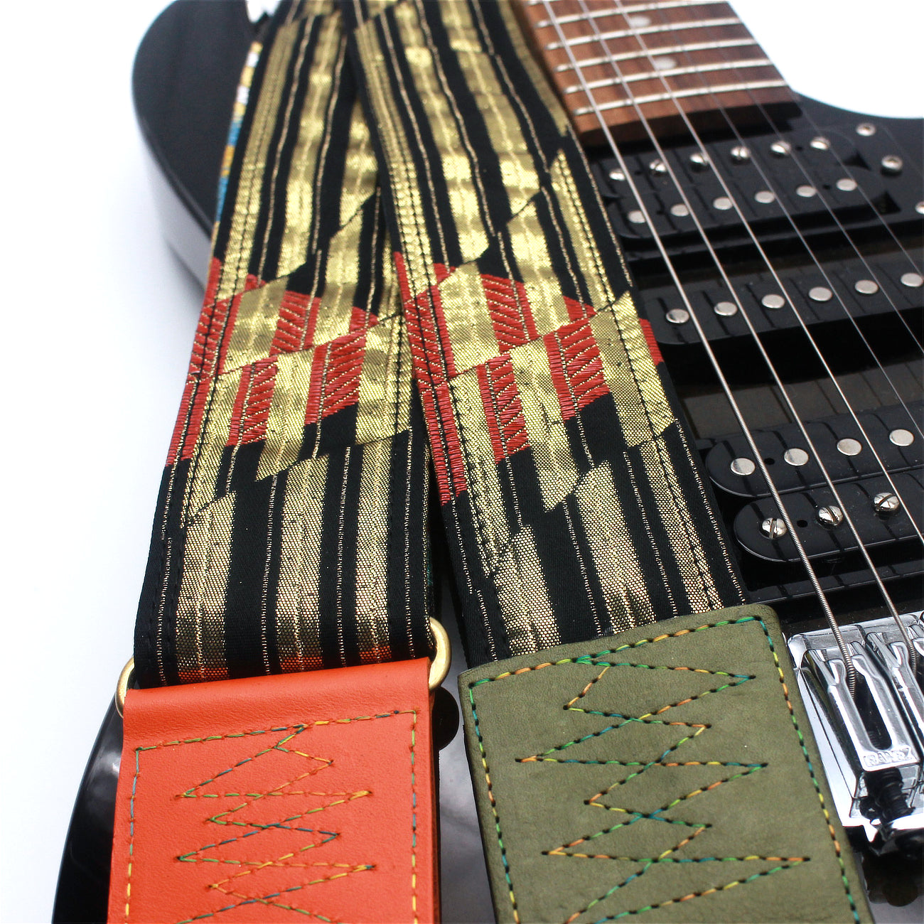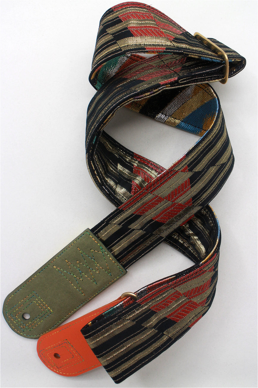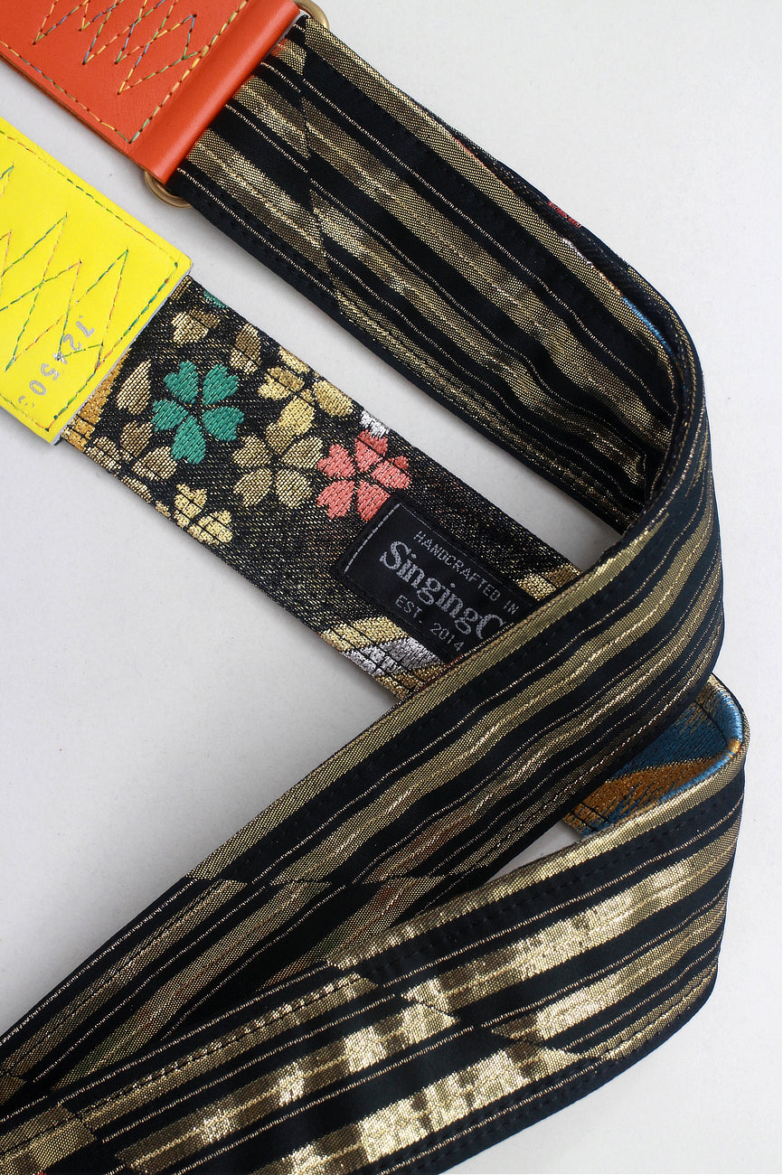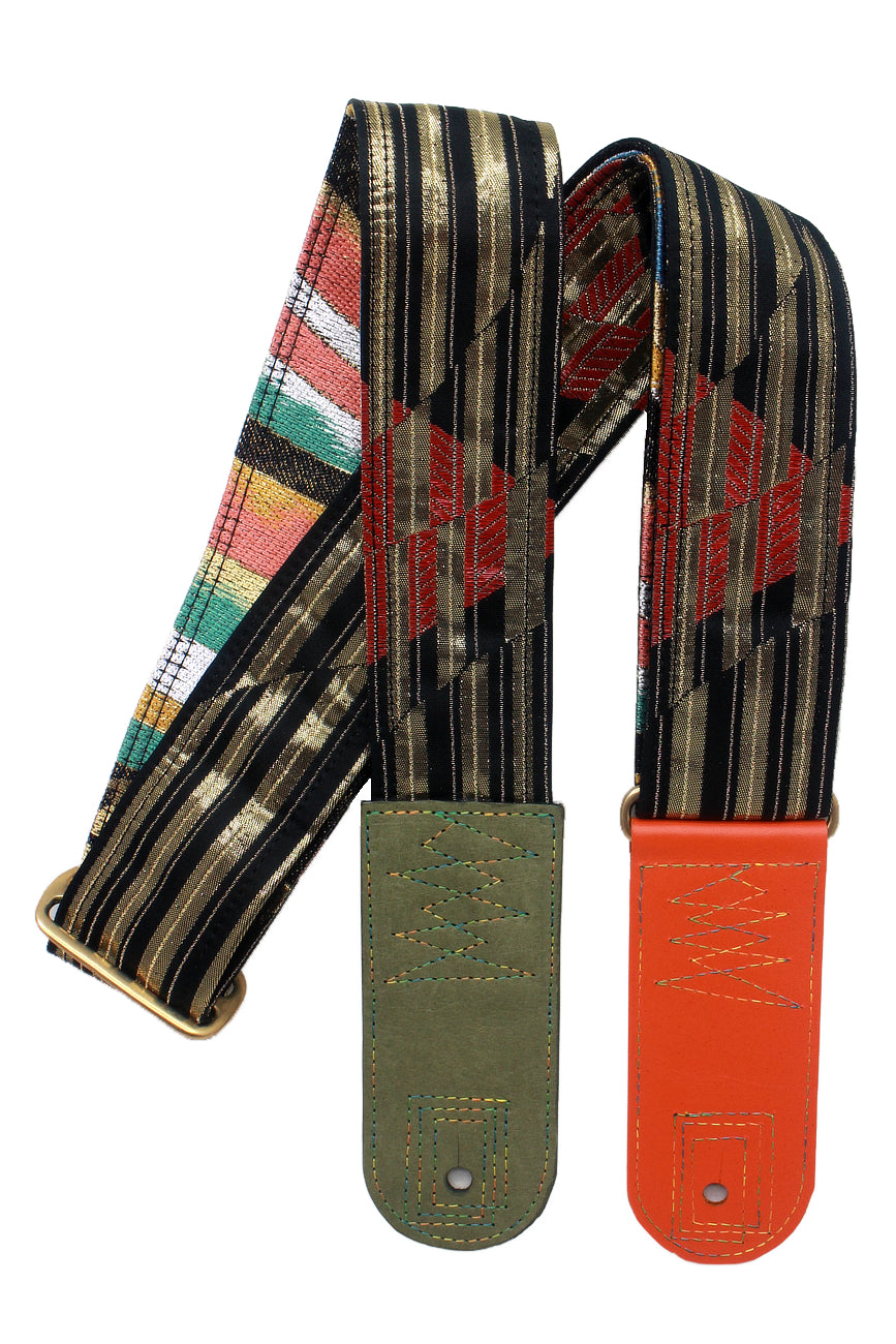 Unique and beautiful guitar strap [SC724503] - hand made in Japan from recycled silk woven kimono obi, leather and brass
