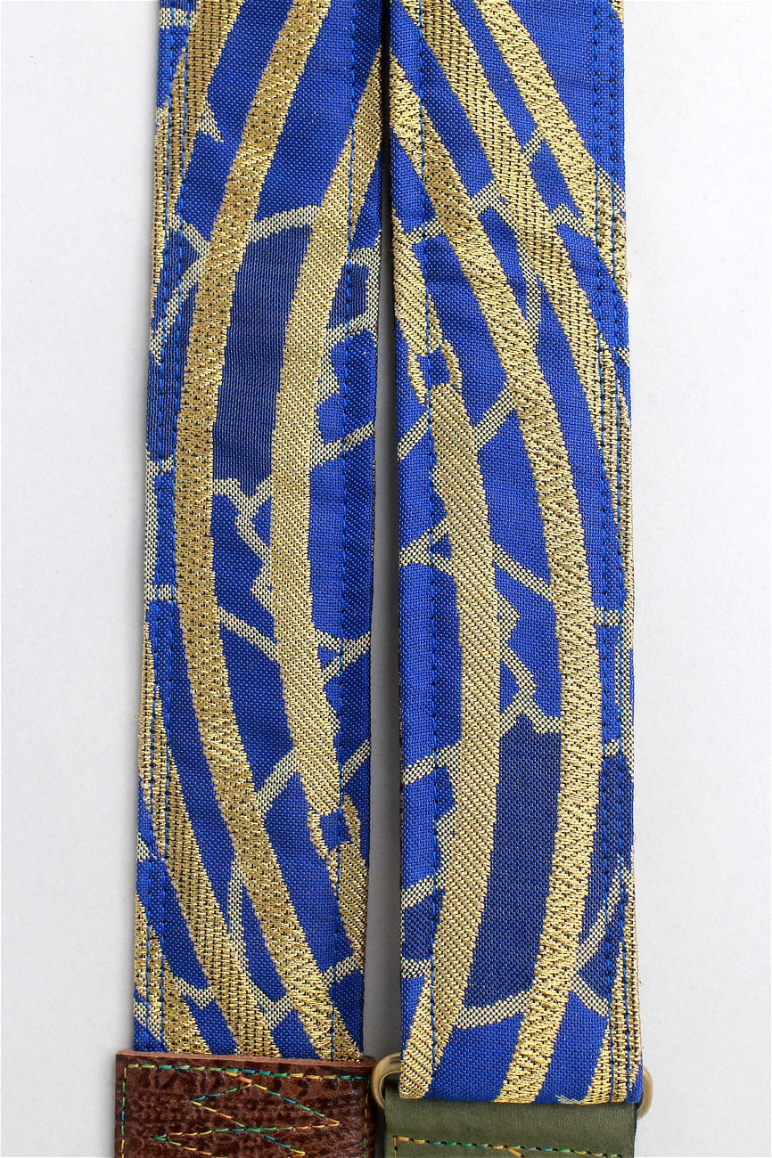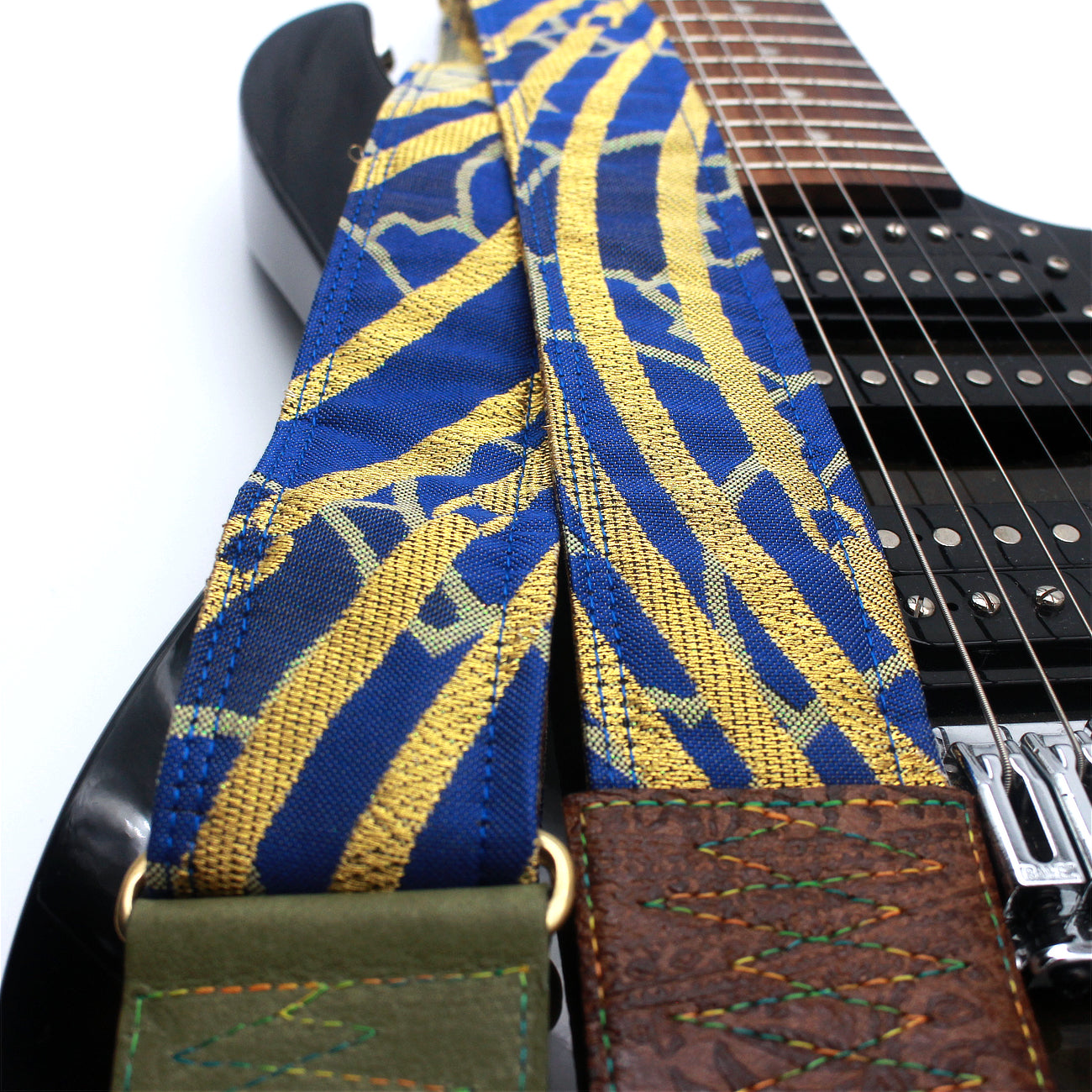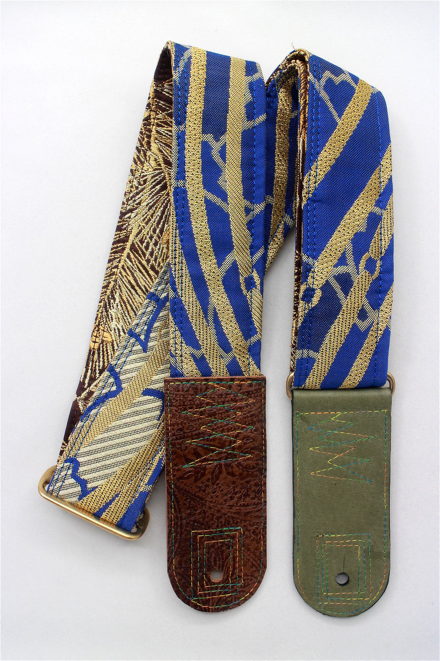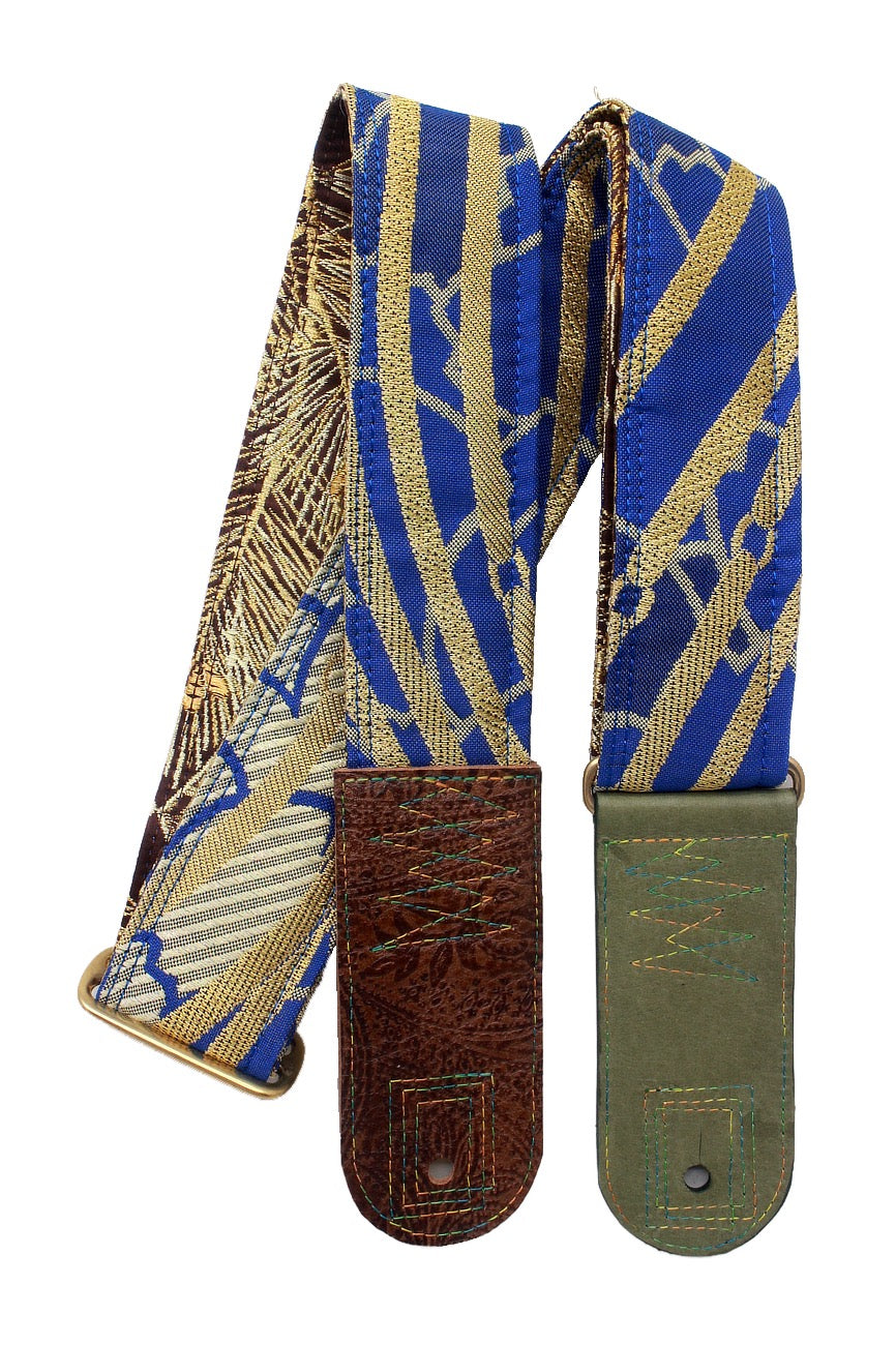 Unique and beautiful guitar strap [SC724523] - hand made in Japan from recycled silk woven kimono obi, leather and brass