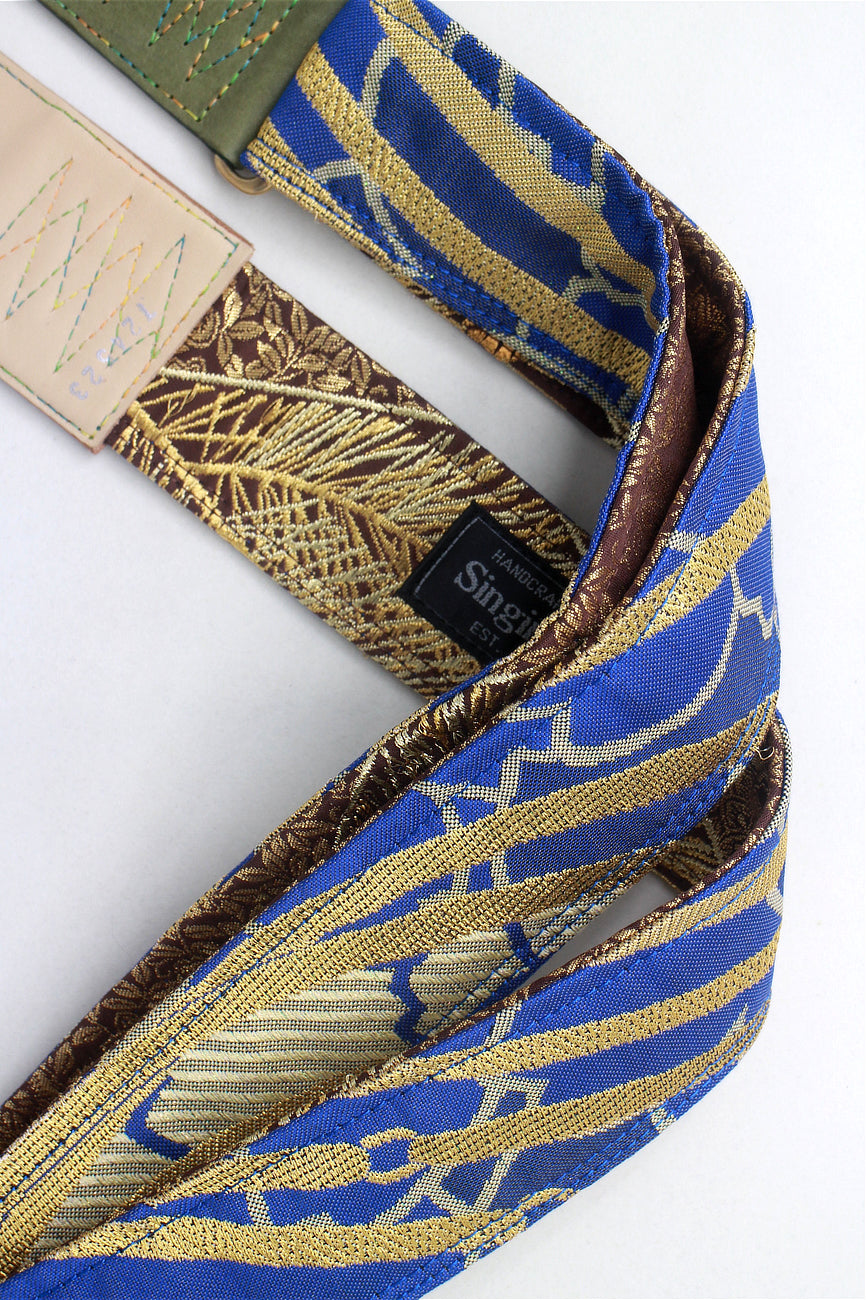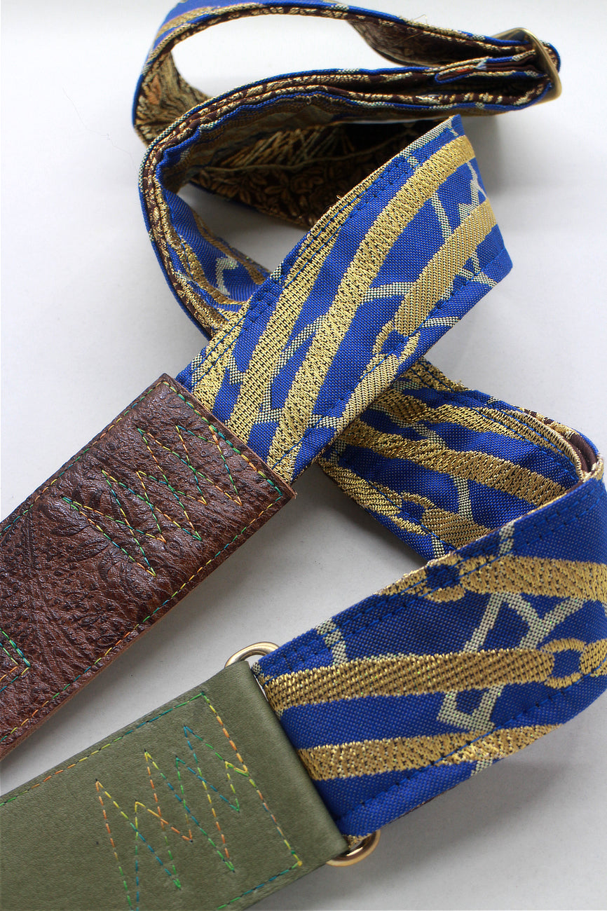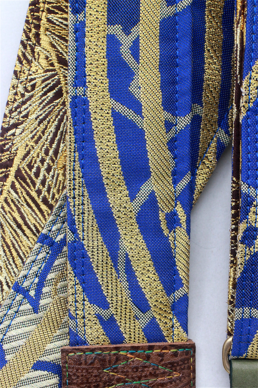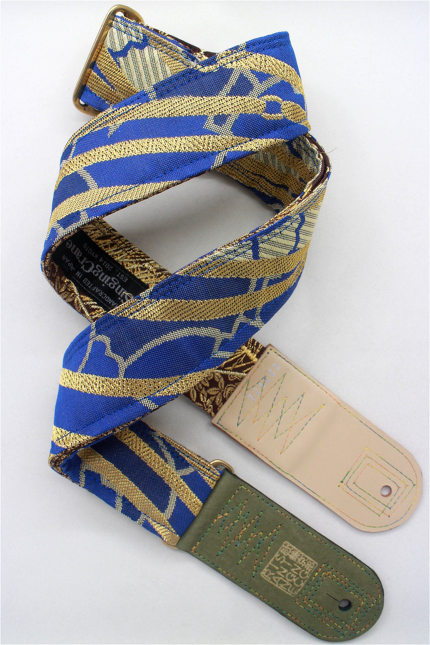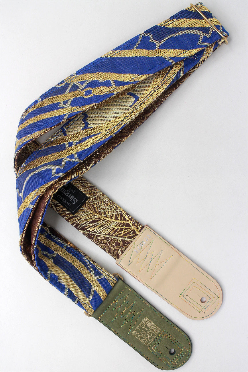 Unique and beautiful guitar strap [SC724523] - hand made in Japan from recycled silk woven kimono obi, leather and brass