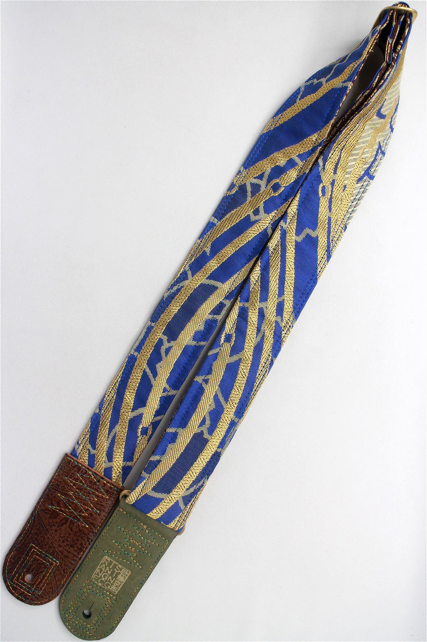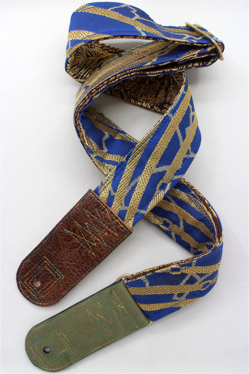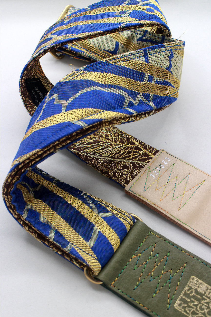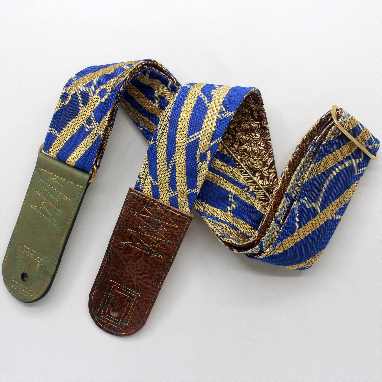 Unique and beautiful guitar strap [SC724523] - hand made in Japan from recycled silk woven kimono obi, leather and brass