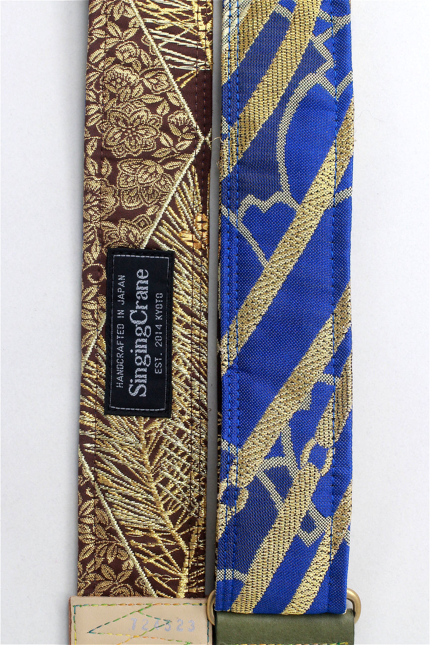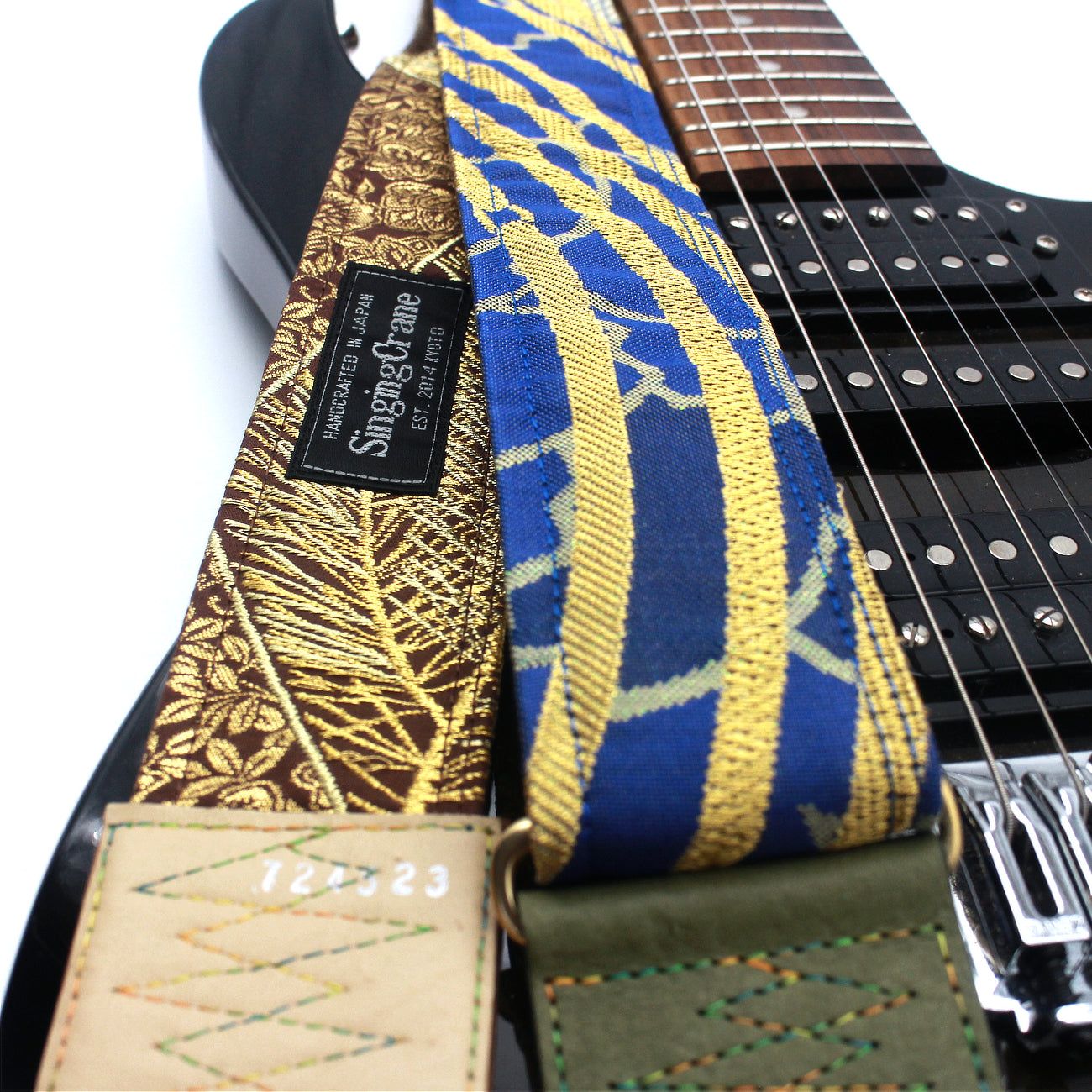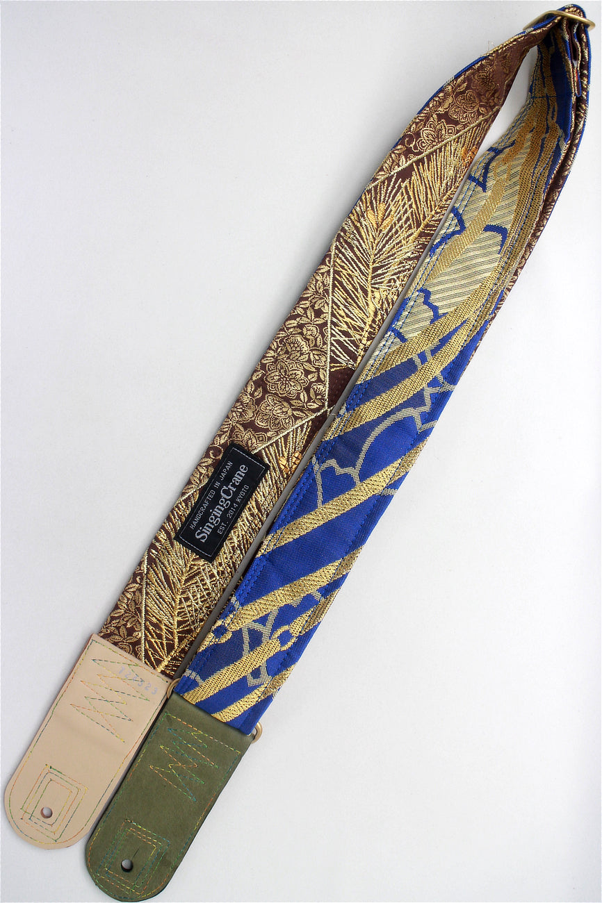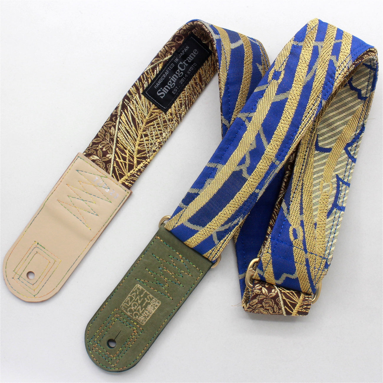 Unique and beautiful guitar strap [SC724523] - hand made in Japan from recycled silk woven kimono obi, leather and brass