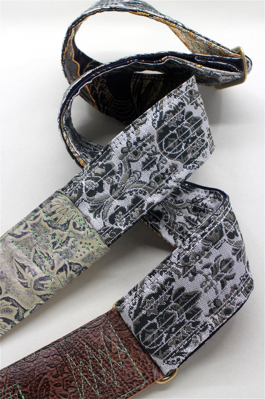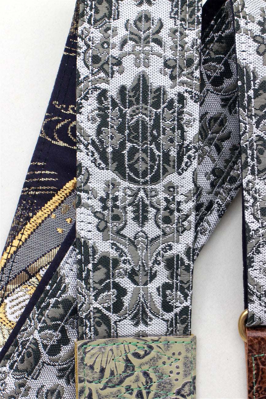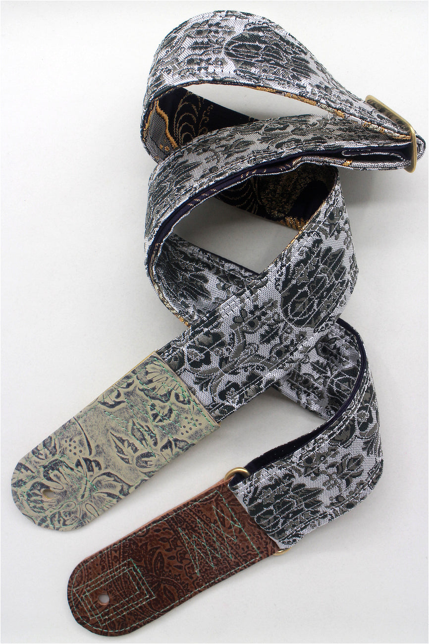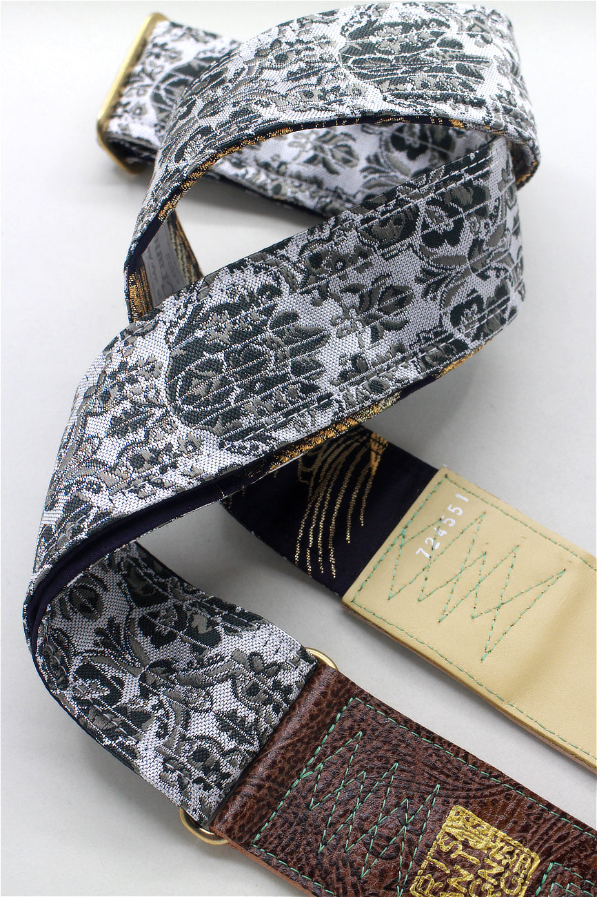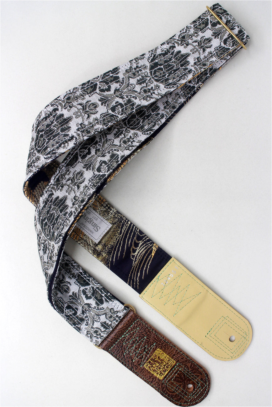 Unique and beautiful guitar strap [SC724551] - hand made in Japan from recycled silk woven kimono obi, leather and brass