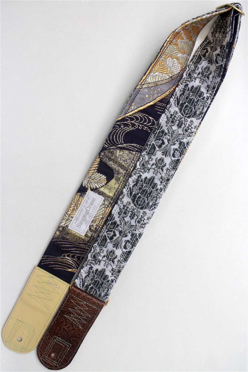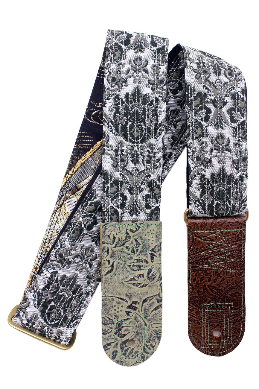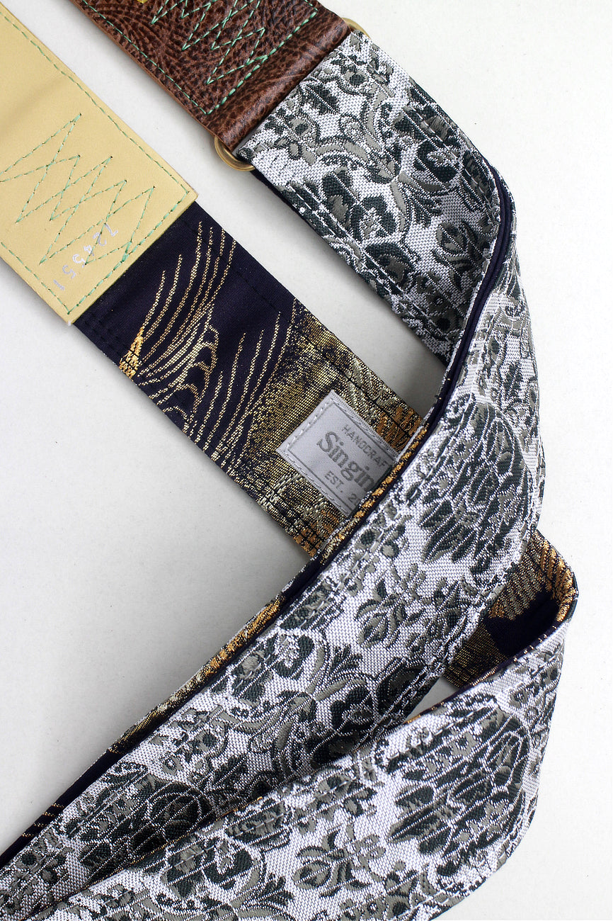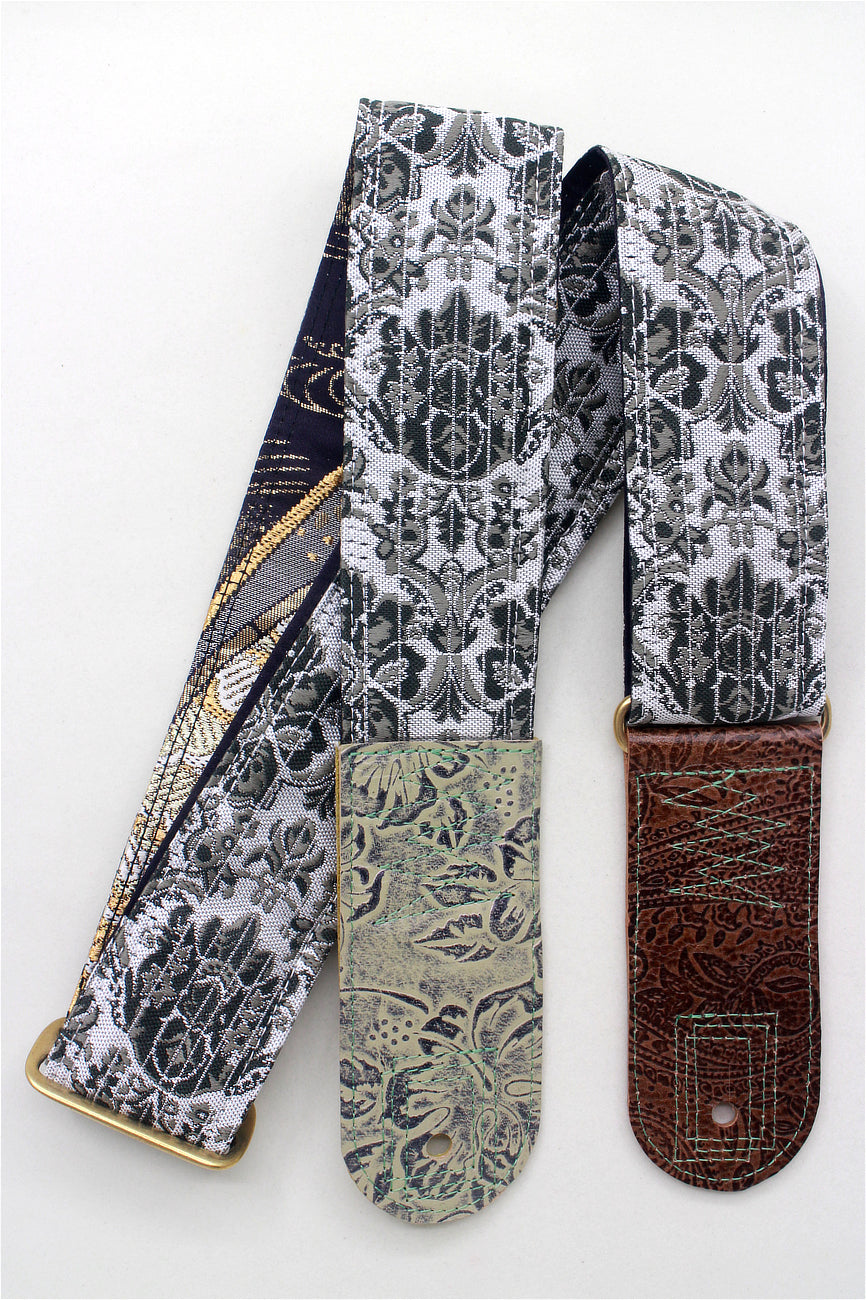 Unique and beautiful guitar strap [SC724551] - hand made in Japan from recycled silk woven kimono obi, leather and brass