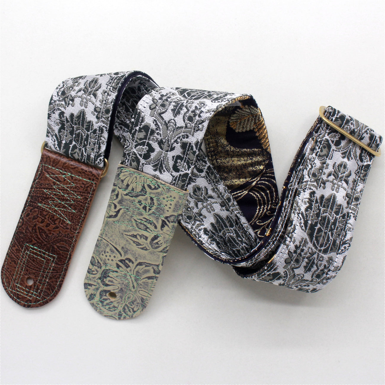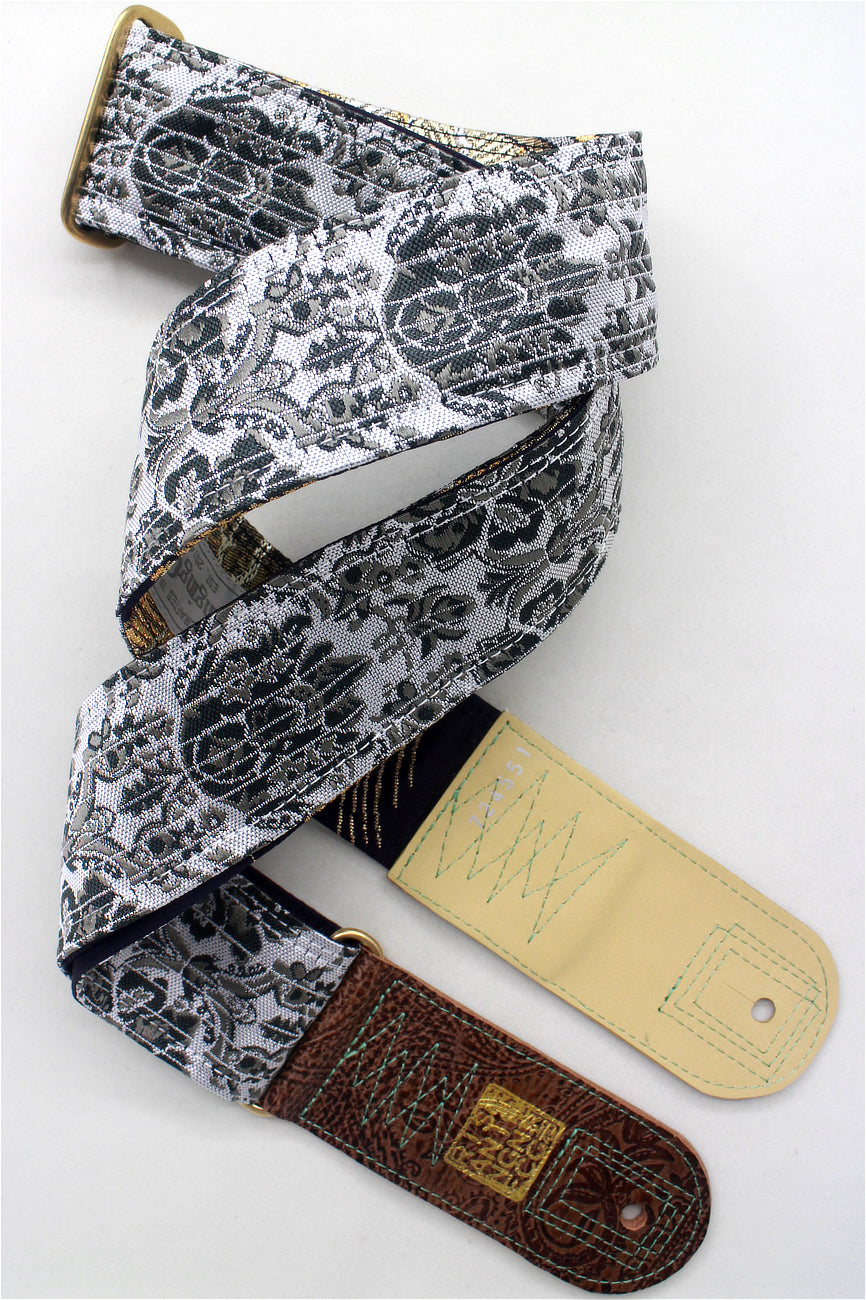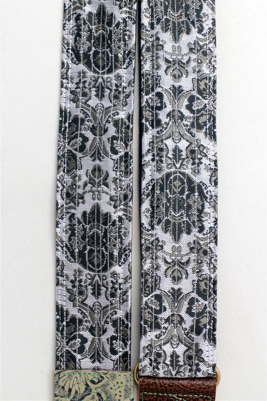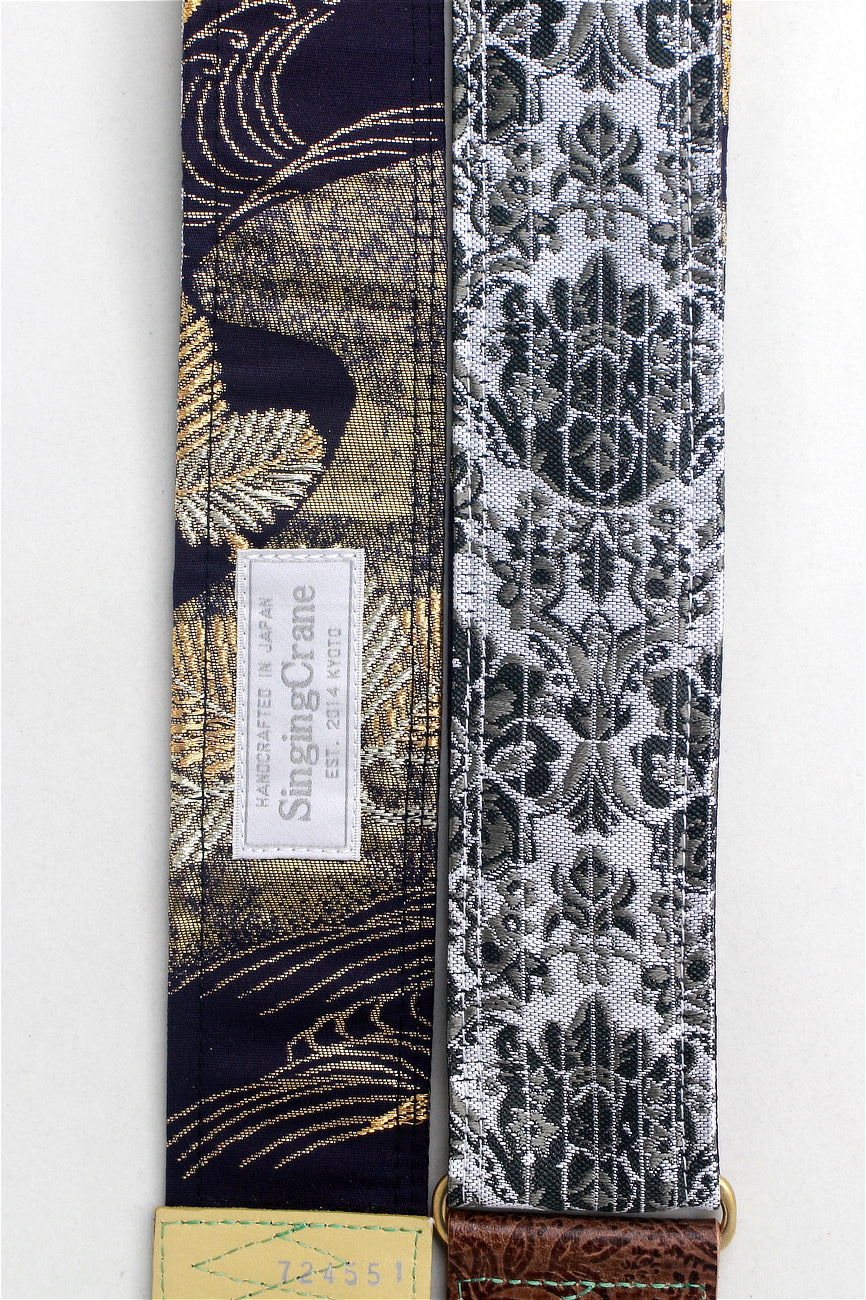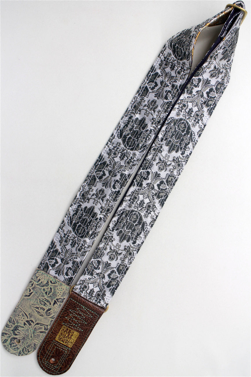 Unique and beautiful guitar strap [SC724551] - hand made in Japan from recycled silk woven kimono obi, leather and brass