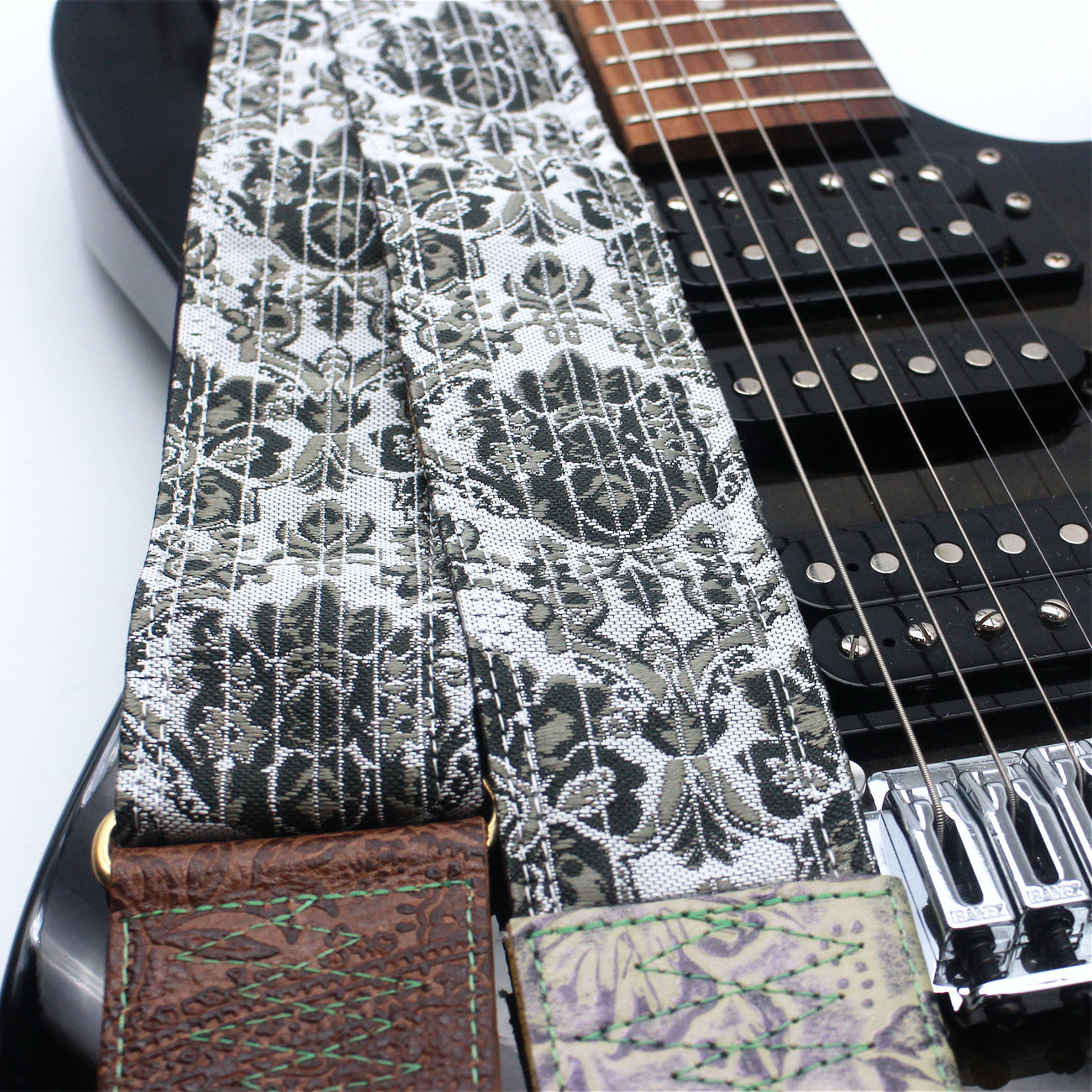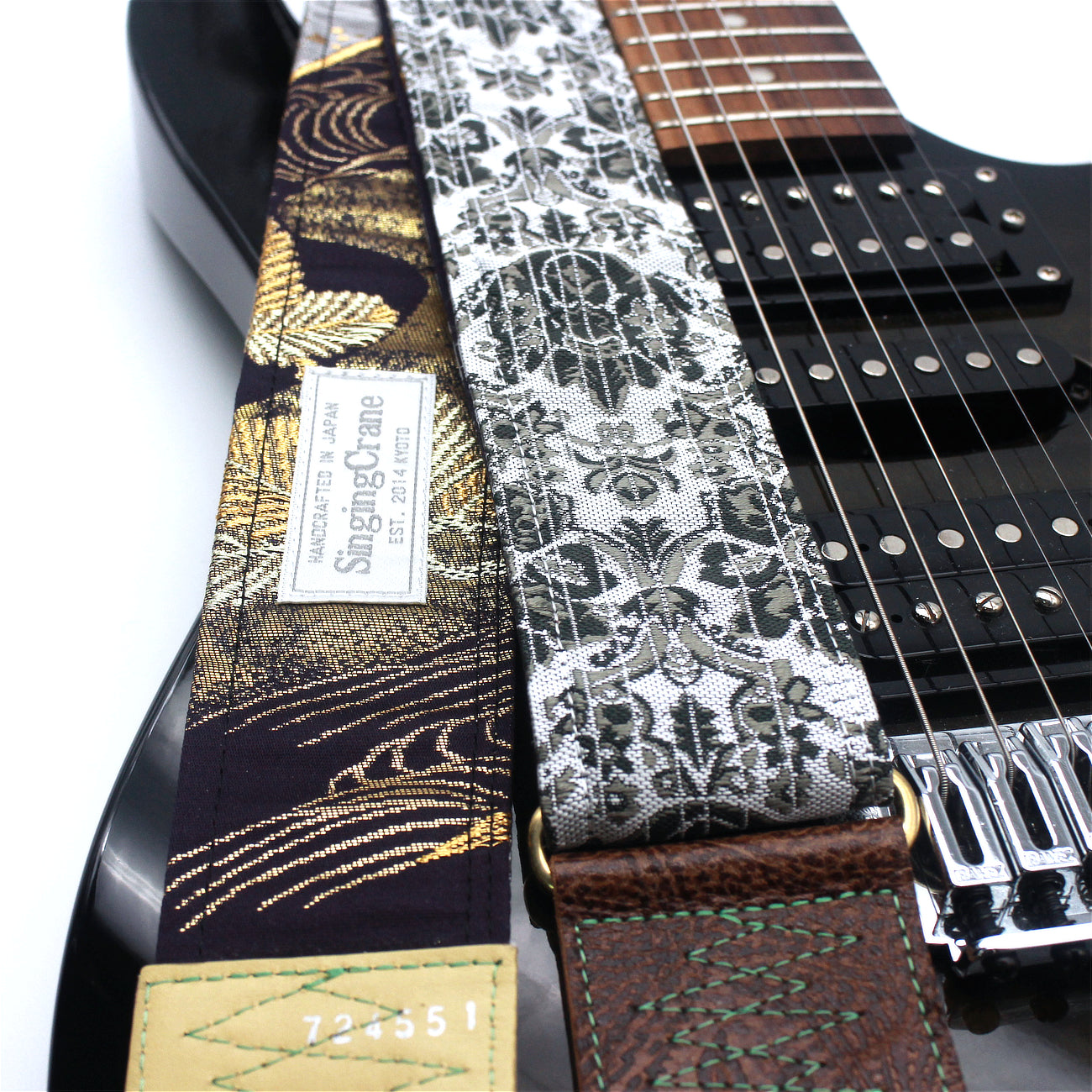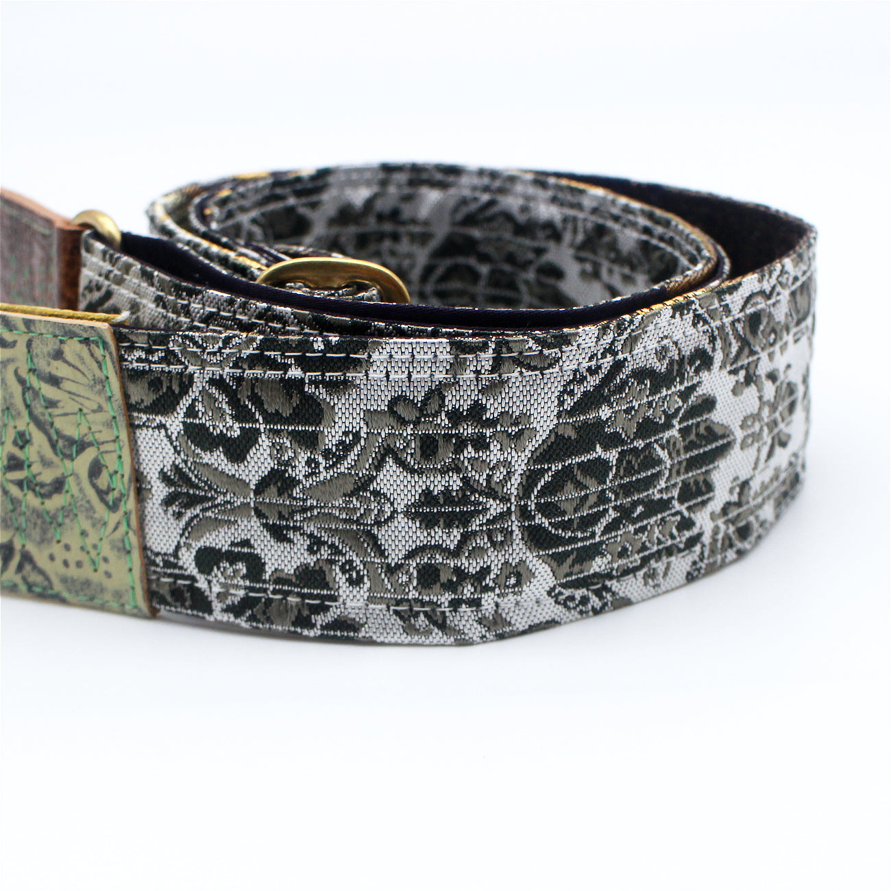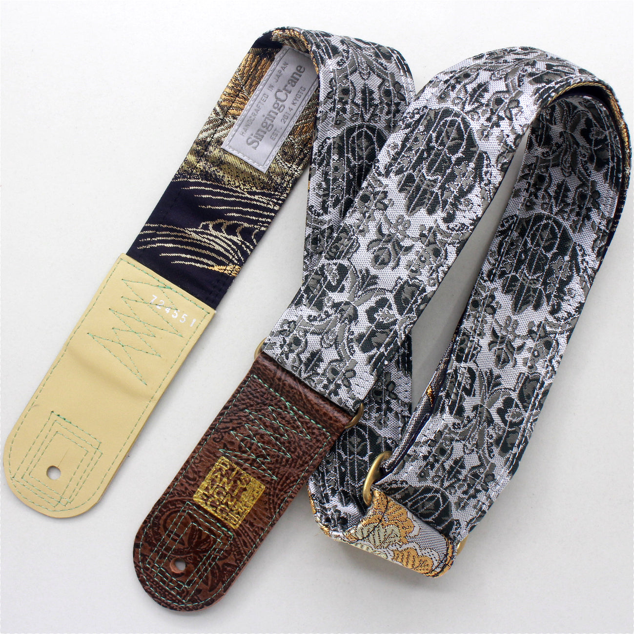 Unique and beautiful guitar strap [SC724551] - hand made in Japan from recycled silk woven kimono obi, leather and brass