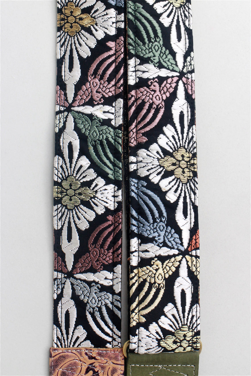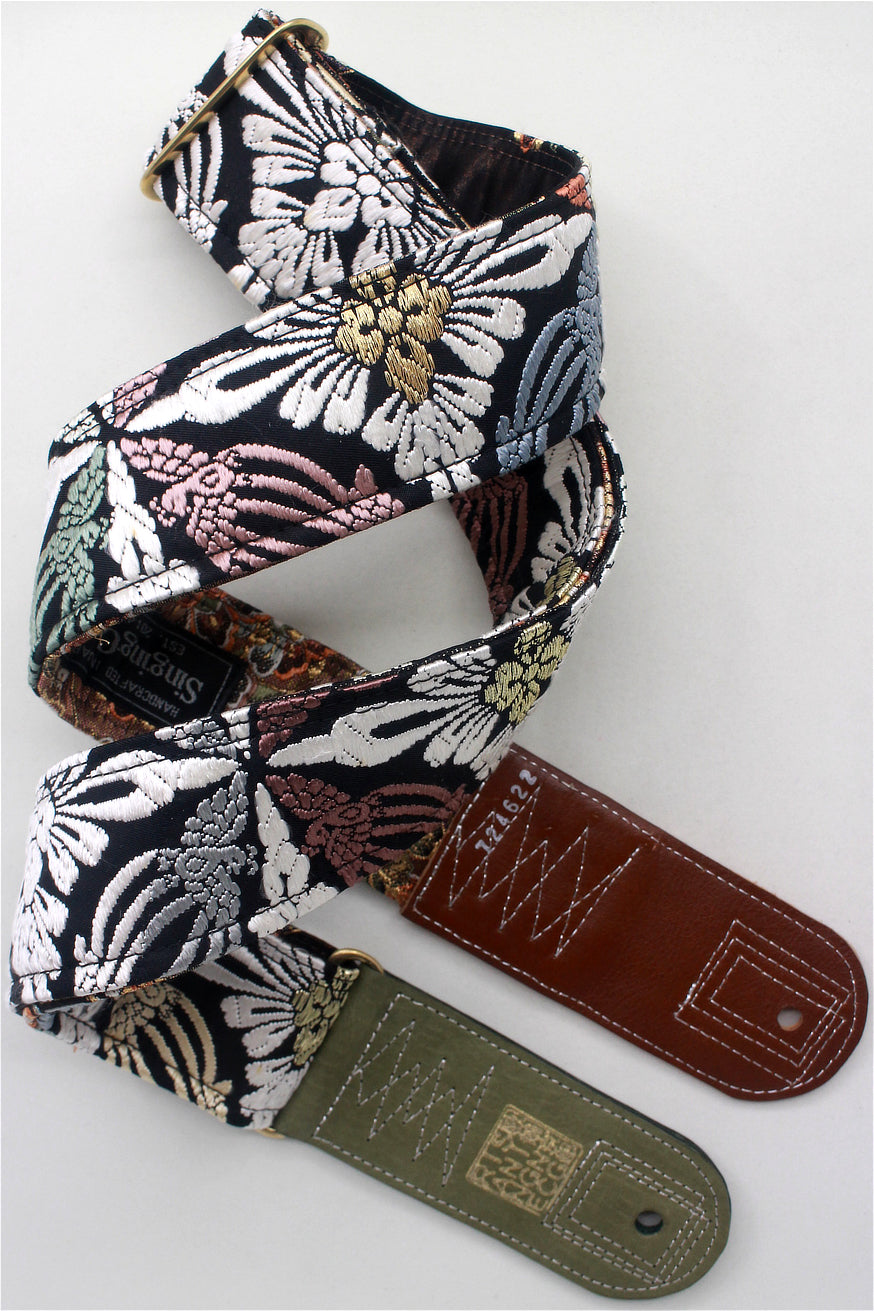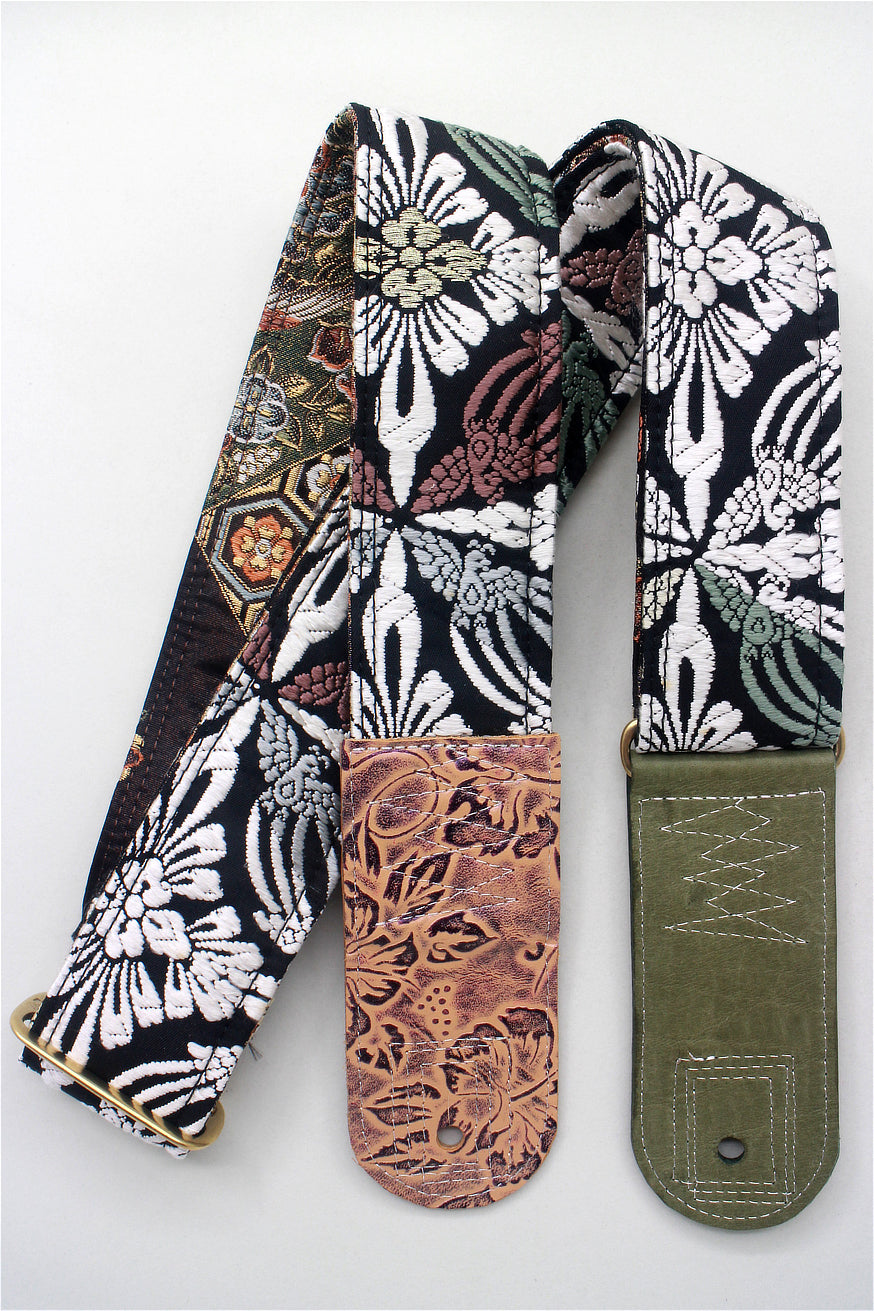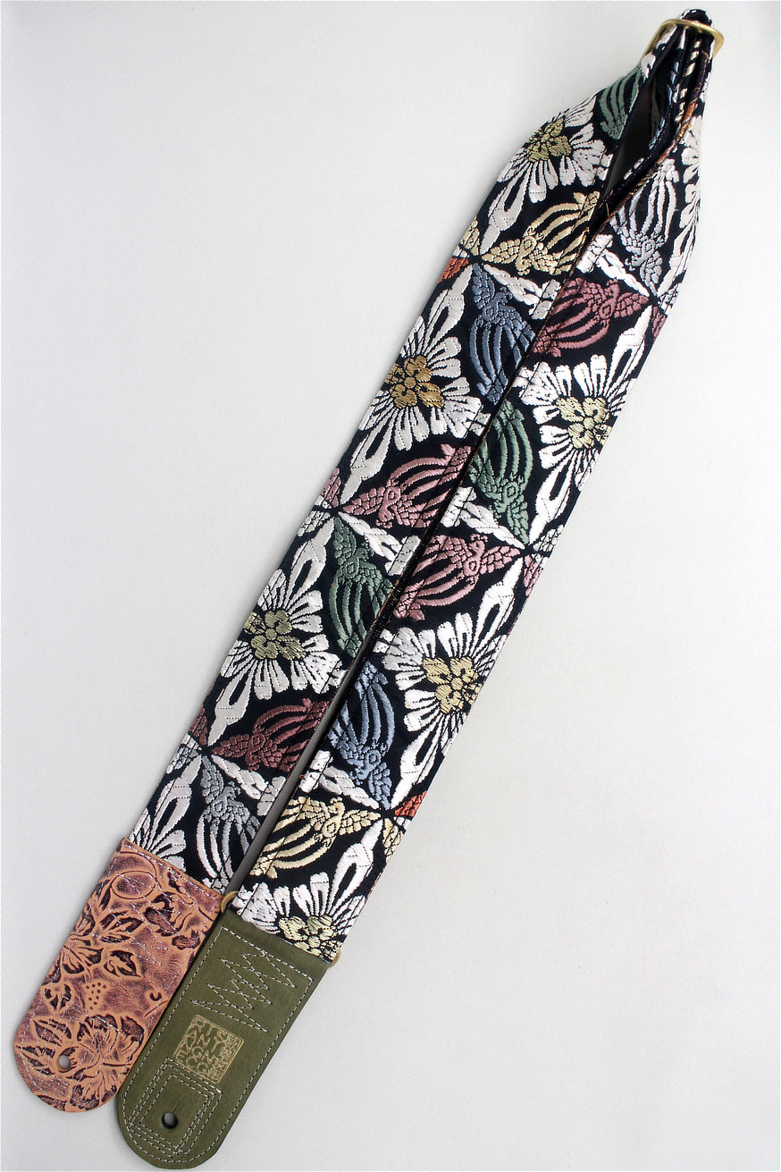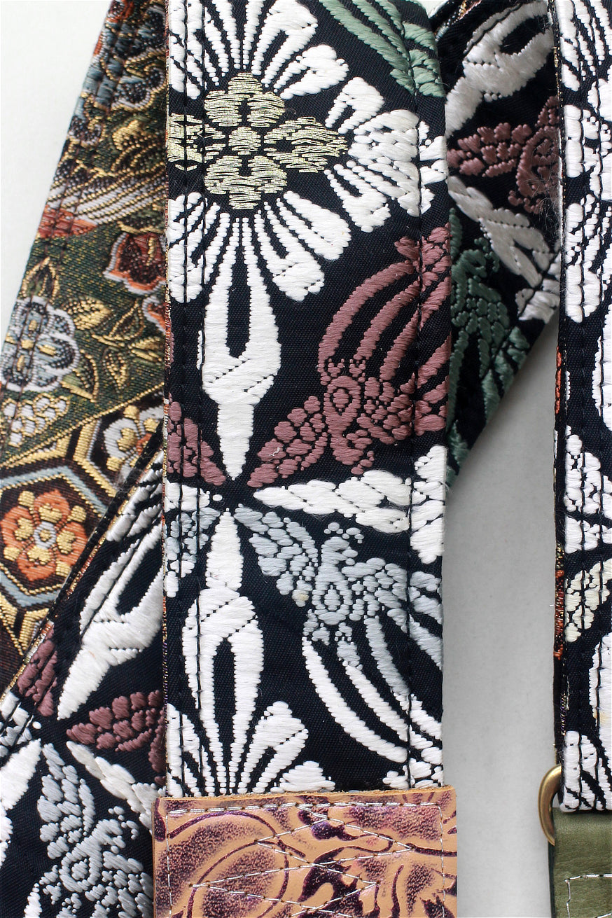 Unique and beautiful guitar strap [SC724622] - hand made in Japan from recycled silk woven kimono obi, leather and brass