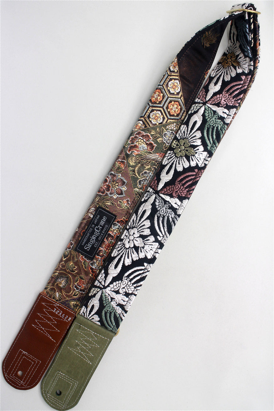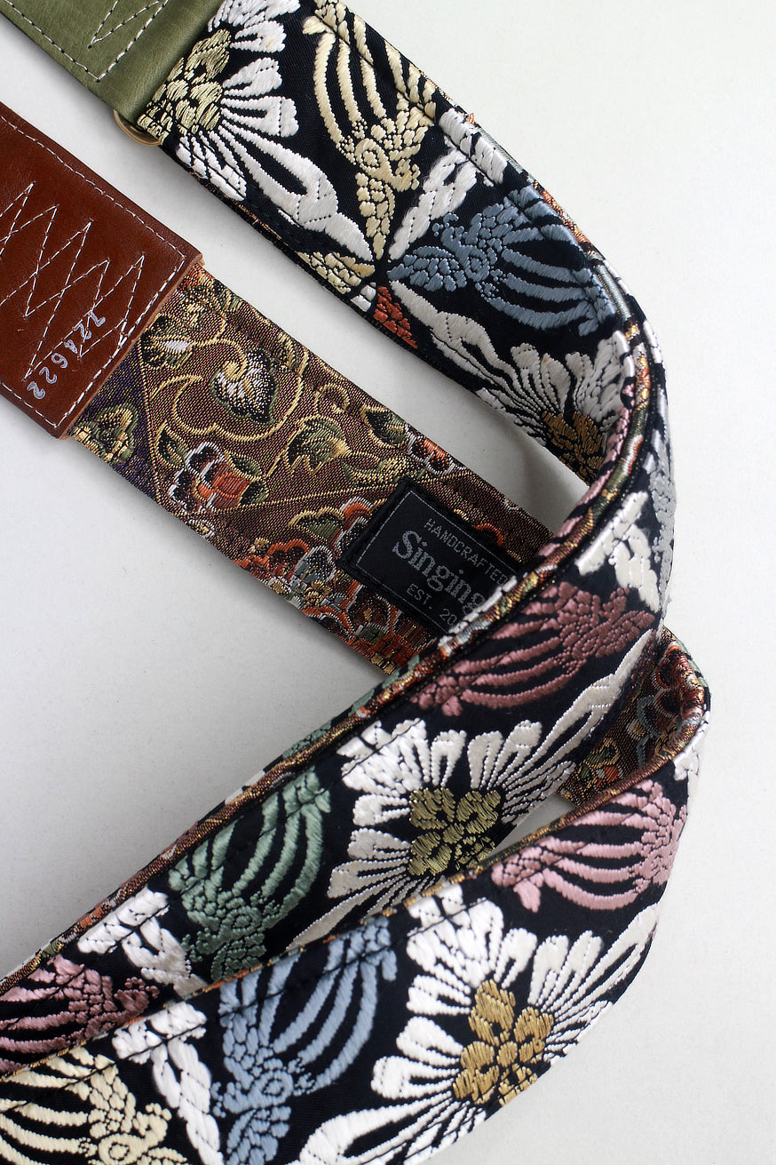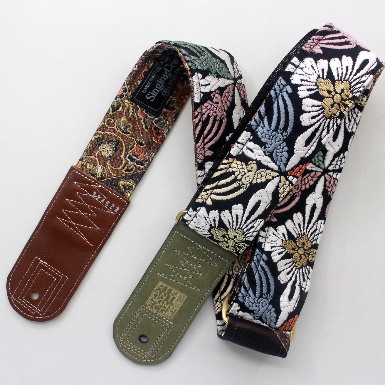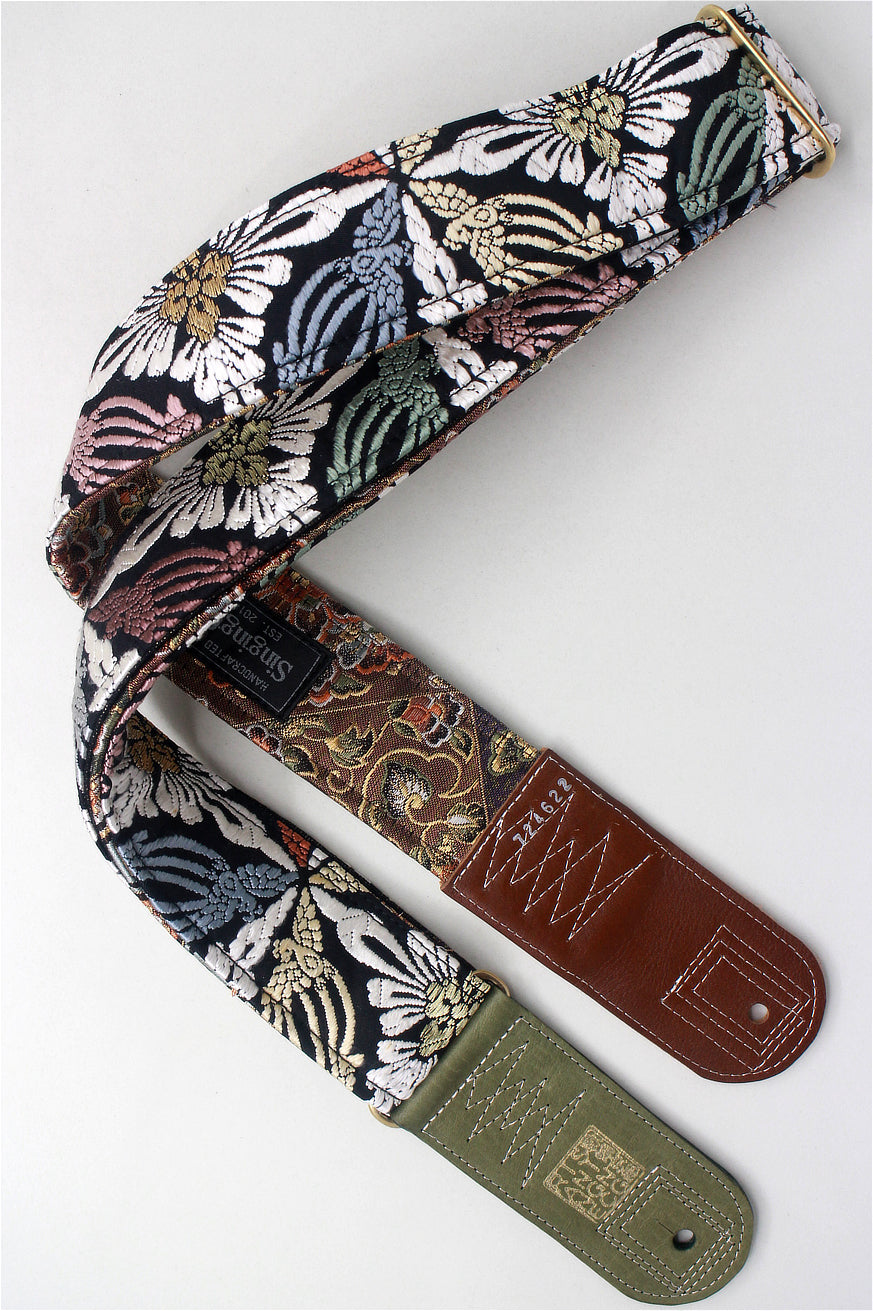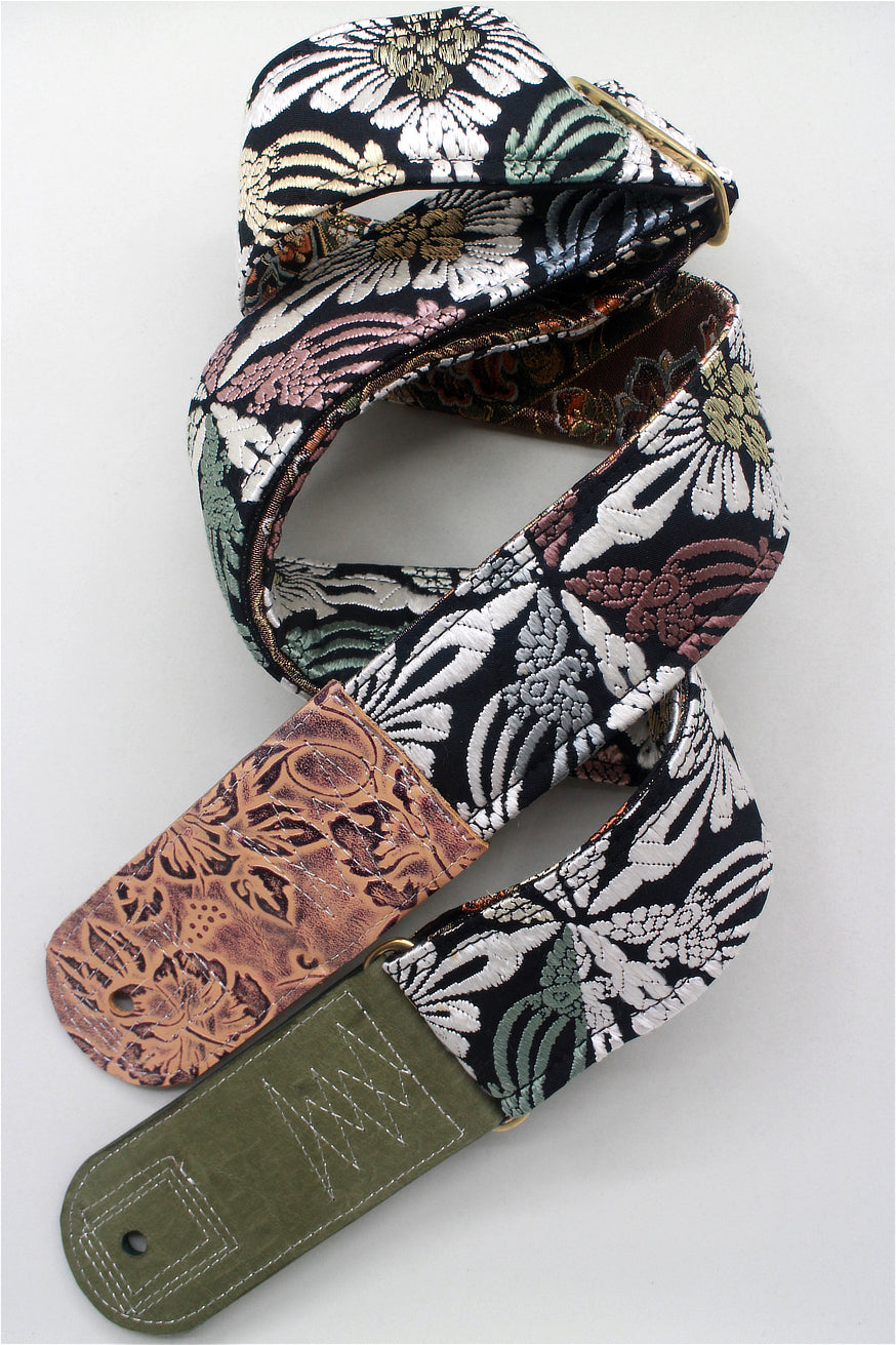 Unique and beautiful guitar strap [SC724622] - hand made in Japan from recycled silk woven kimono obi, leather and brass