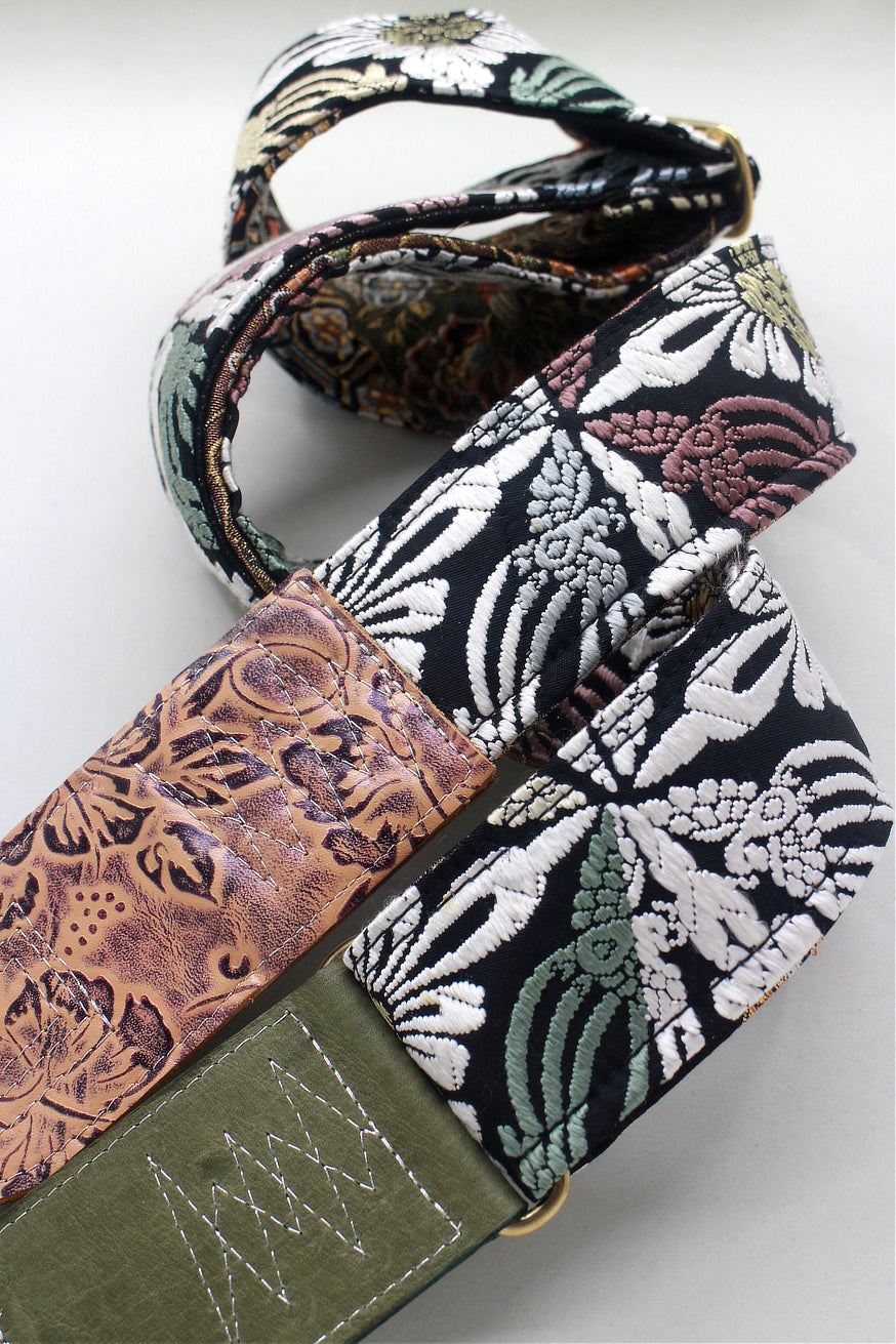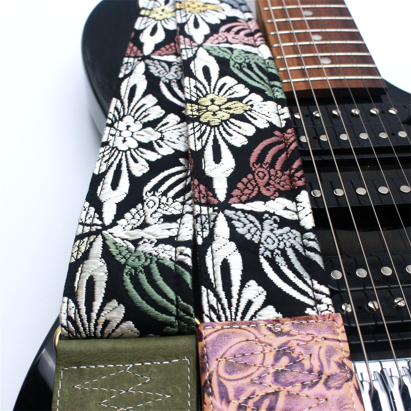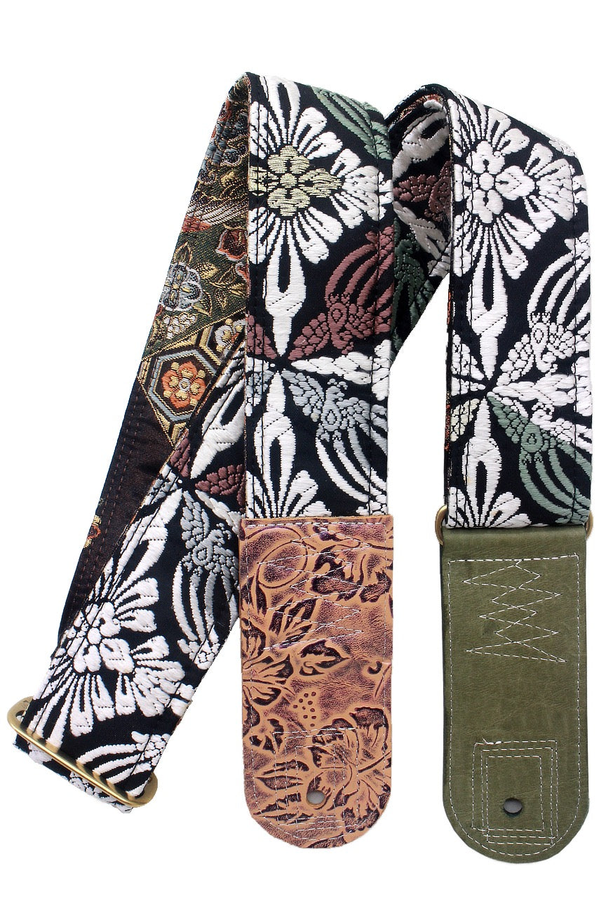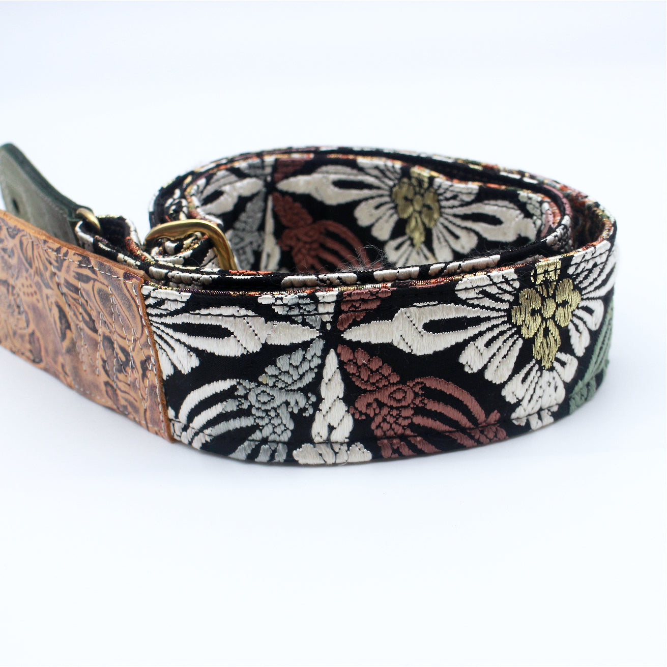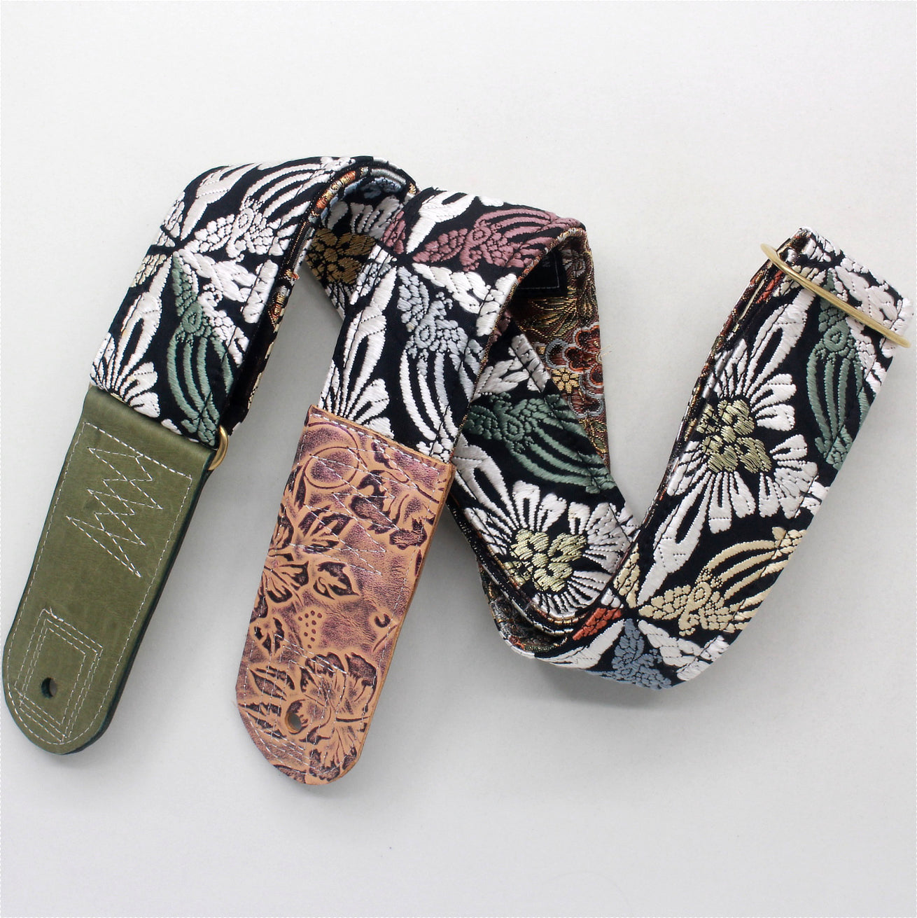 Unique and beautiful guitar strap [SC724622] - hand made in Japan from recycled silk woven kimono obi, leather and brass