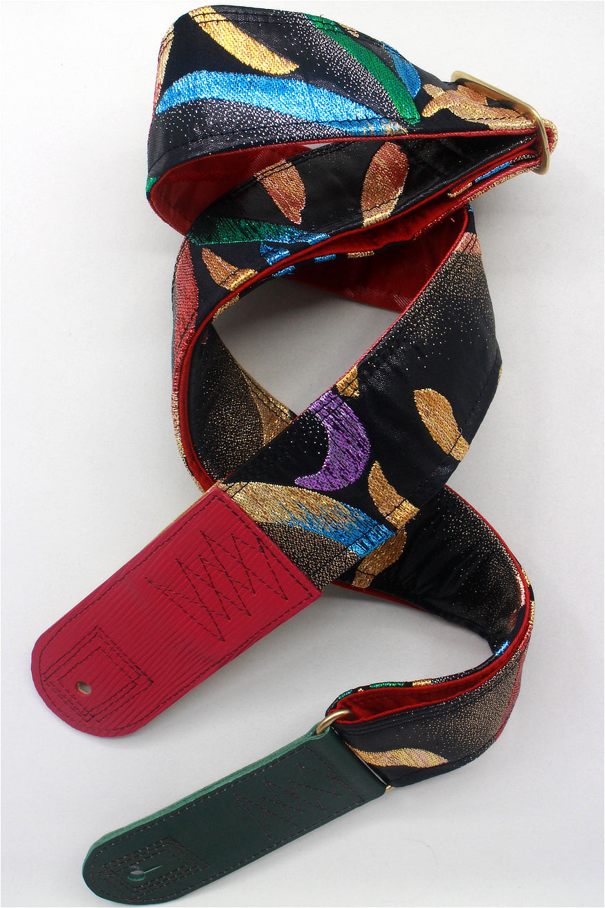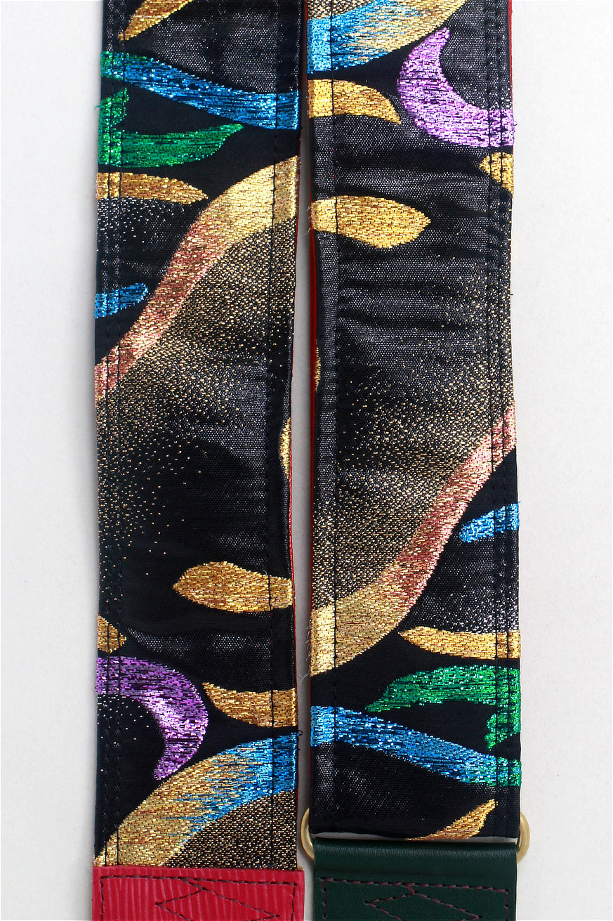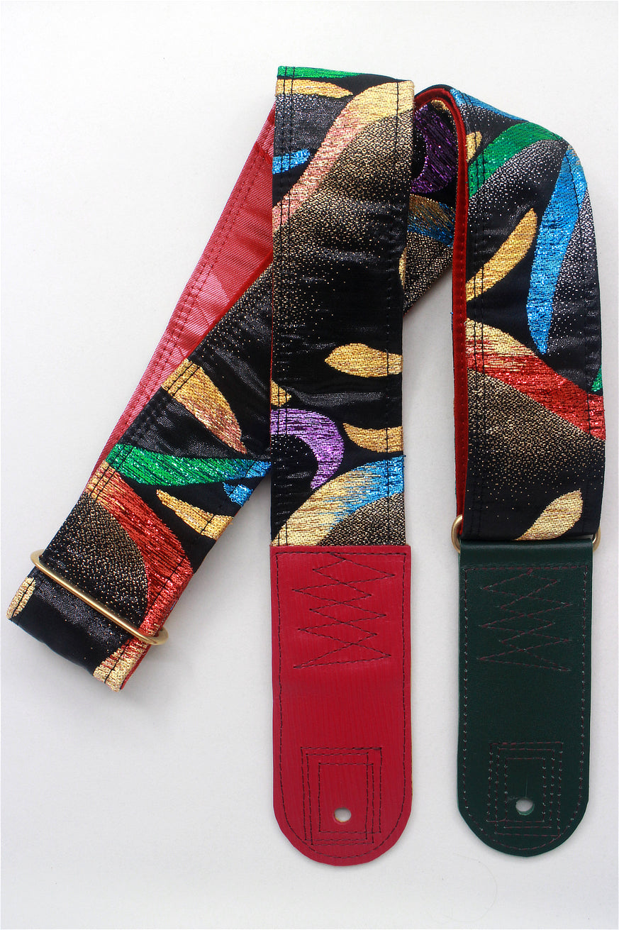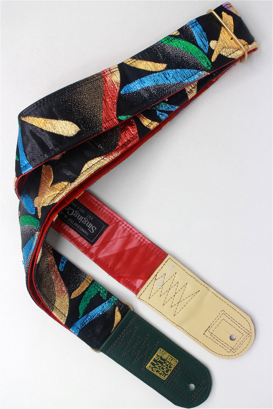 Unique and beautiful guitar strap [SC724631] - hand made in Japan from recycled silk woven kimono obi, leather and brass
