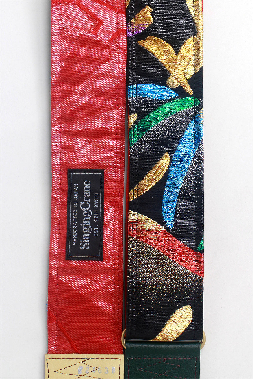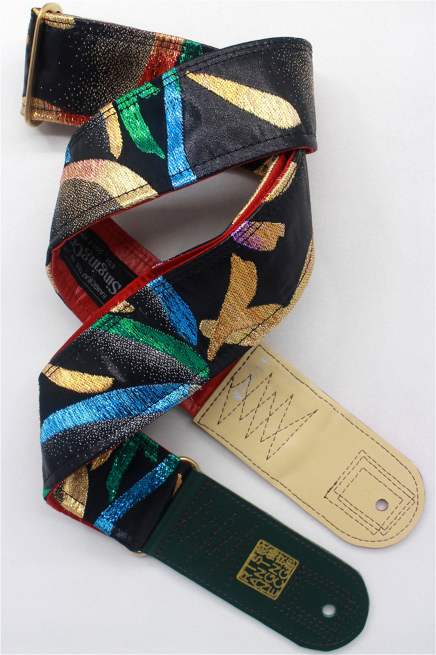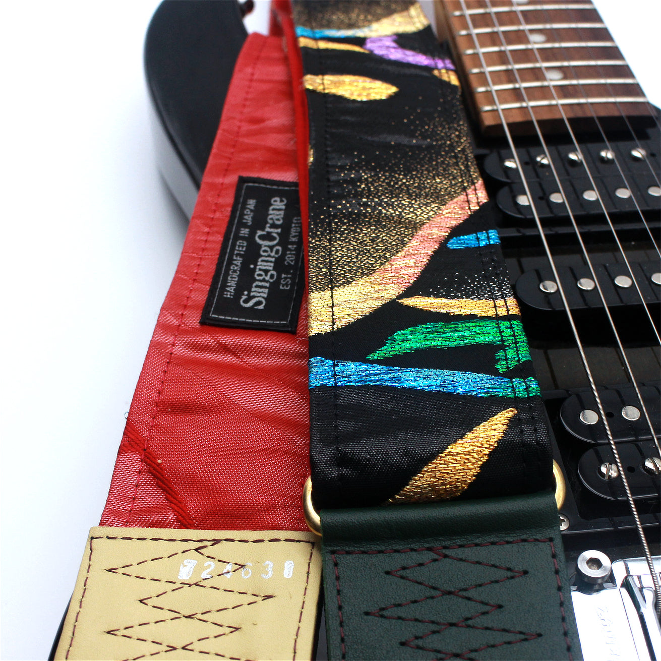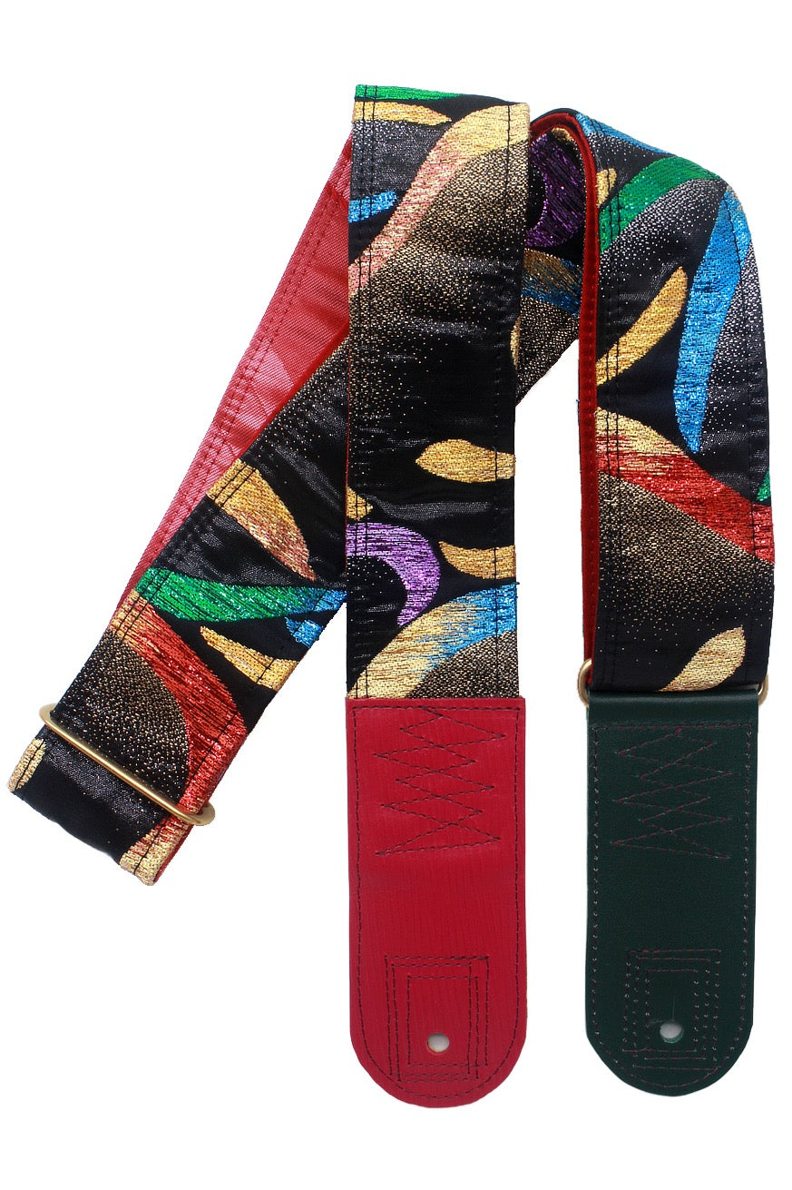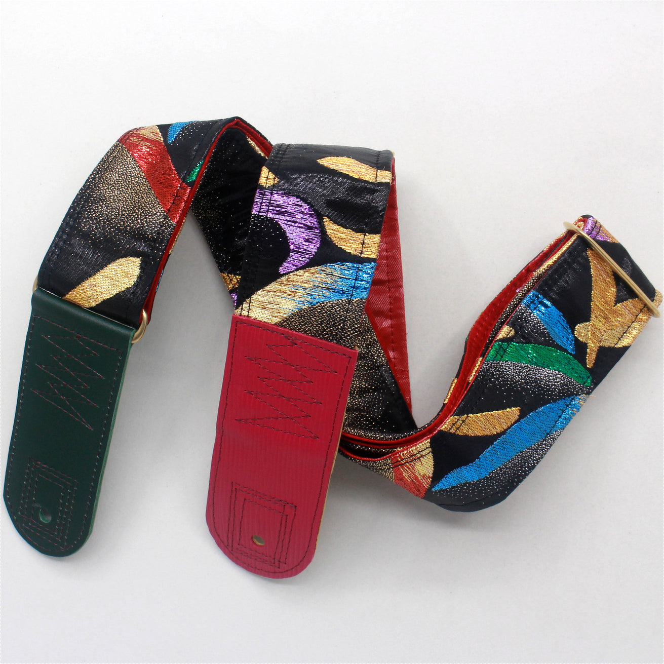Unique and beautiful guitar strap [SC724631] - hand made in Japan from recycled silk woven kimono obi, leather and brass