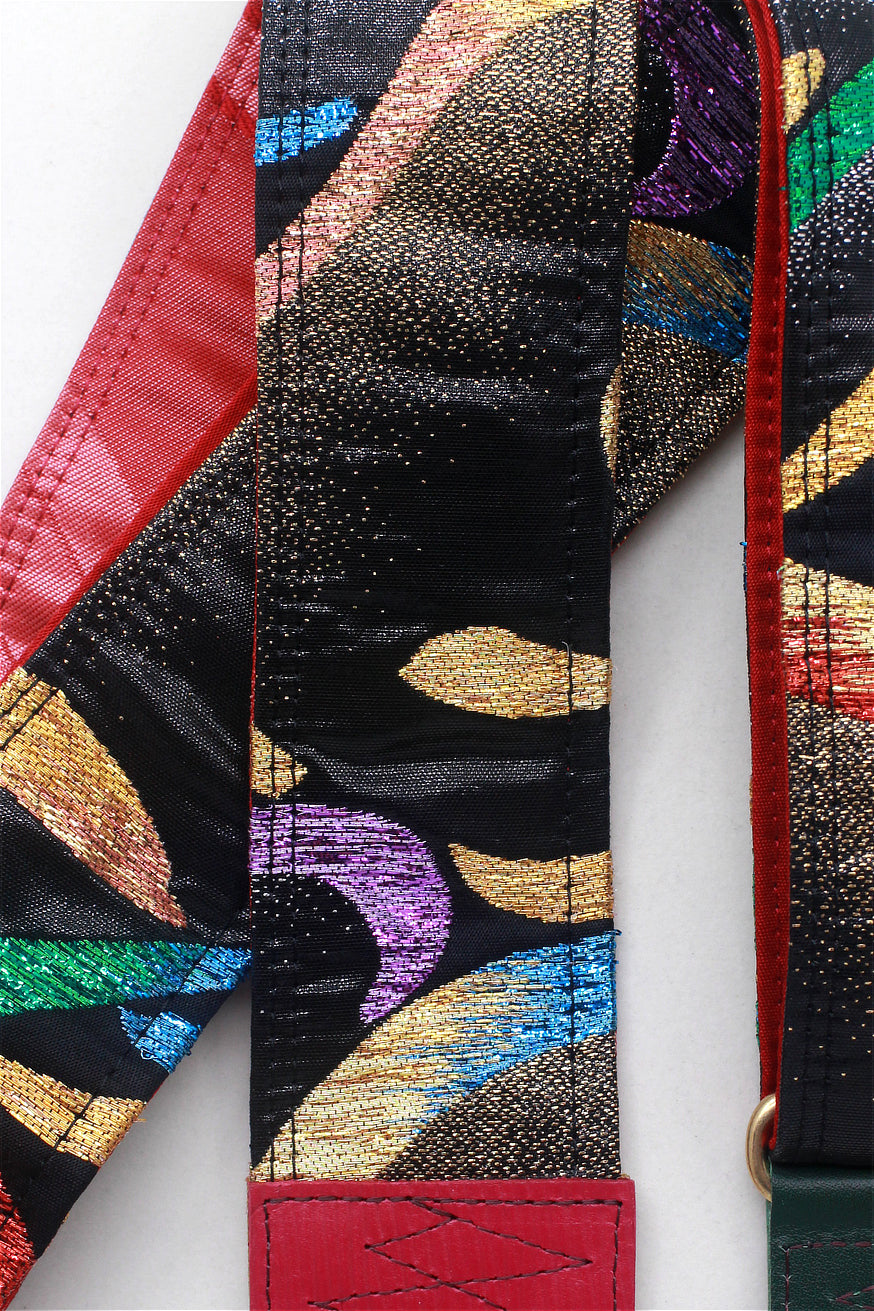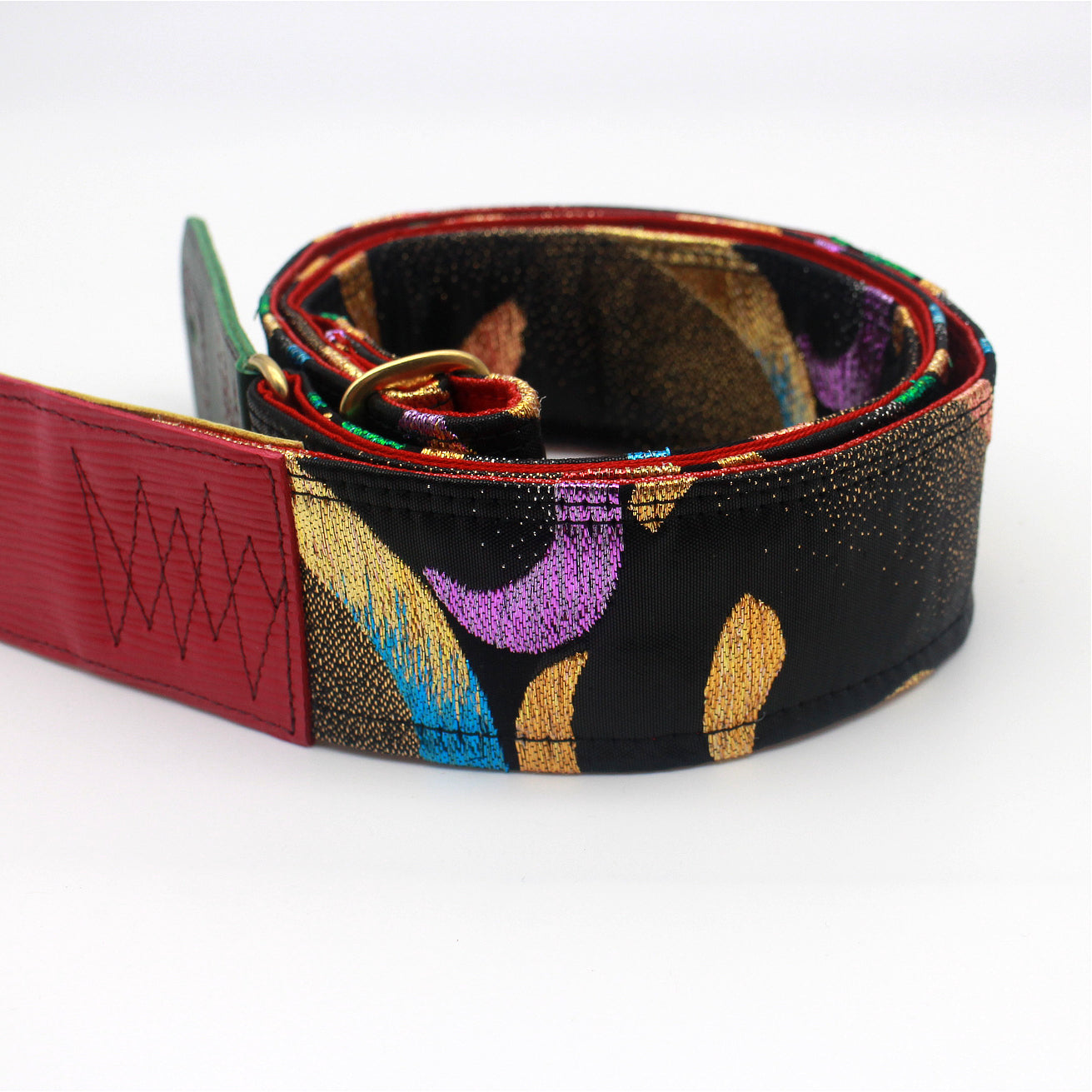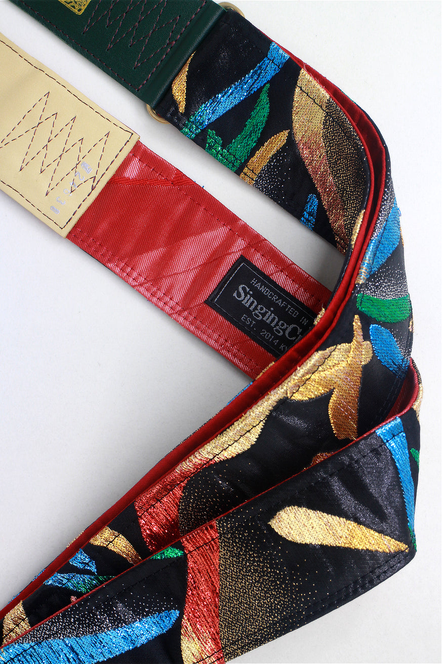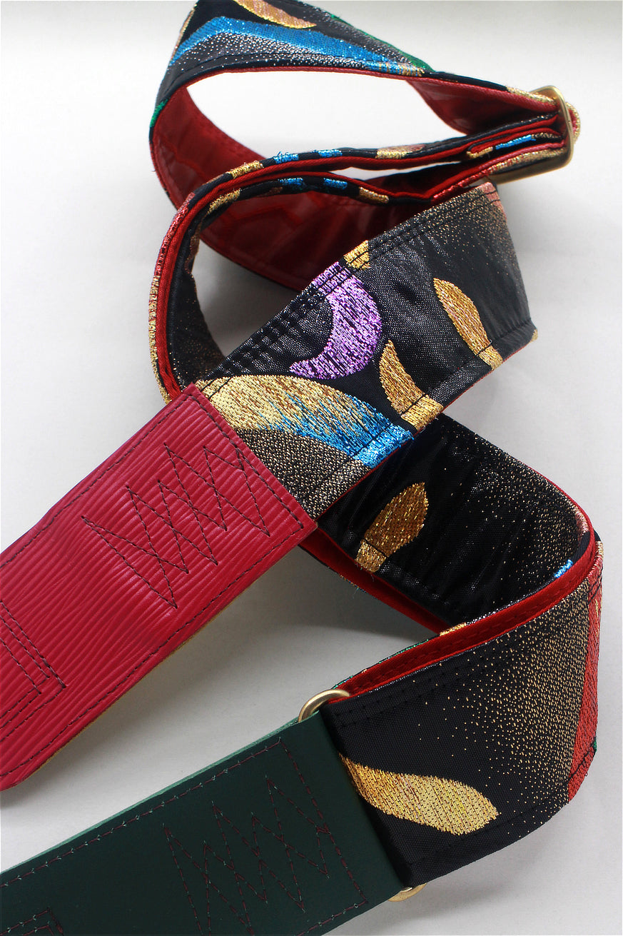 Unique and beautiful guitar strap [SC724631] - hand made in Japan from recycled silk woven kimono obi, leather and brass