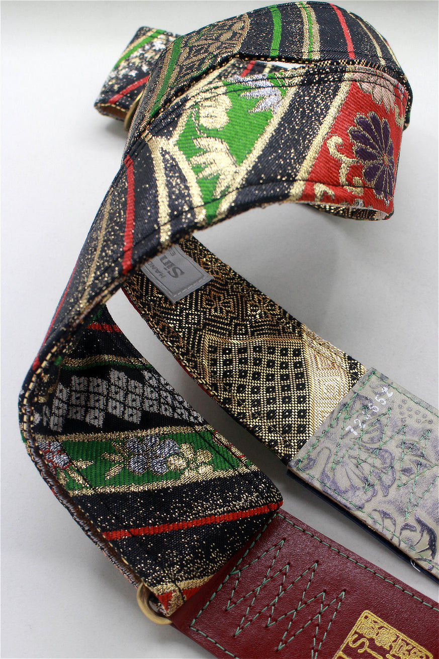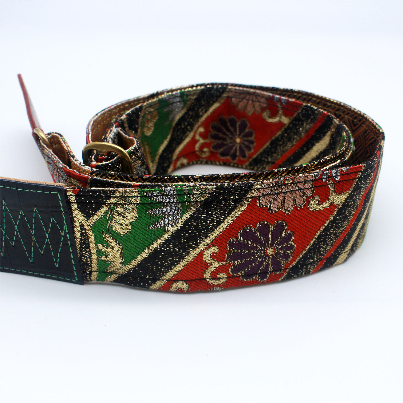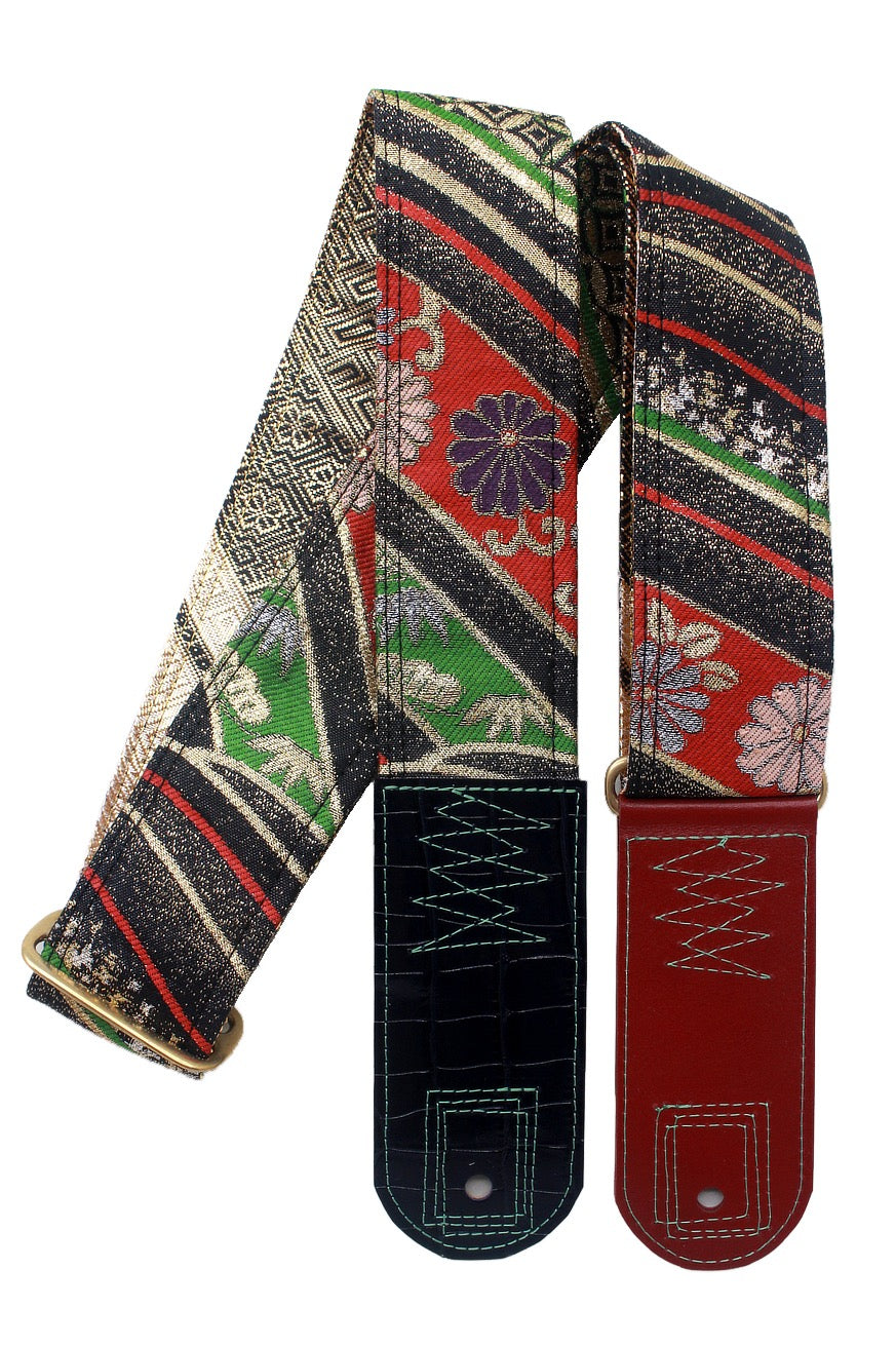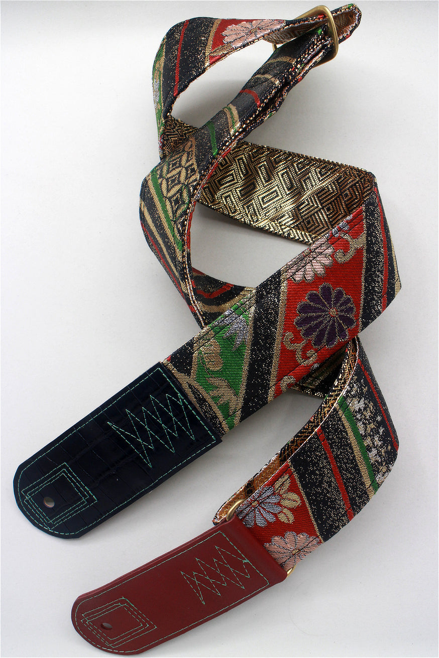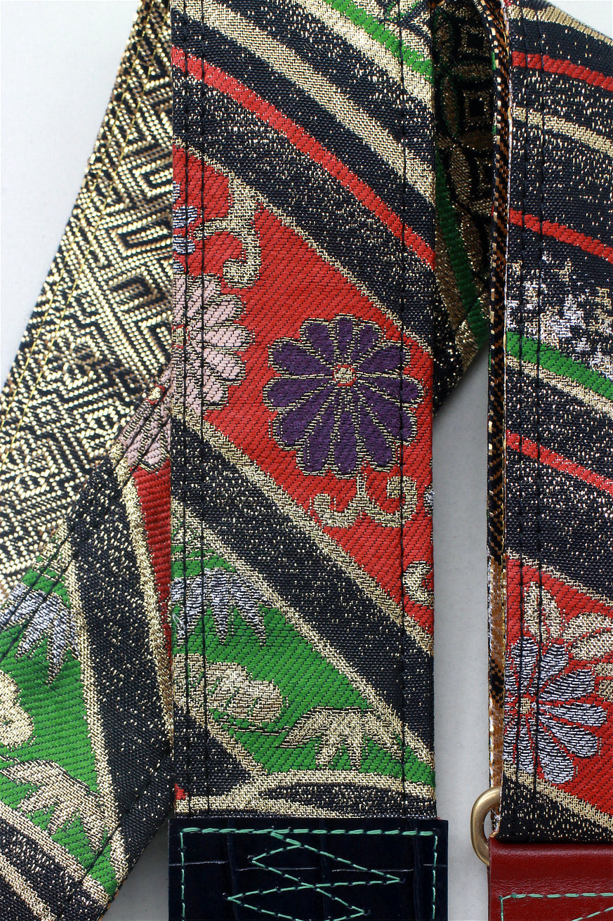 Unique and beautiful guitar strap [SC724652] - hand made in Japan from recycled silk woven kimono obi, leather and brass