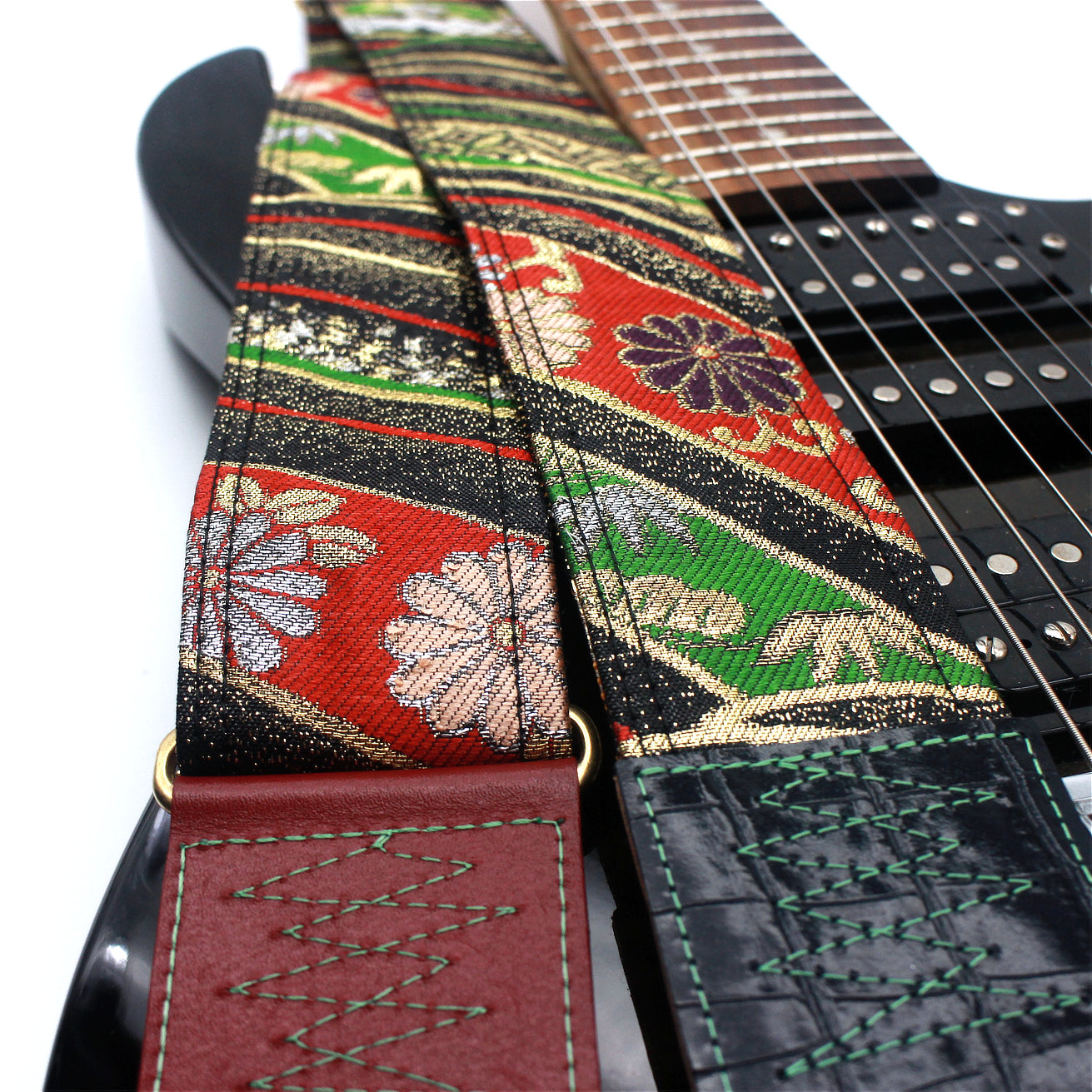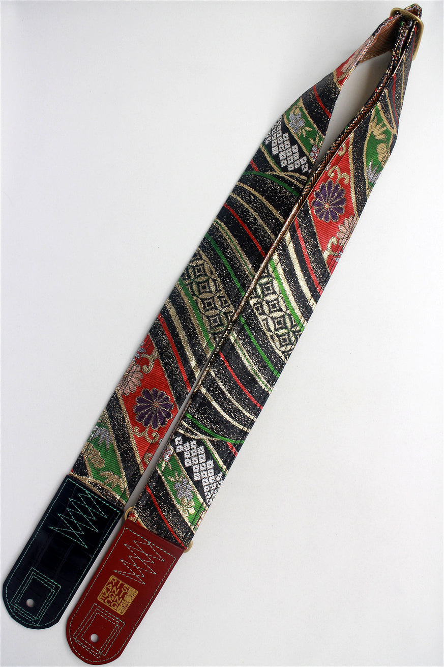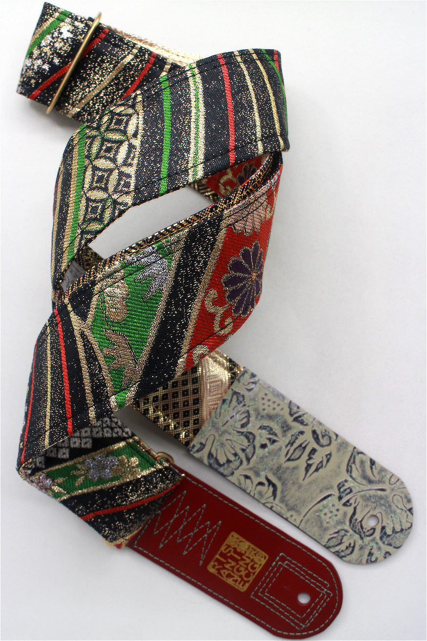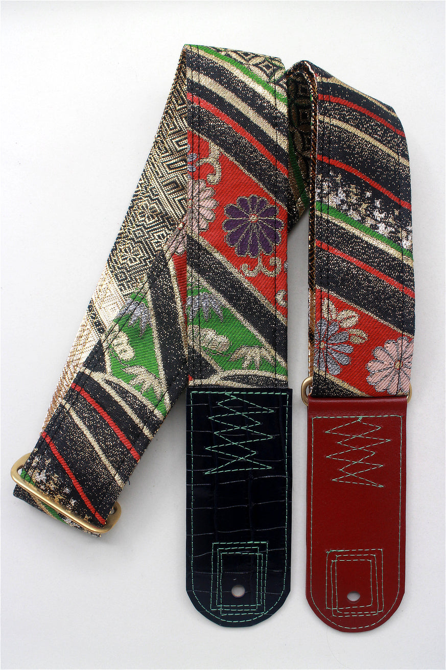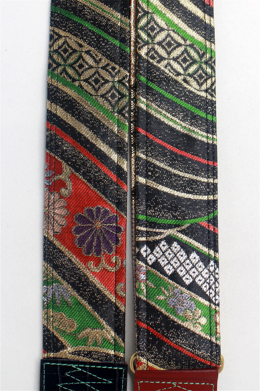 Unique and beautiful guitar strap [SC724652] - hand made in Japan from recycled silk woven kimono obi, leather and brass