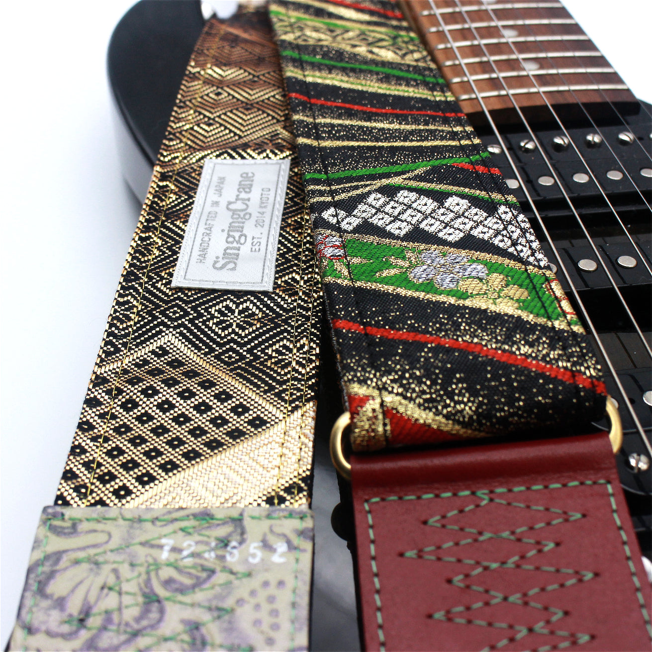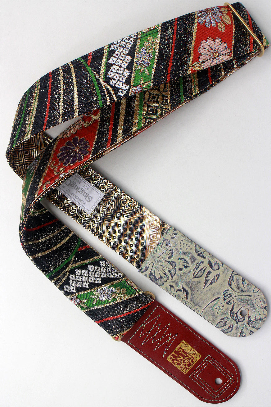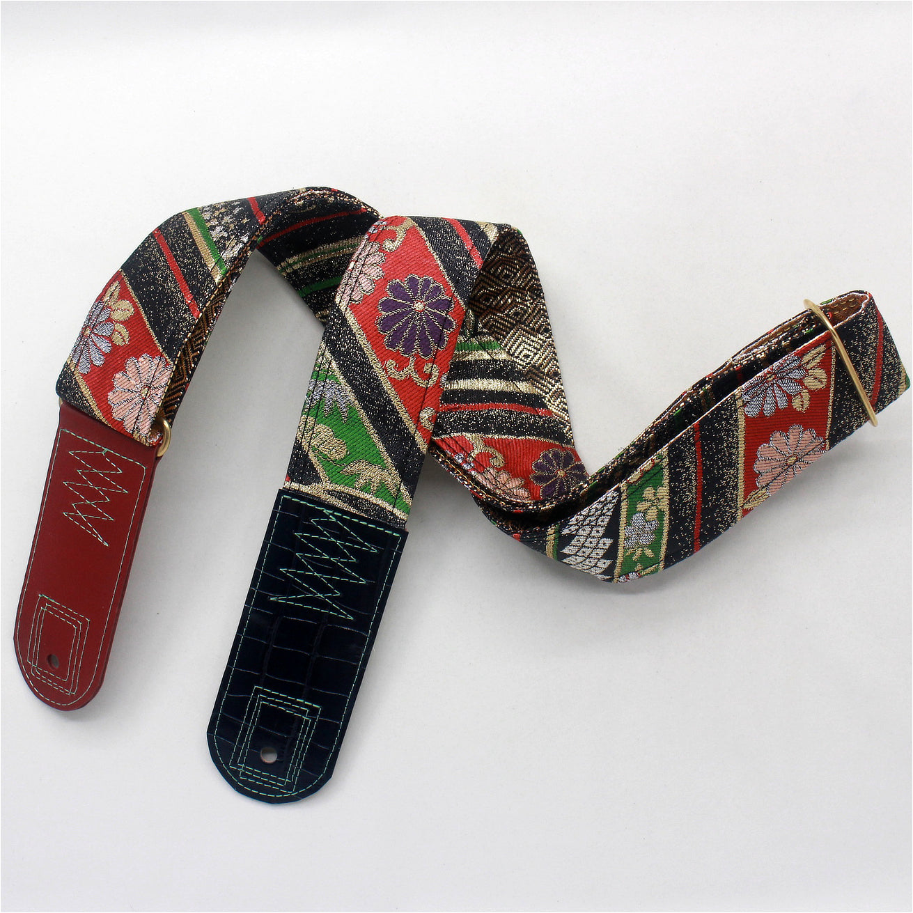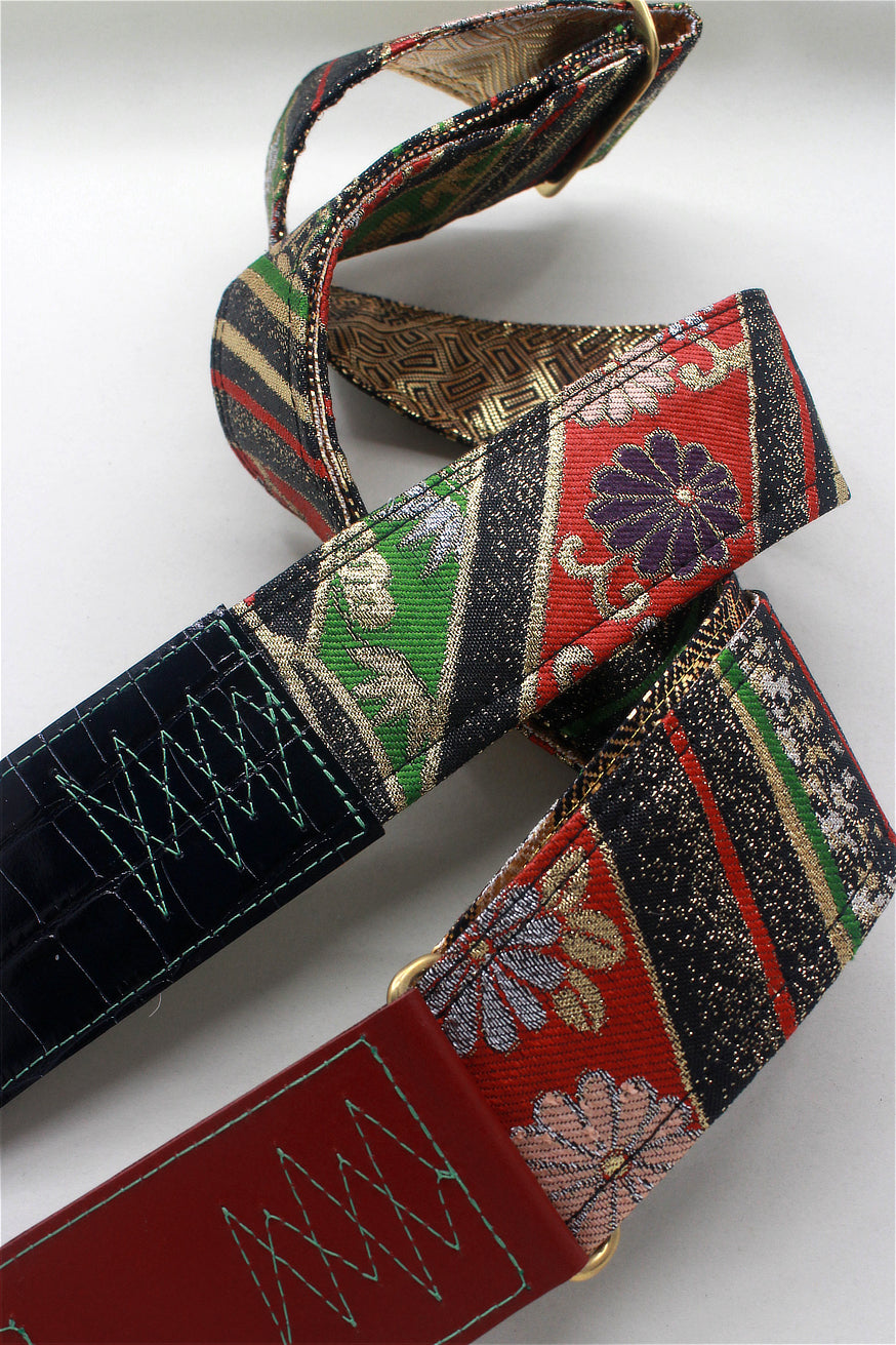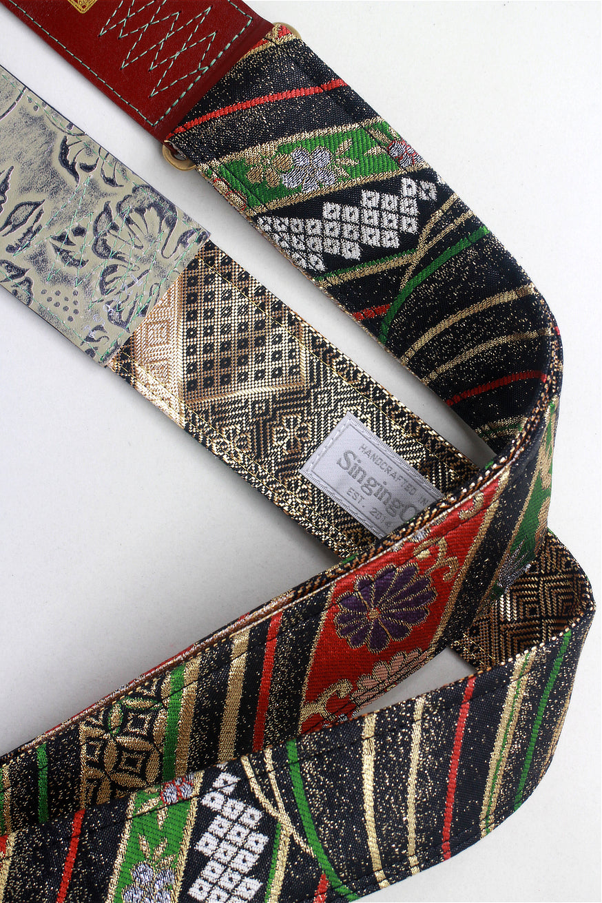 Unique and beautiful guitar strap [SC724652] - hand made in Japan from recycled silk woven kimono obi, leather and brass