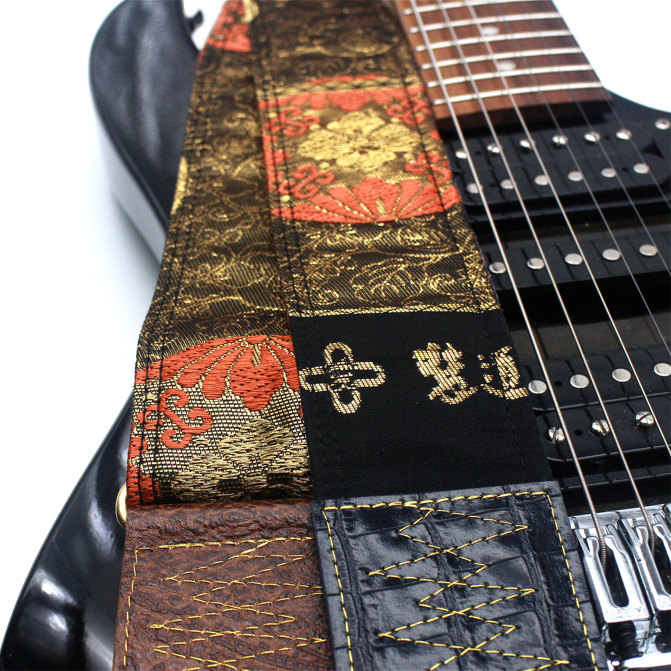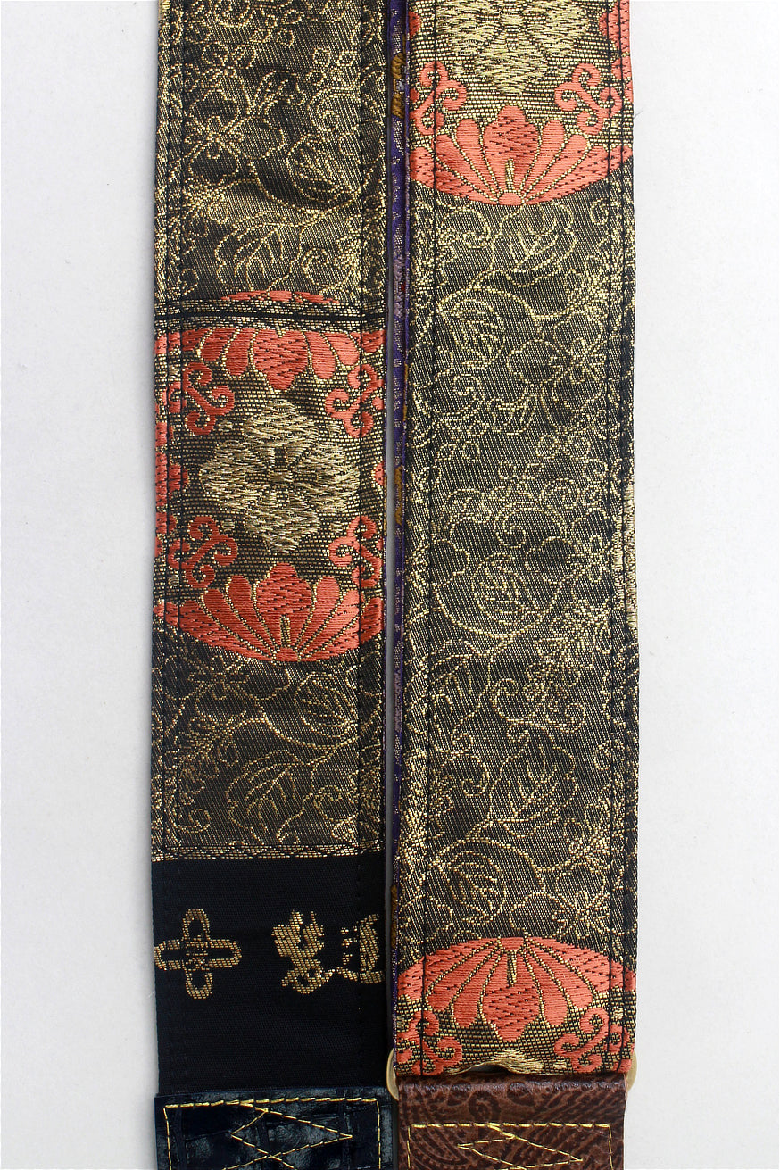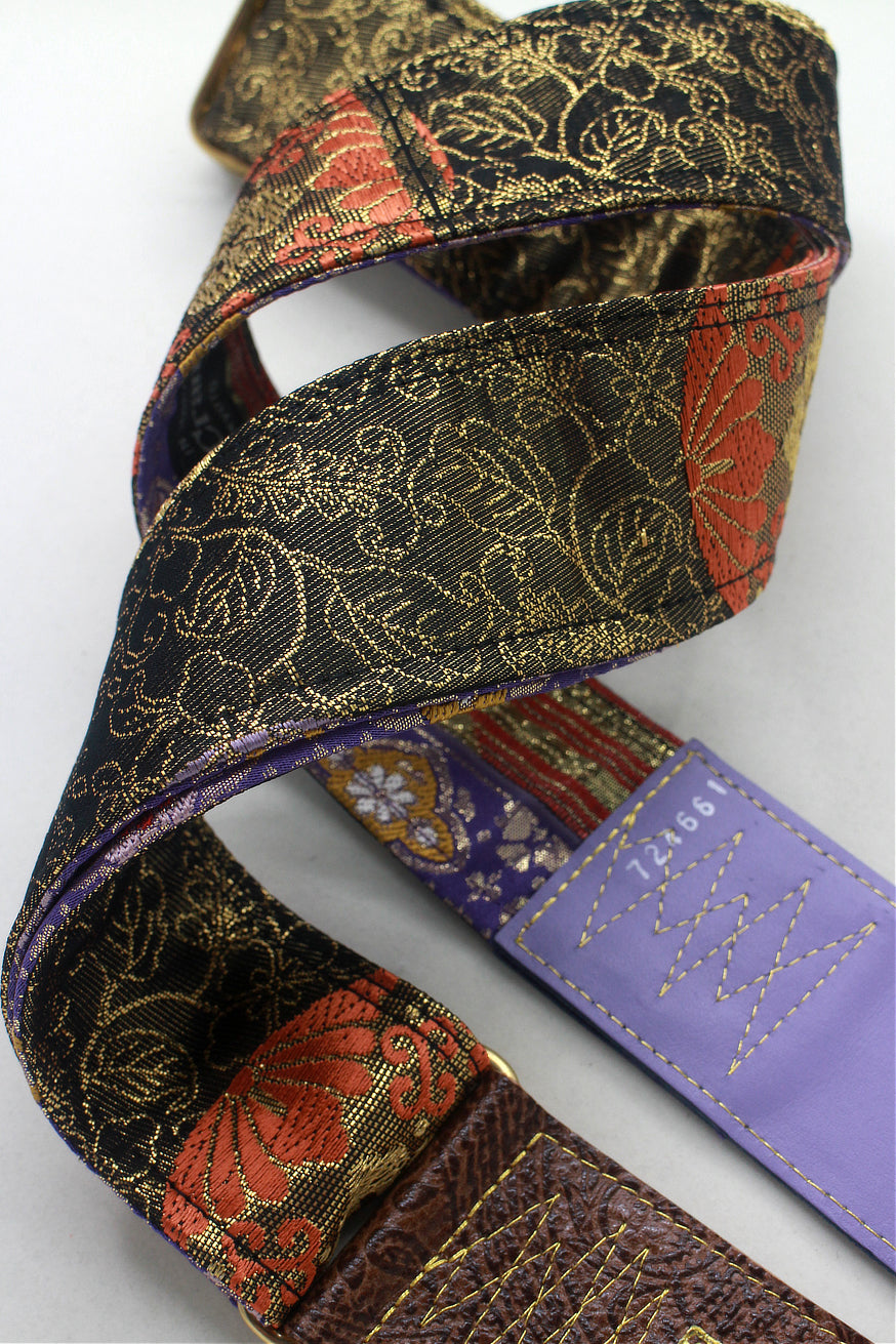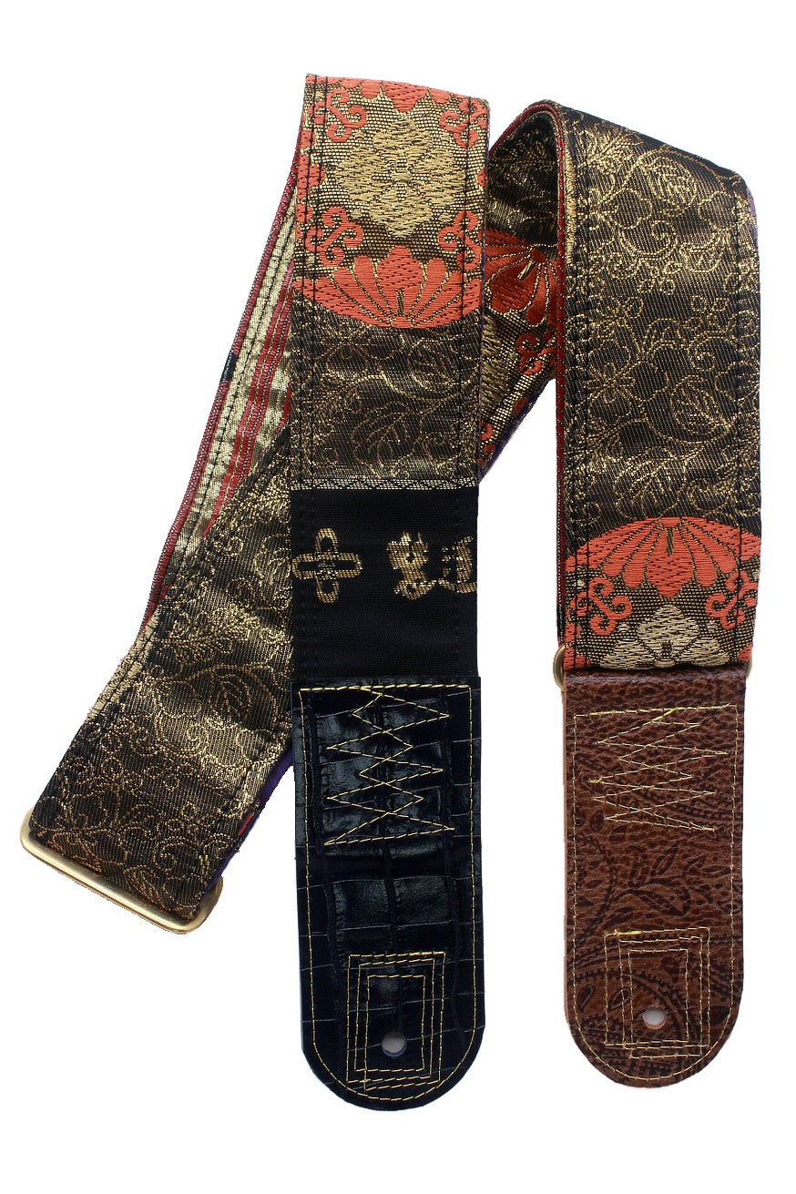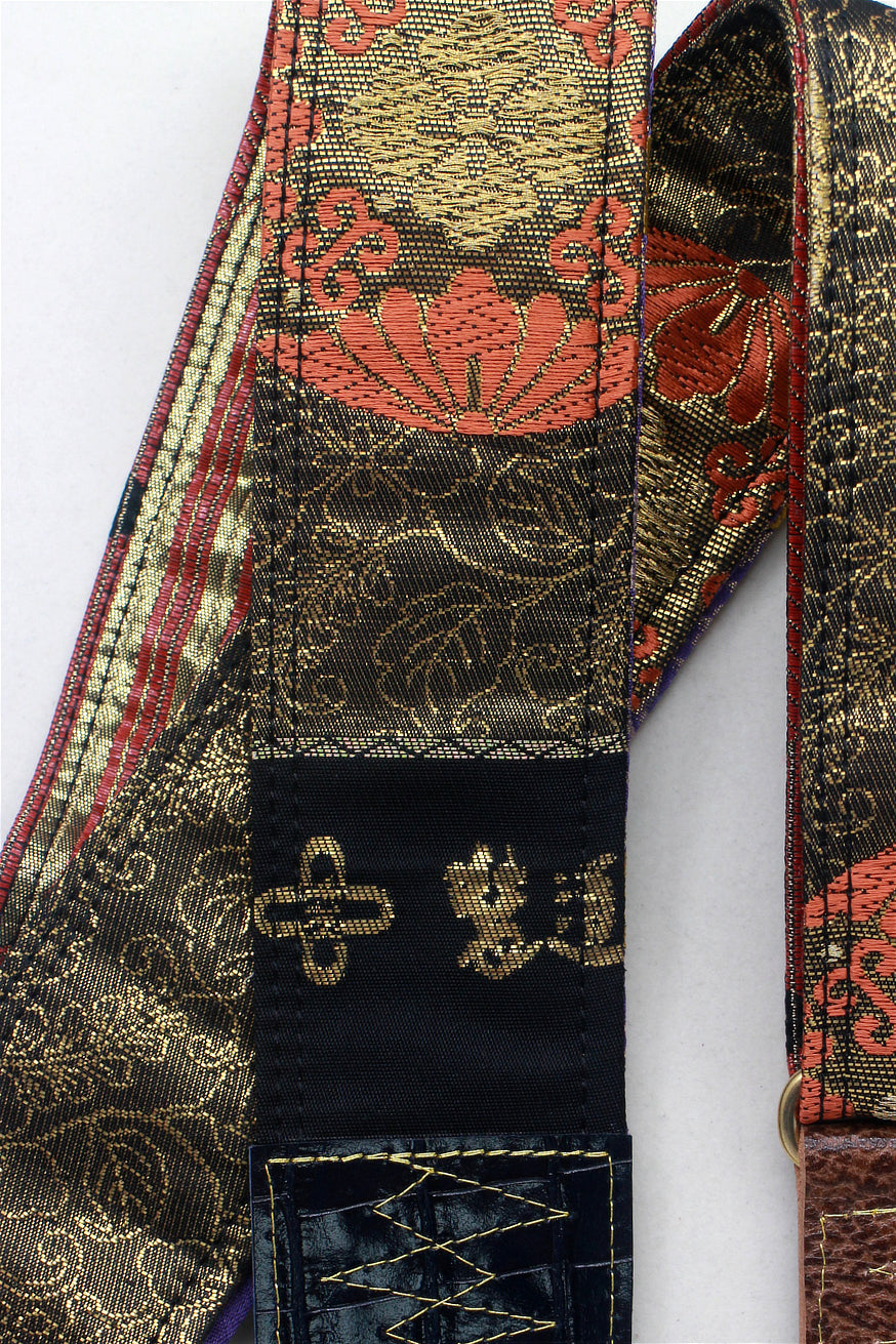 Unique and beautiful guitar strap [SC724661] - hand made in Japan from recycled silk woven kimono obi, leather and brass