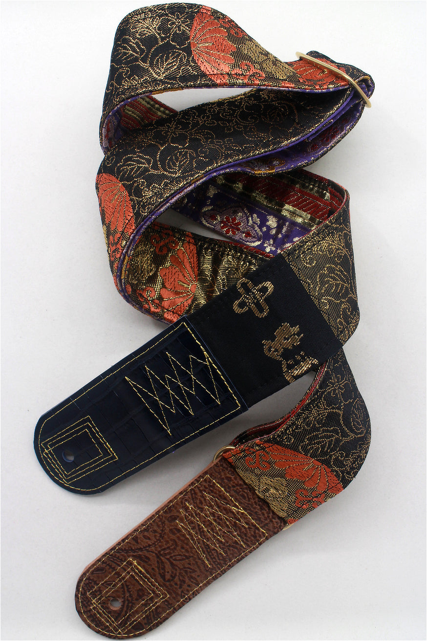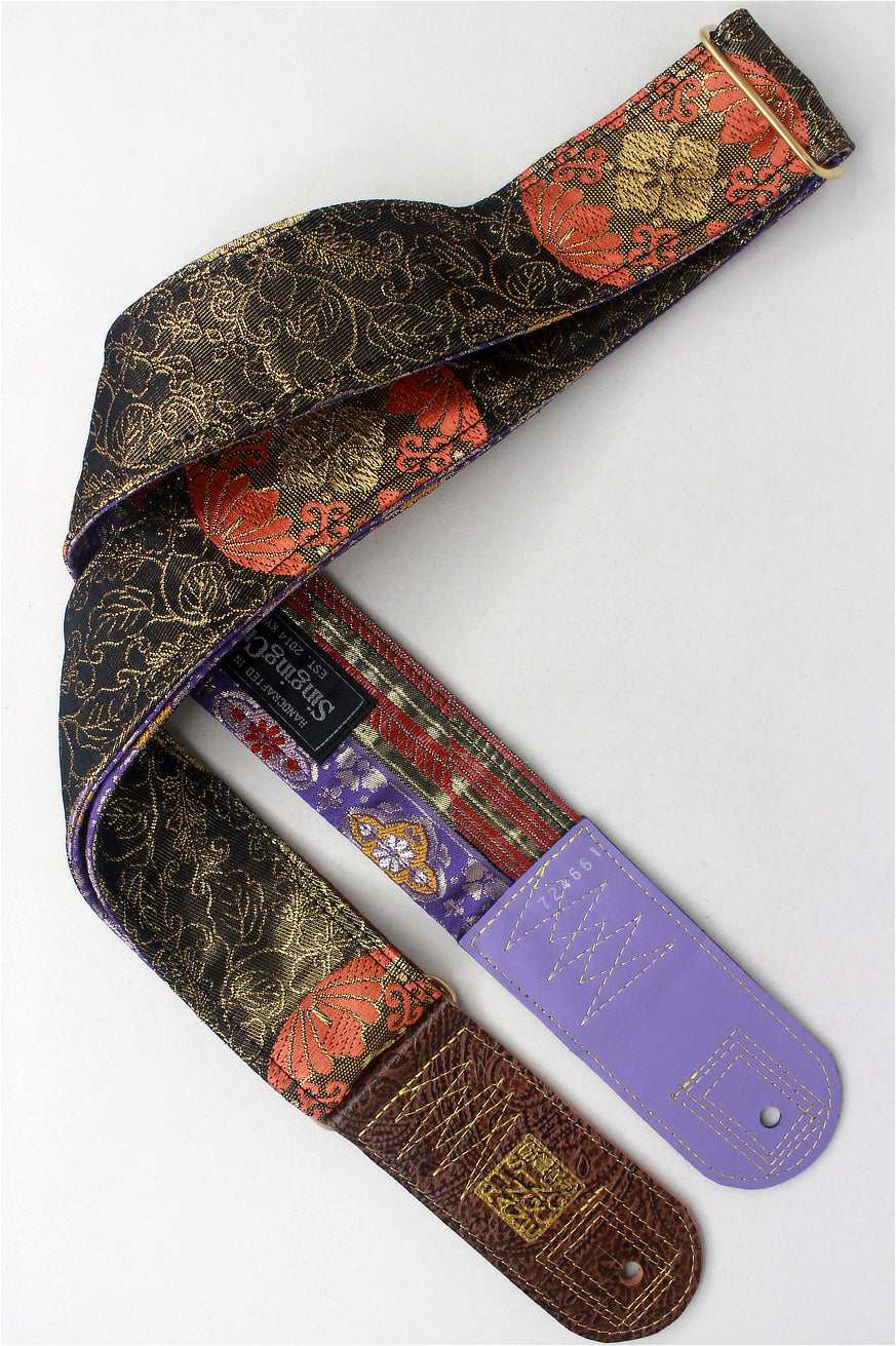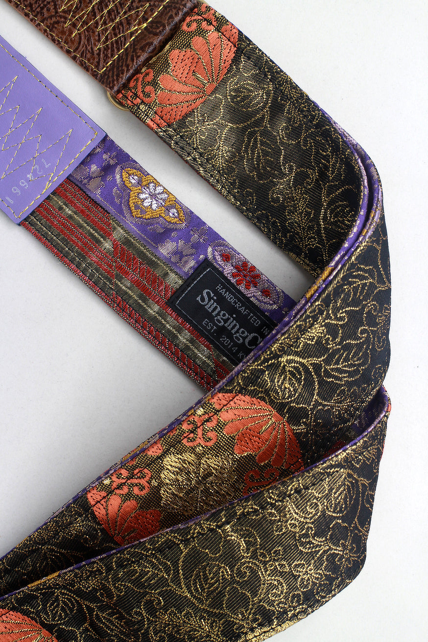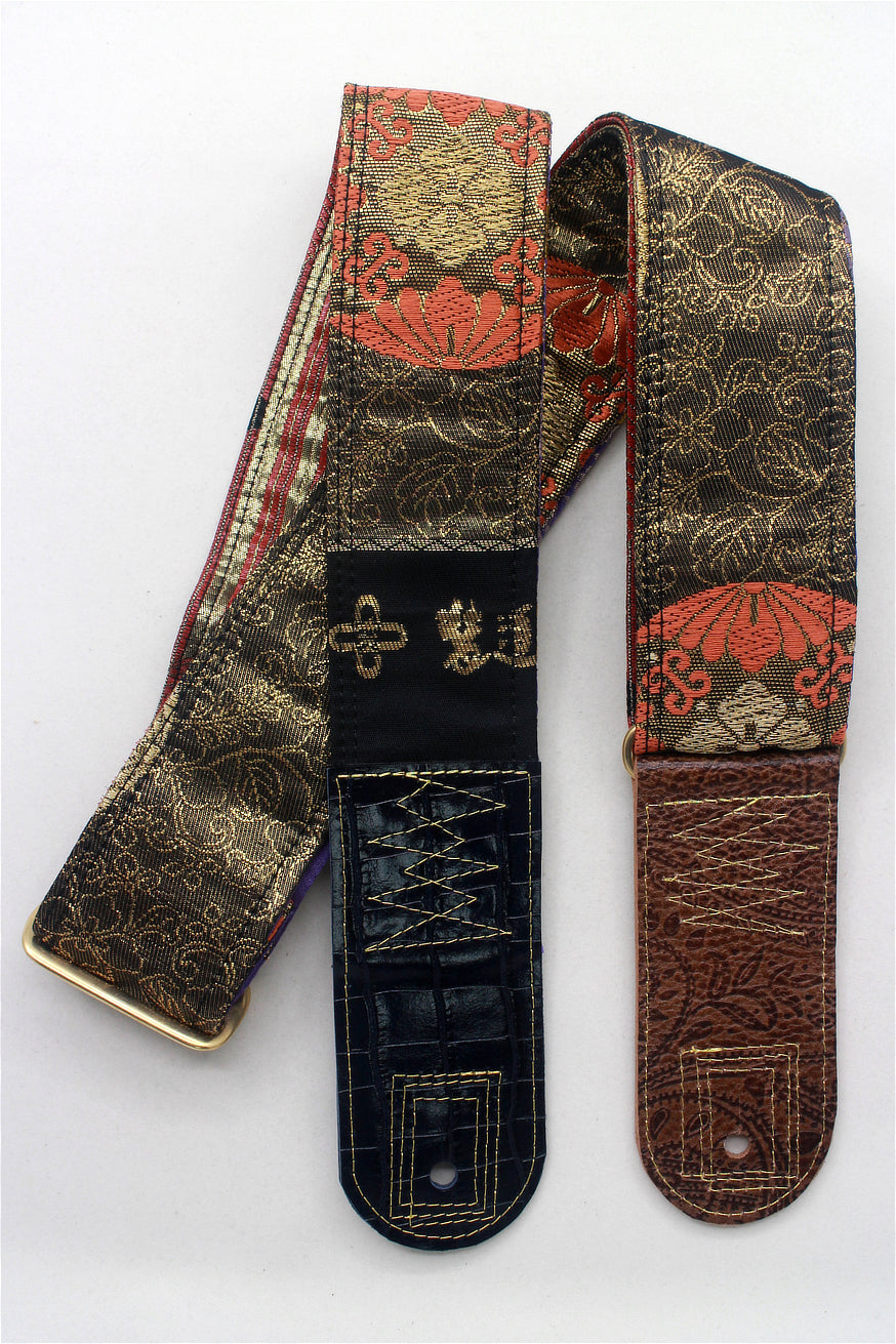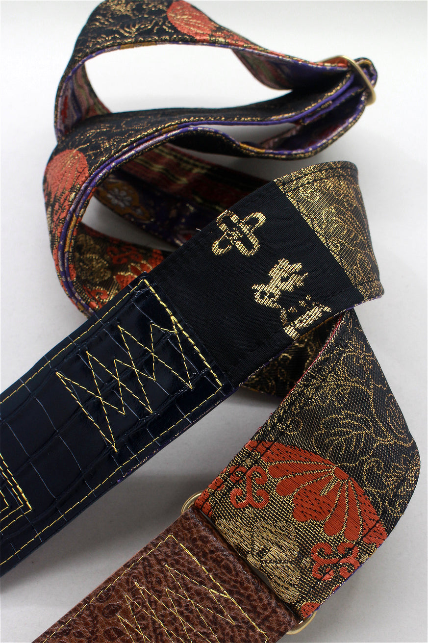 Unique and beautiful guitar strap [SC724661] - hand made in Japan from recycled silk woven kimono obi, leather and brass