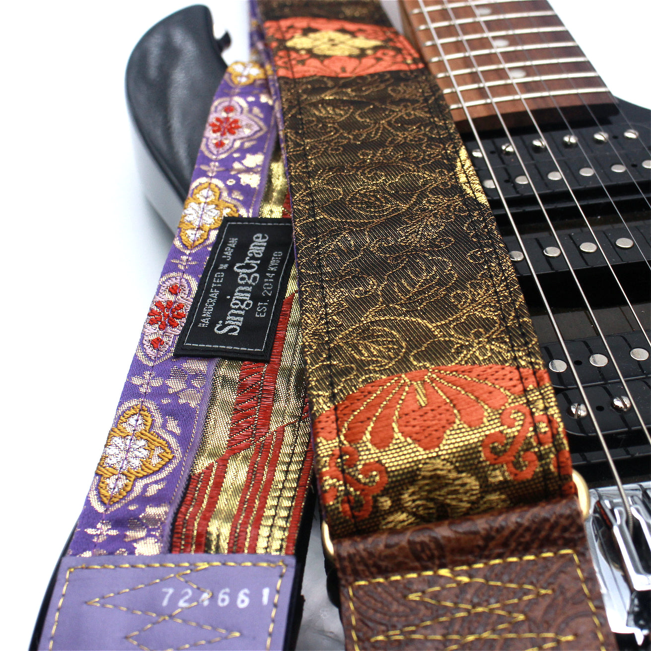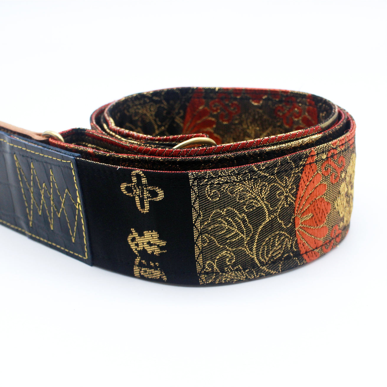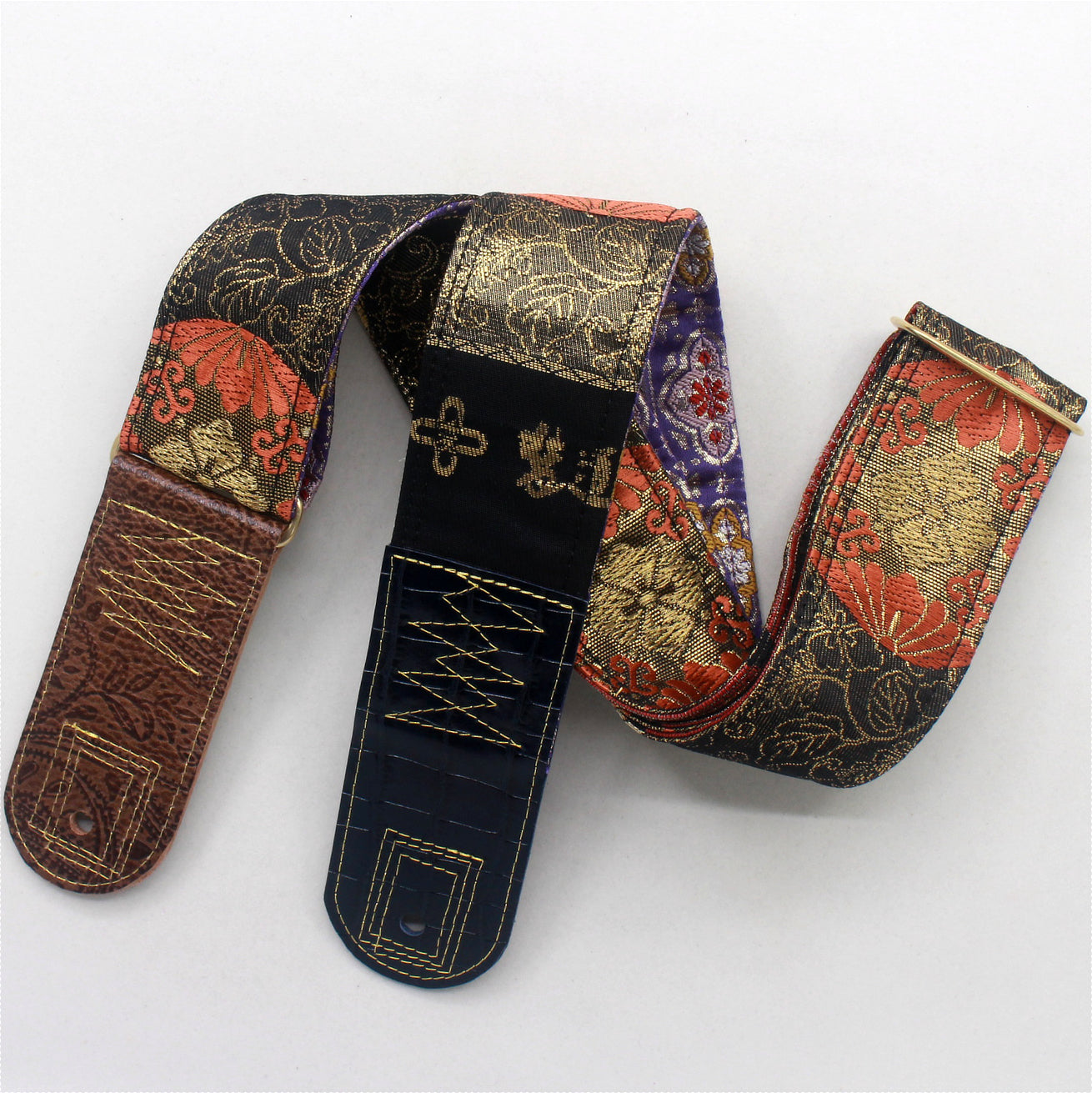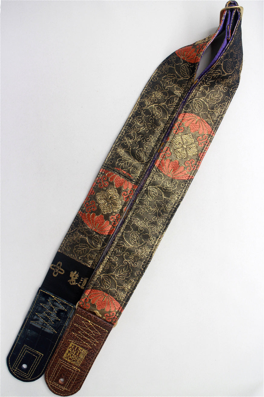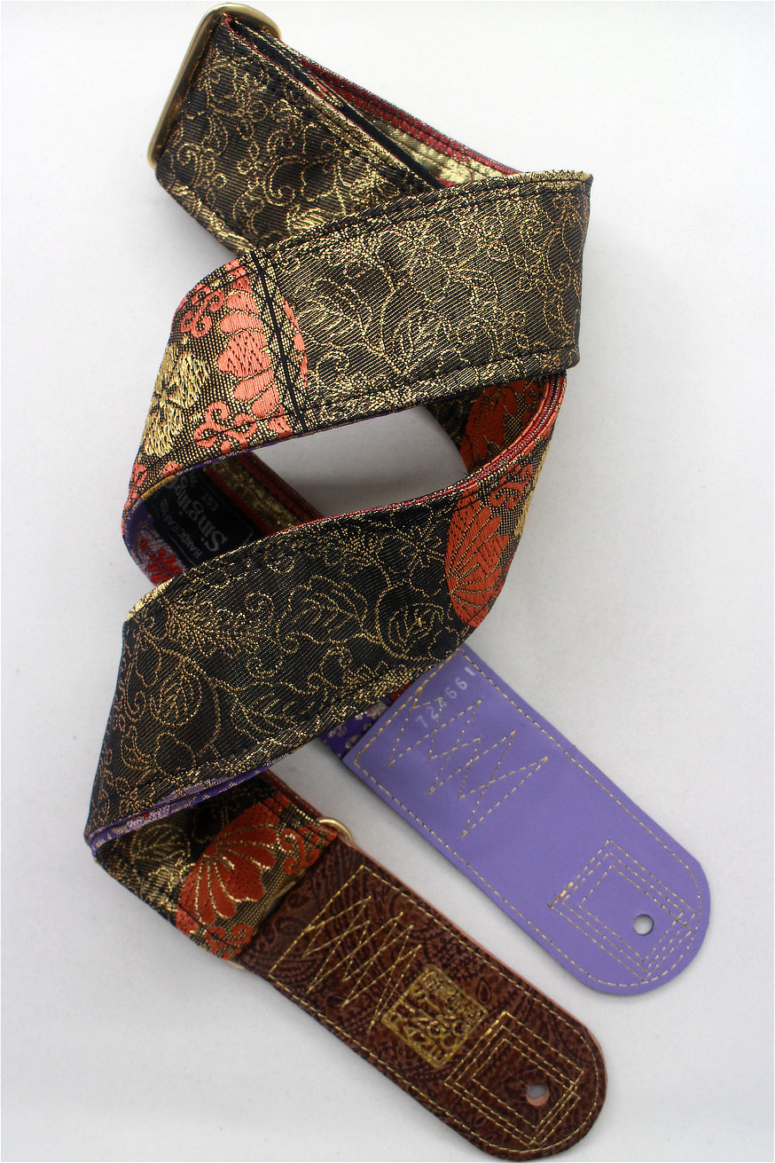 Unique and beautiful guitar strap [SC724661] - hand made in Japan from recycled silk woven kimono obi, leather and brass