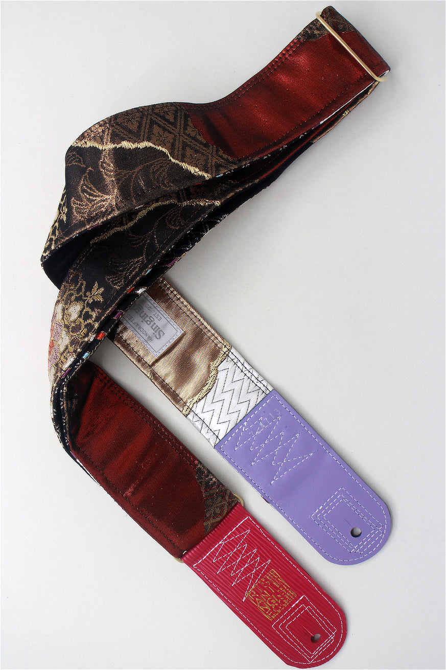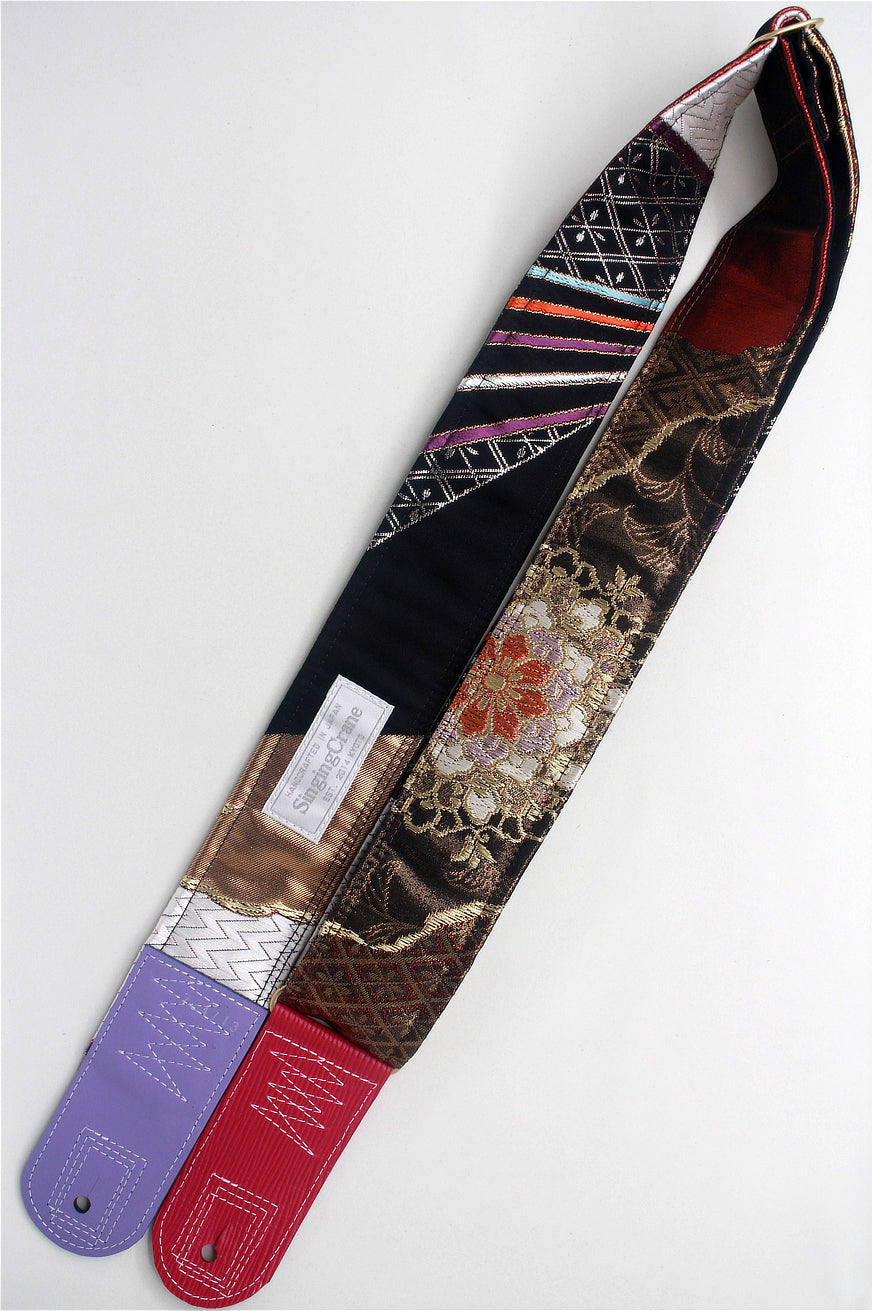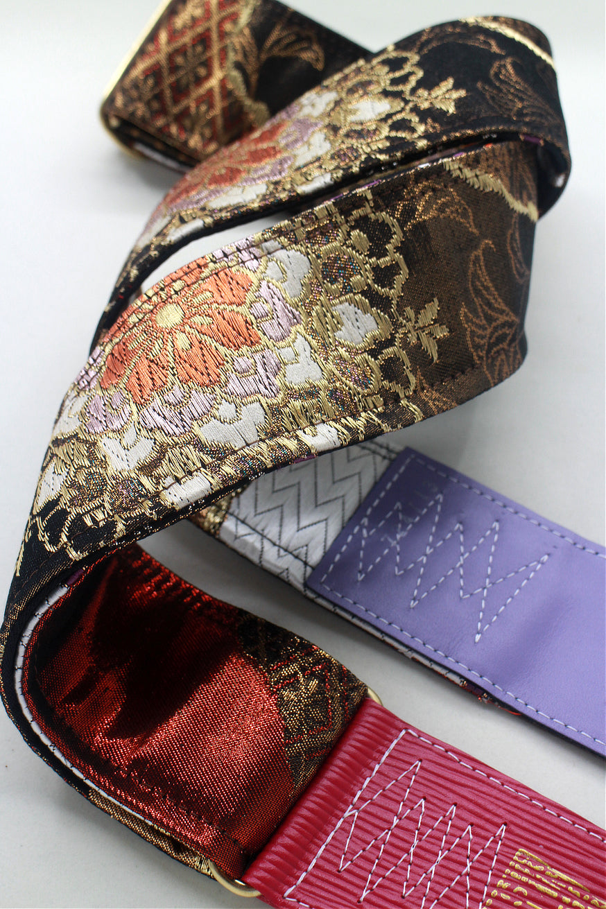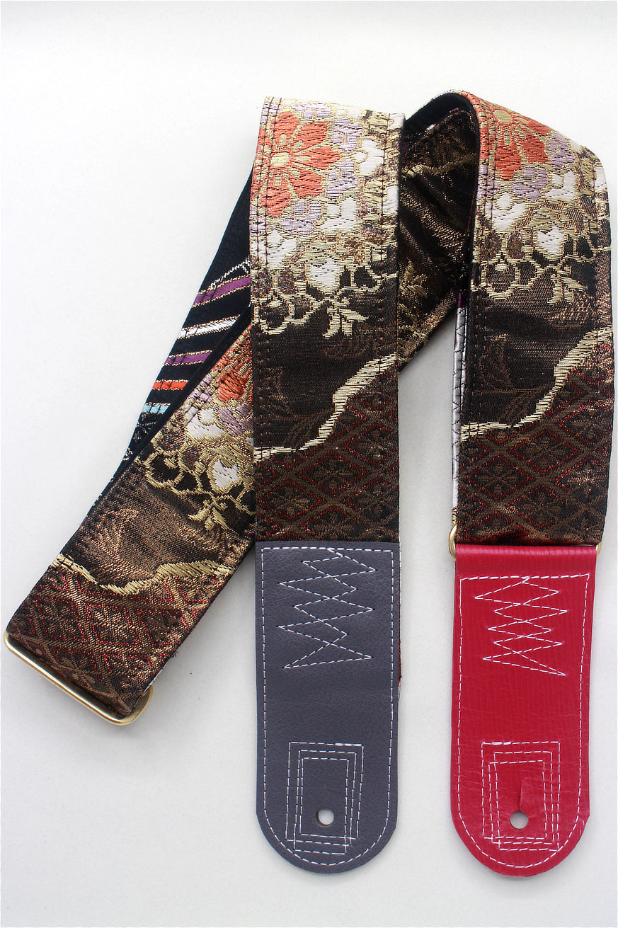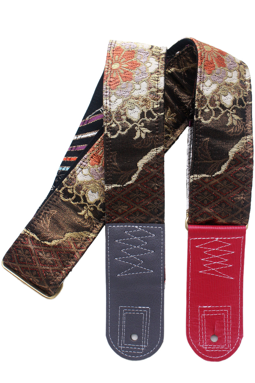 Unique and beautiful guitar strap [SC724713] - hand made in Japan from recycled silk woven kimono obi, leather and brass