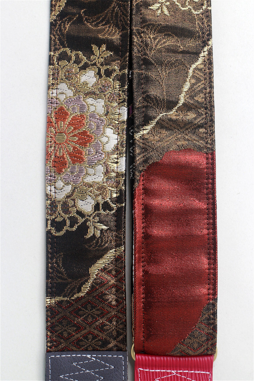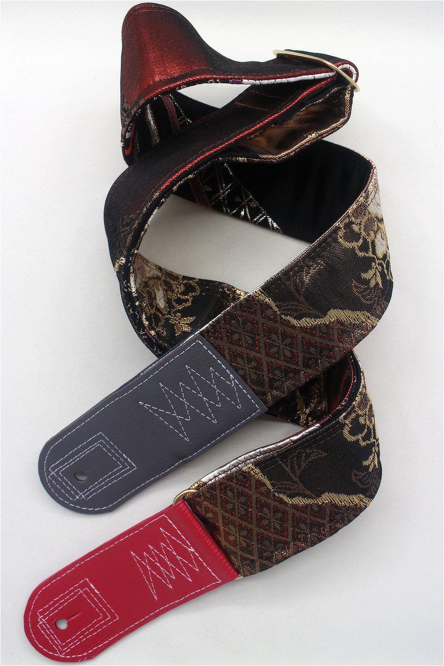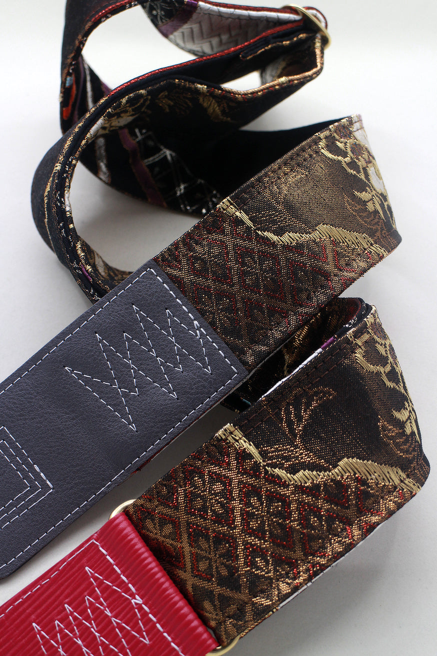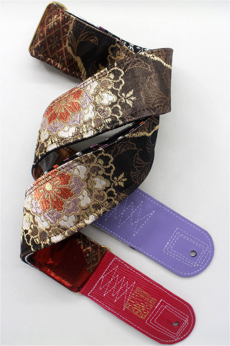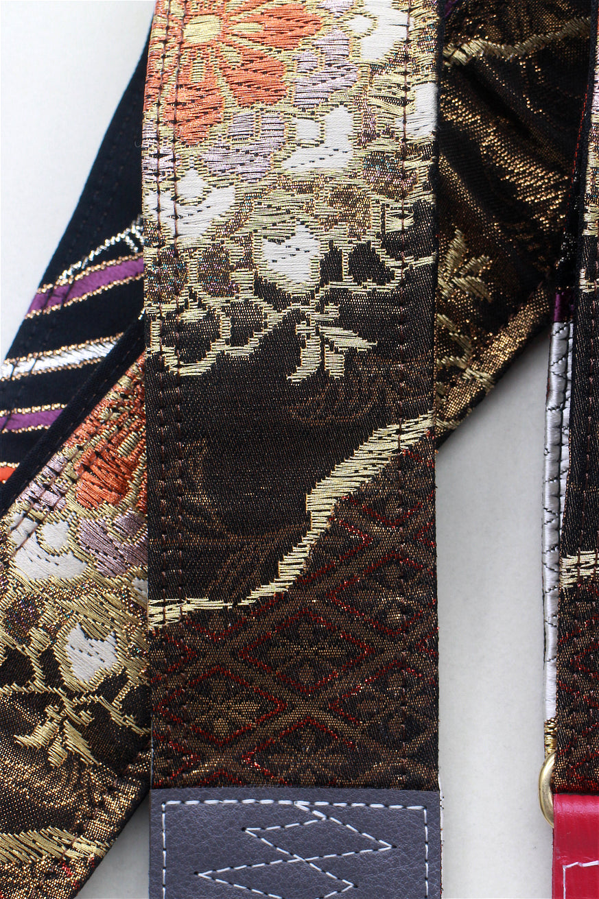 Unique and beautiful guitar strap [SC724713] - hand made in Japan from recycled silk woven kimono obi, leather and brass