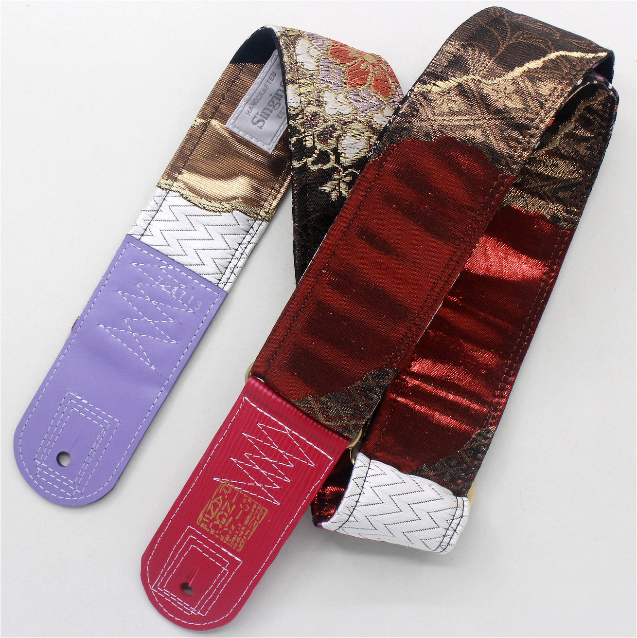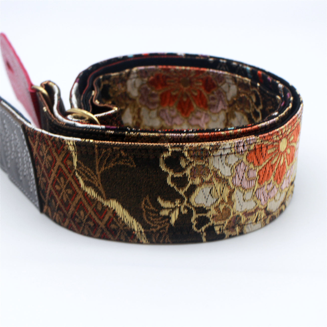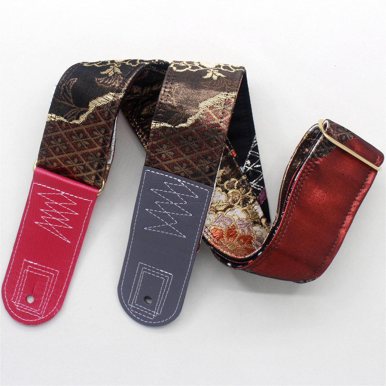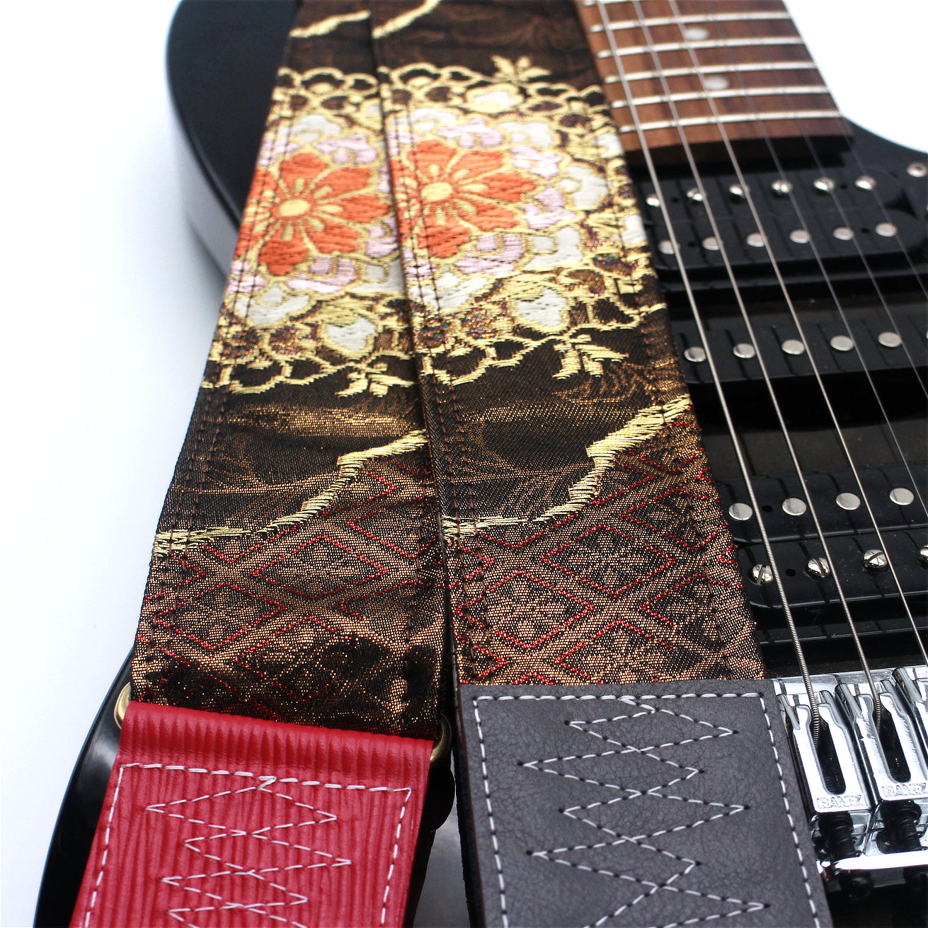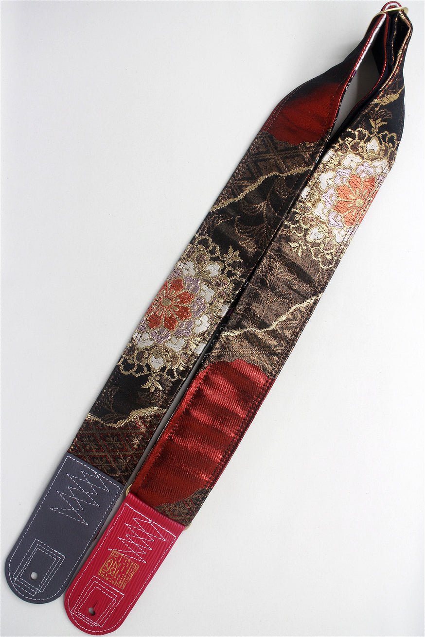 Unique and beautiful guitar strap [SC724713] - hand made in Japan from recycled silk woven kimono obi, leather and brass